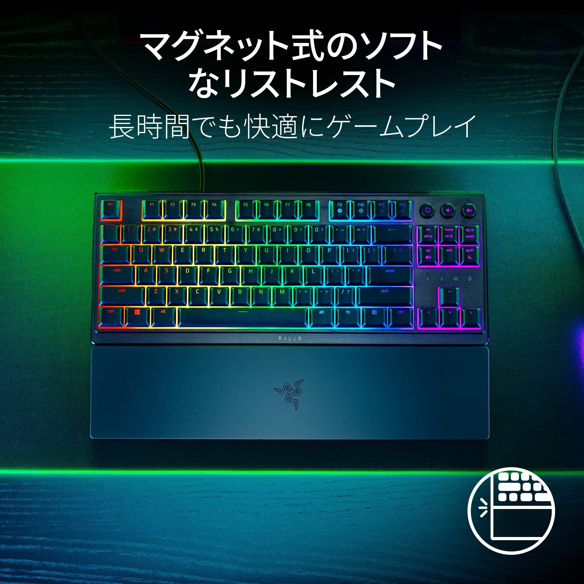 Razer レイザー Ornata V3 Tenkeyless JP 心地良いクリック感のメカ・メンブレンスイッチ搭載テンキーレス薄型有線キーボード ロープロファイル バックライトが光る専用メディアキー UV コートキーキャップ Chroma RGB ライティング マグネット式リストレスト付属 日本語配列 【日本正規代理店品】オルナータ ブイスリー テンキーレス ジェイピー | kki