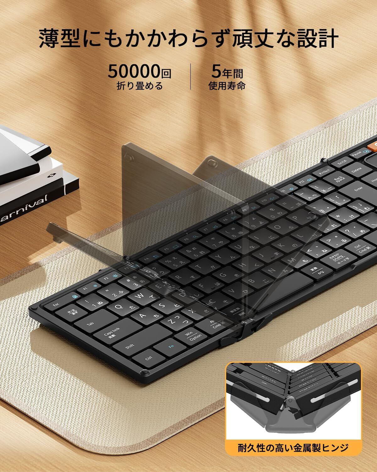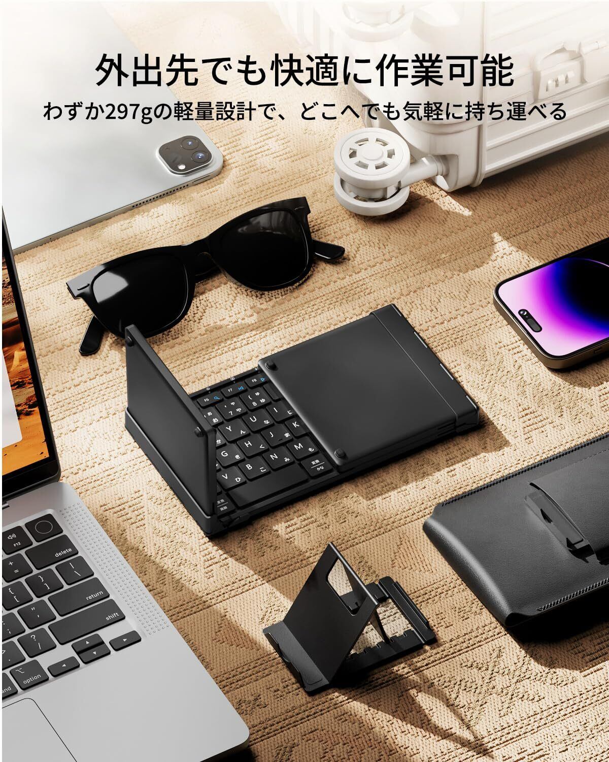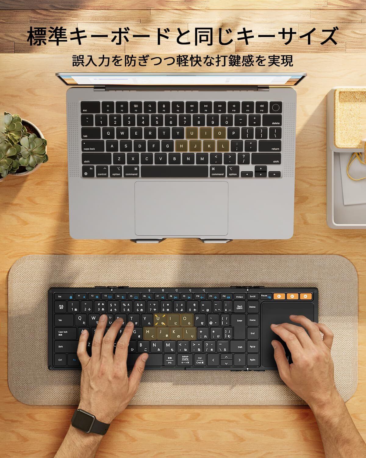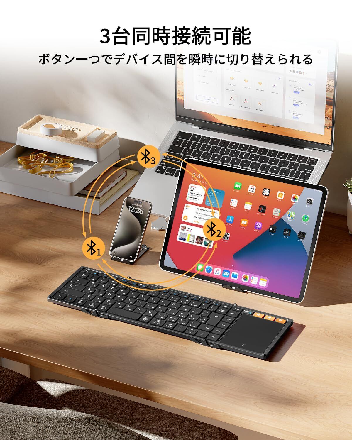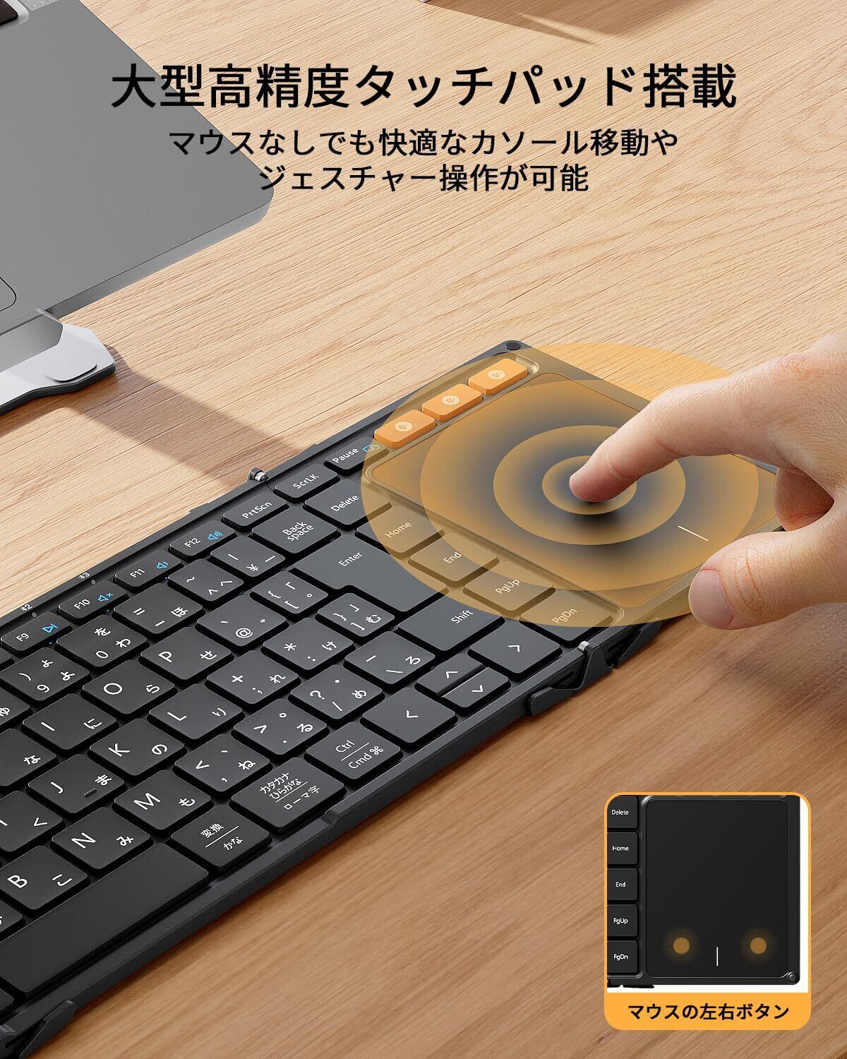 ProtoArc XK01 TP キーボード Bluetooth 折りたたみ式 ipad キーボード 大型タッチパッド搭載 3台同時接続 標準日本語配列 薄型 軽量 充電式 iOS/Android/Windows/macOS対応 収納バッグ スマホスタンド付き ブラック | kki
