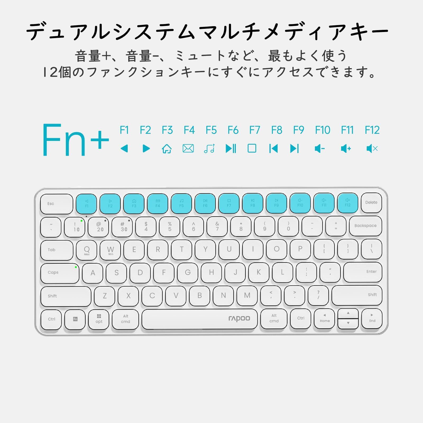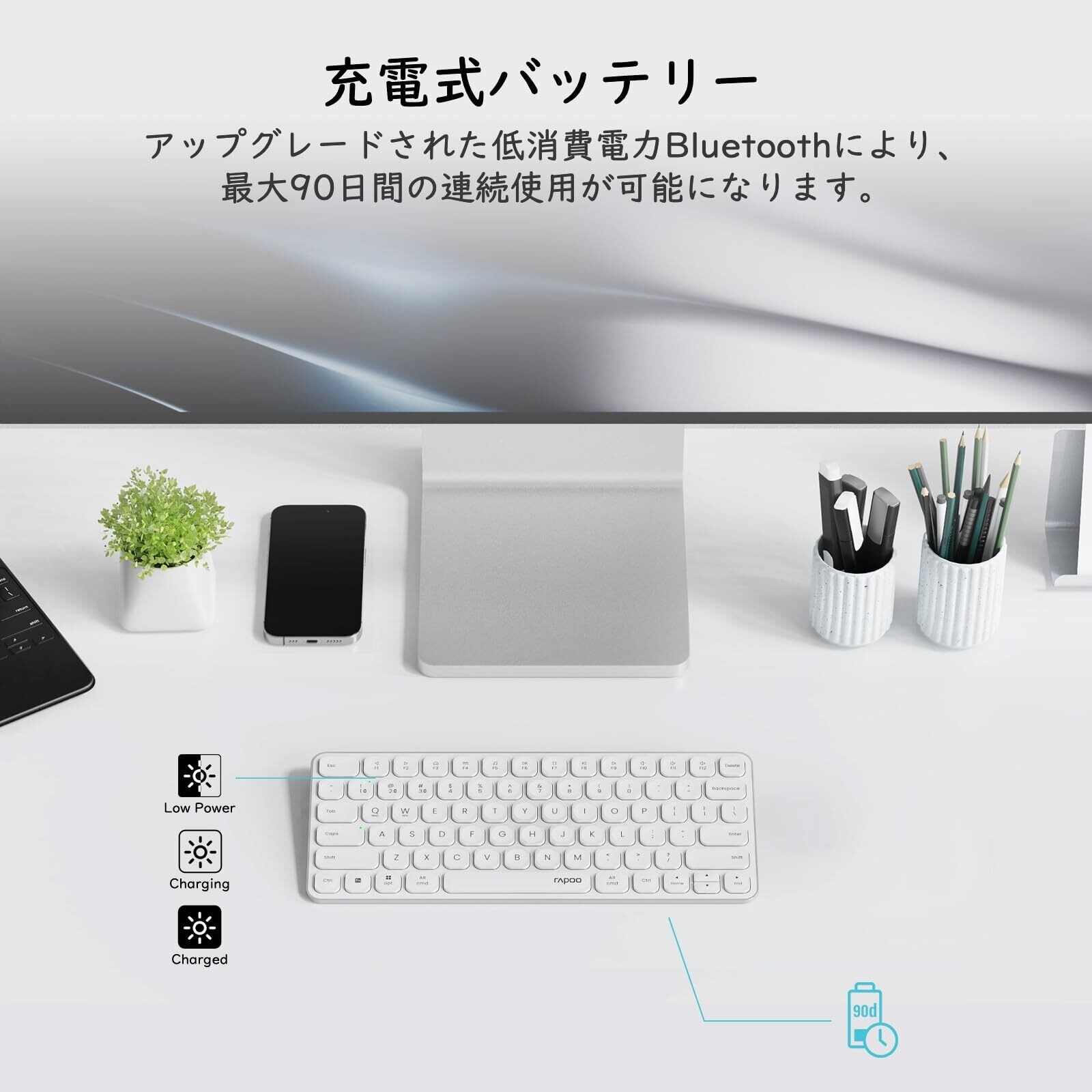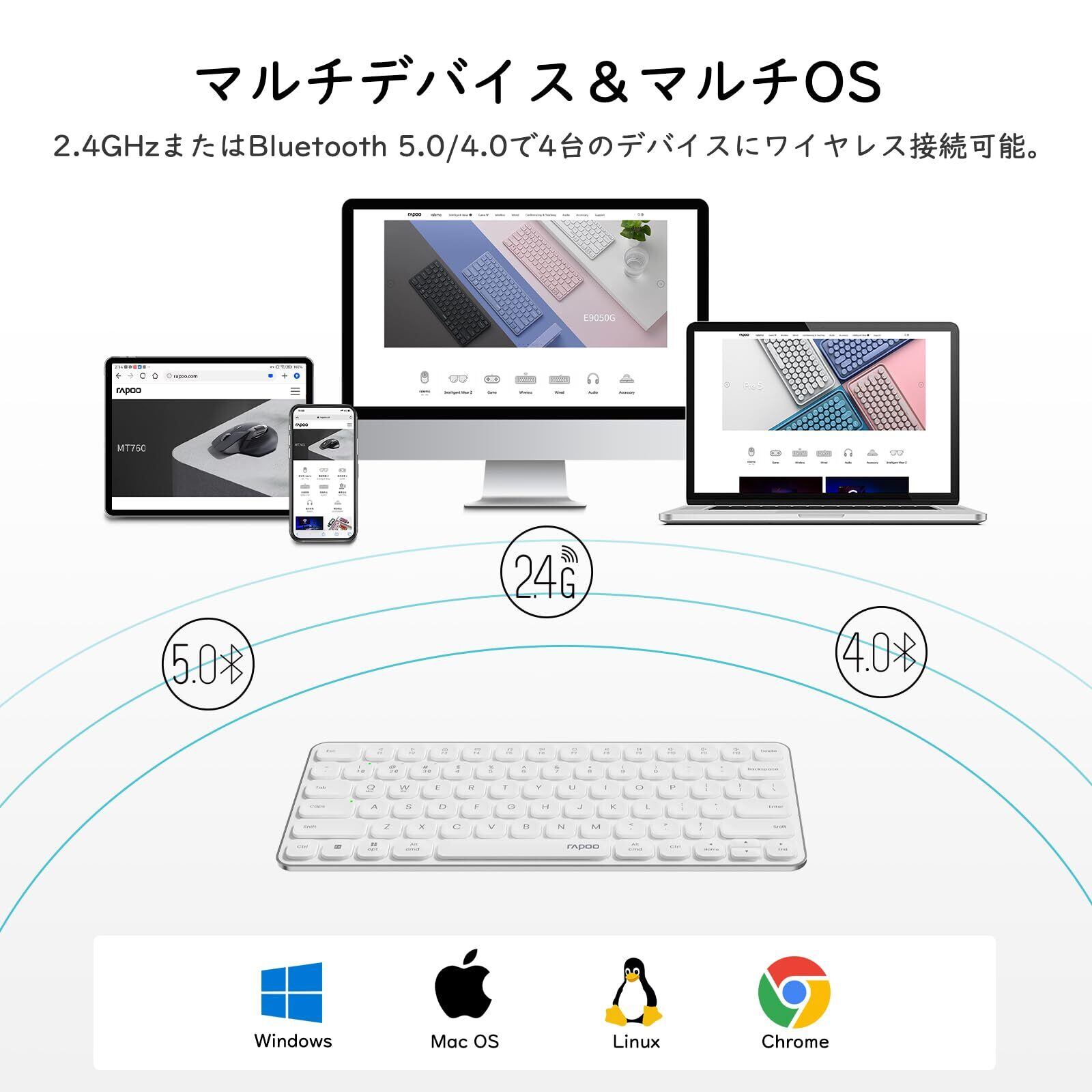 RAPOO E9050L ワイヤレス キーボード Bluetooth マルチデバイス 無線 US配列 78キー 超薄型 USB-C充電式 コンパクト 静音キーボード 4つのデバイス接続可能 ロープロファイル Windows/Mac/Linux/Chrome対応 ホワイト | kki