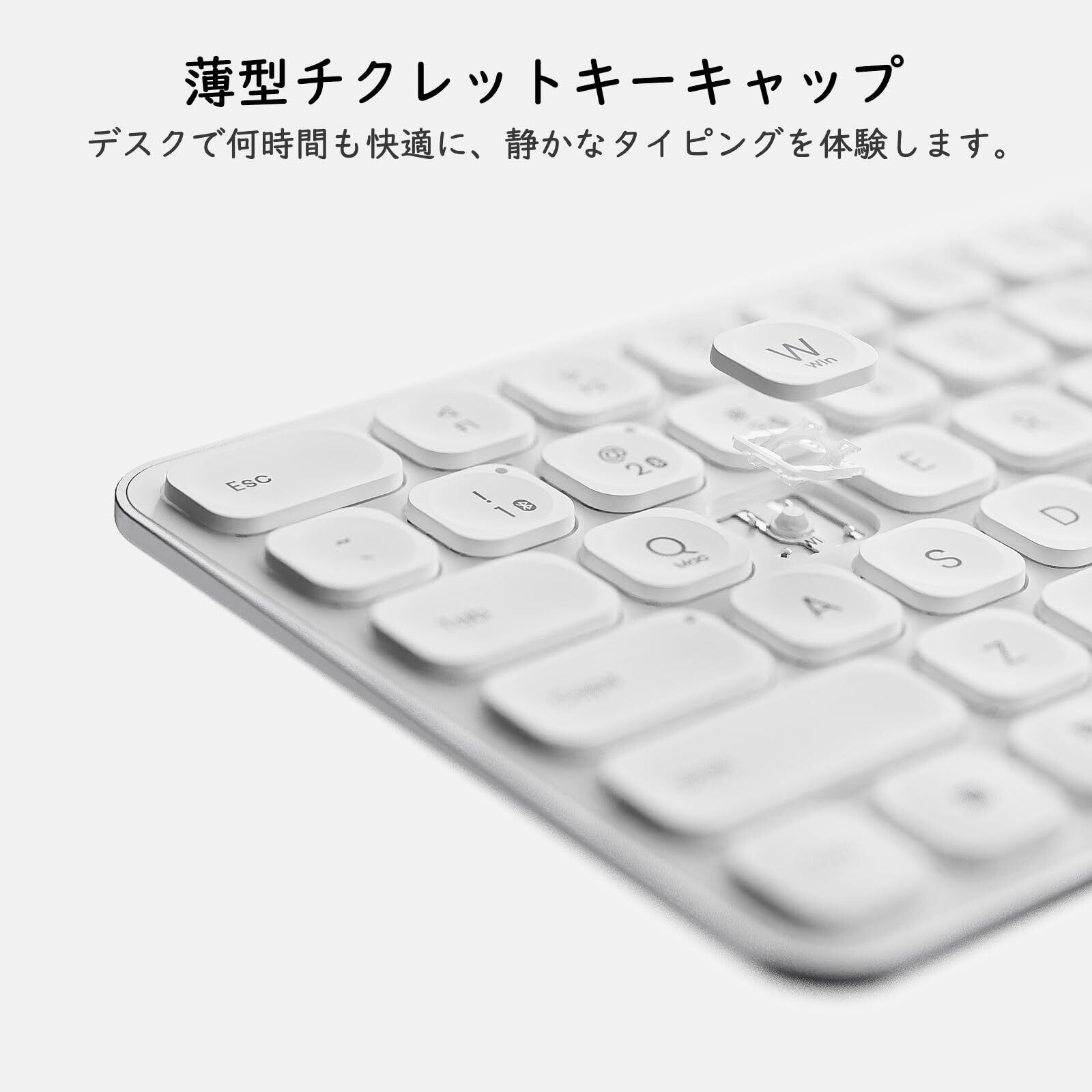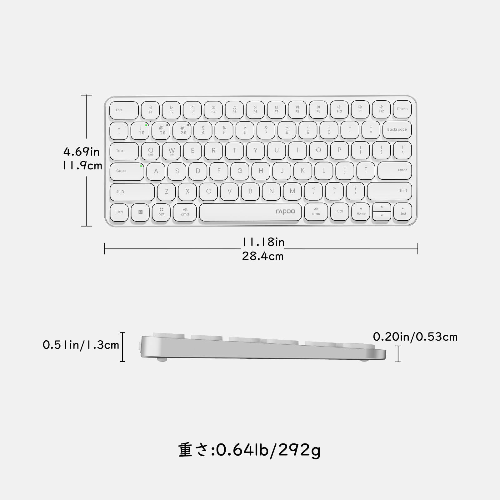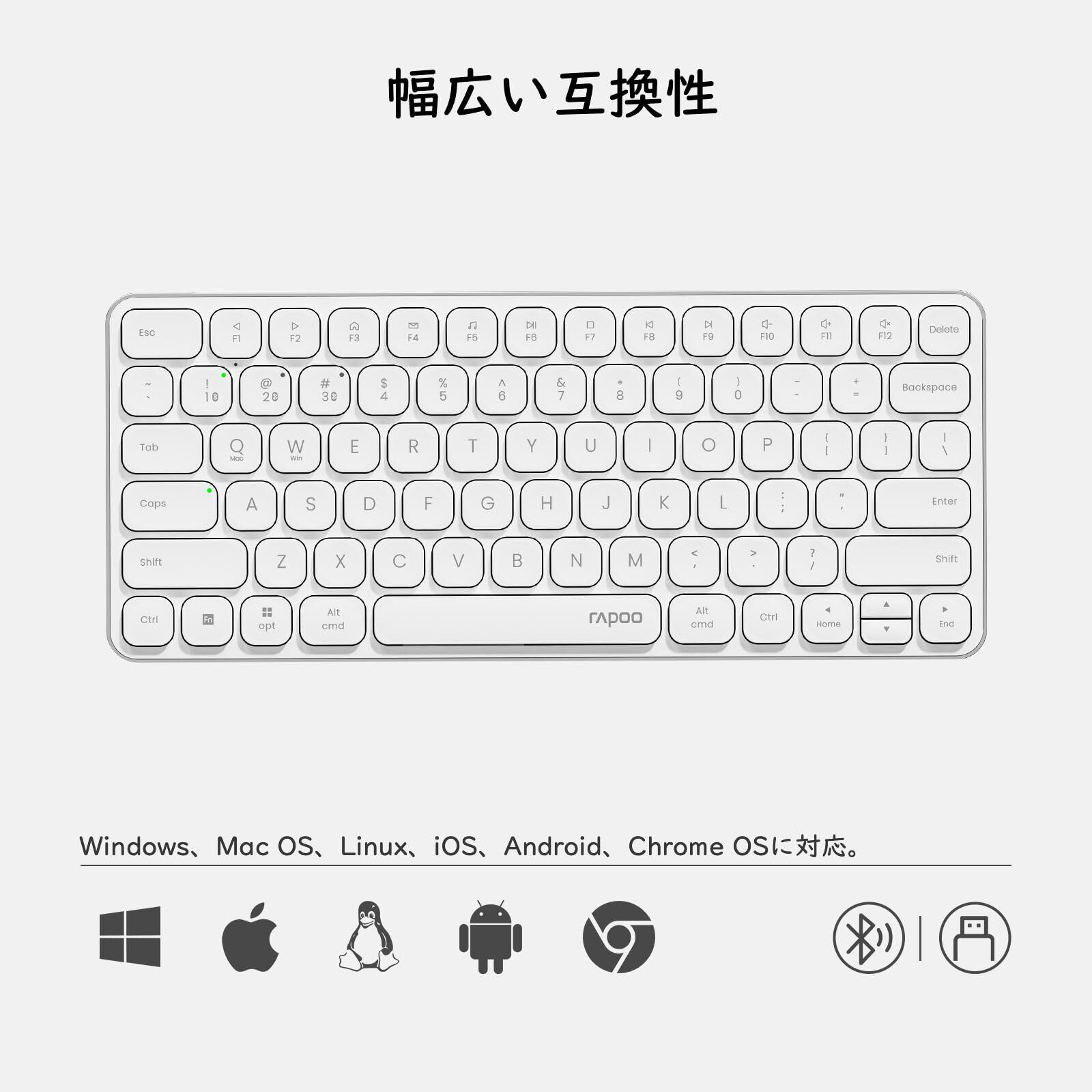 RAPOO E9050L ワイヤレス キーボード Bluetooth マルチデバイス 無線 US配列 78キー 超薄型 USB-C充電式 コンパクト 静音キーボード 4つのデバイス接続可能 ロープロファイル Windows/Mac/Linux/Chrome対応 ホワイト | kki