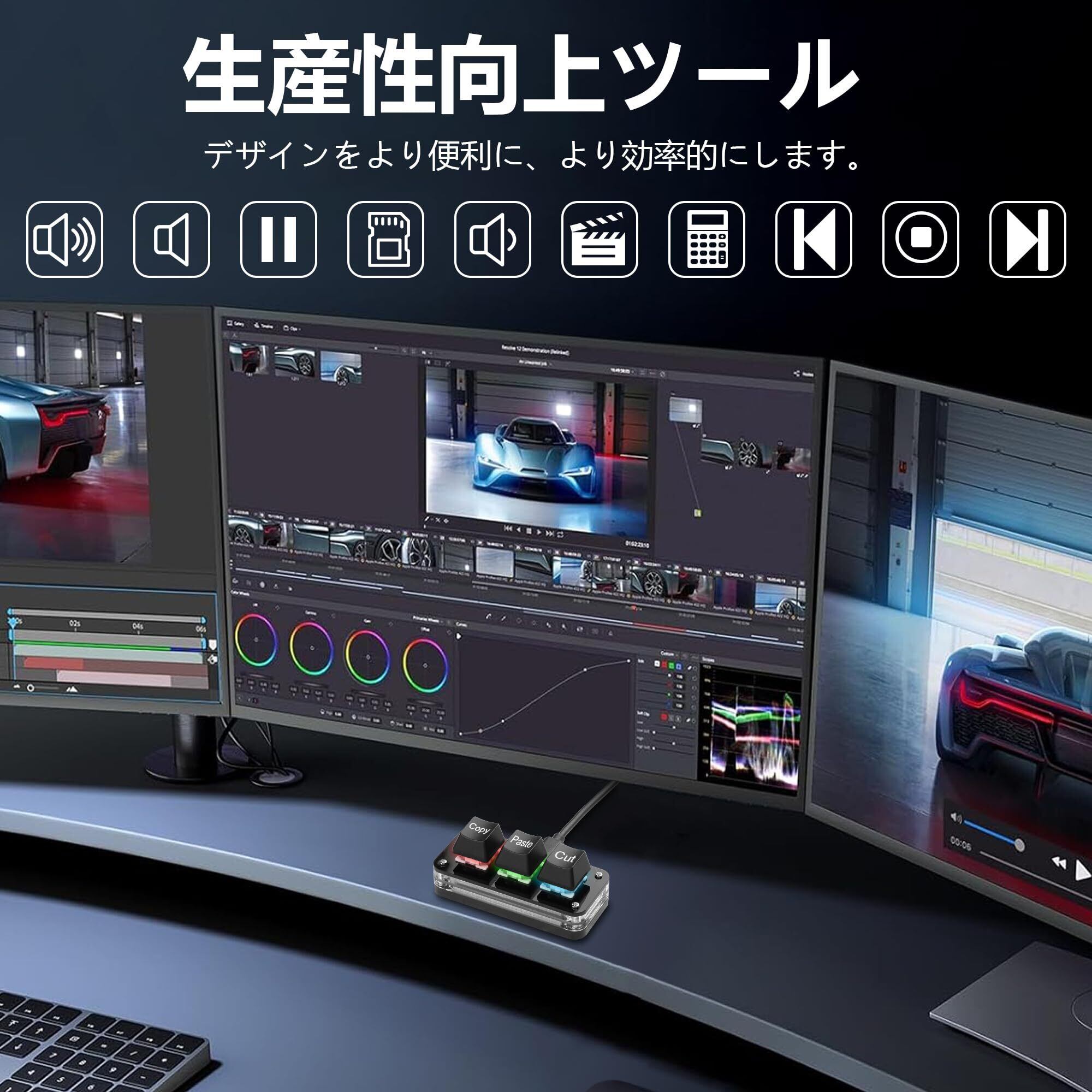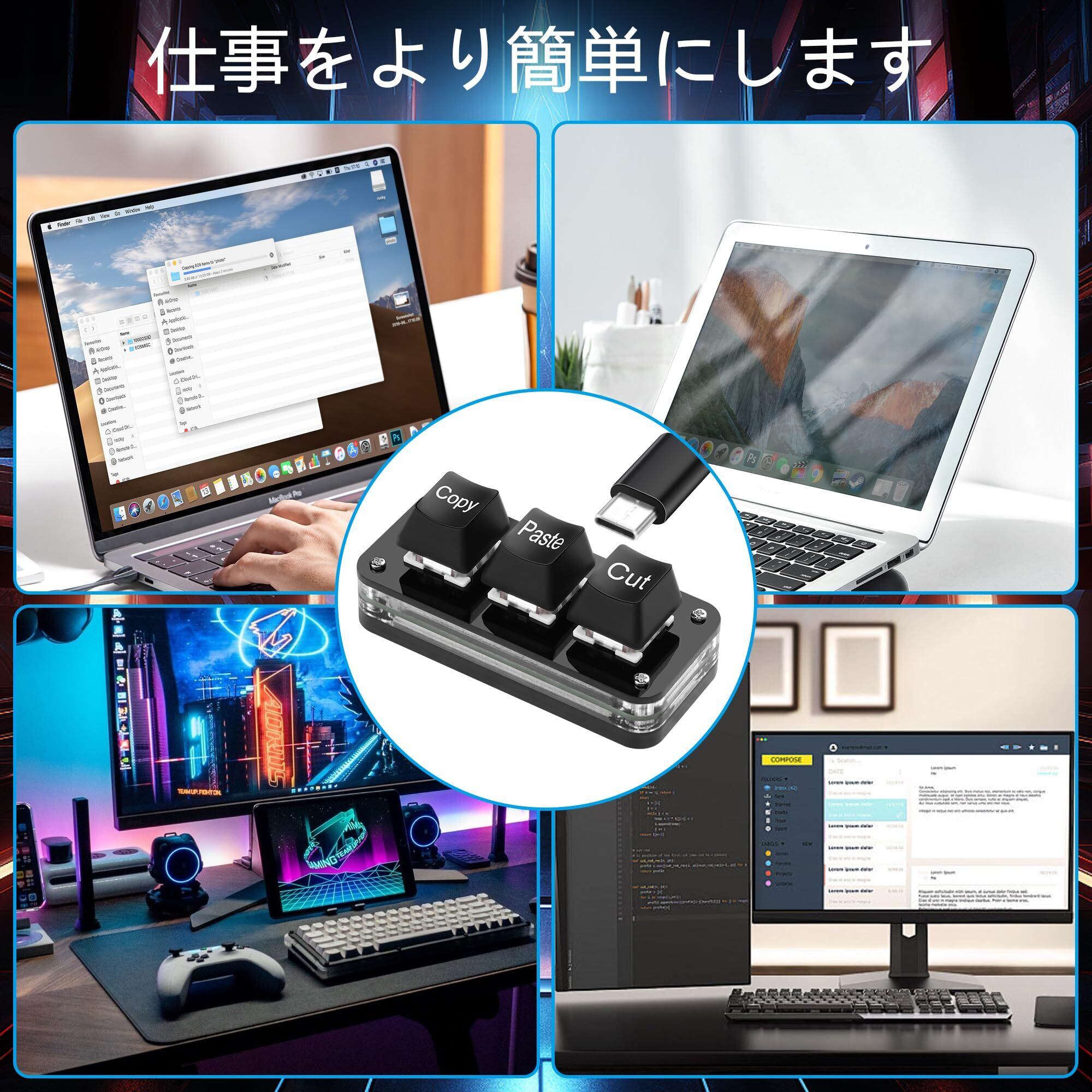 SinLoon USBミニ3キー・キーボード ホットスワップ 片手メカニカル ゲーミング キーボード USBケーブル付き 経理業務やリズムゲームに用