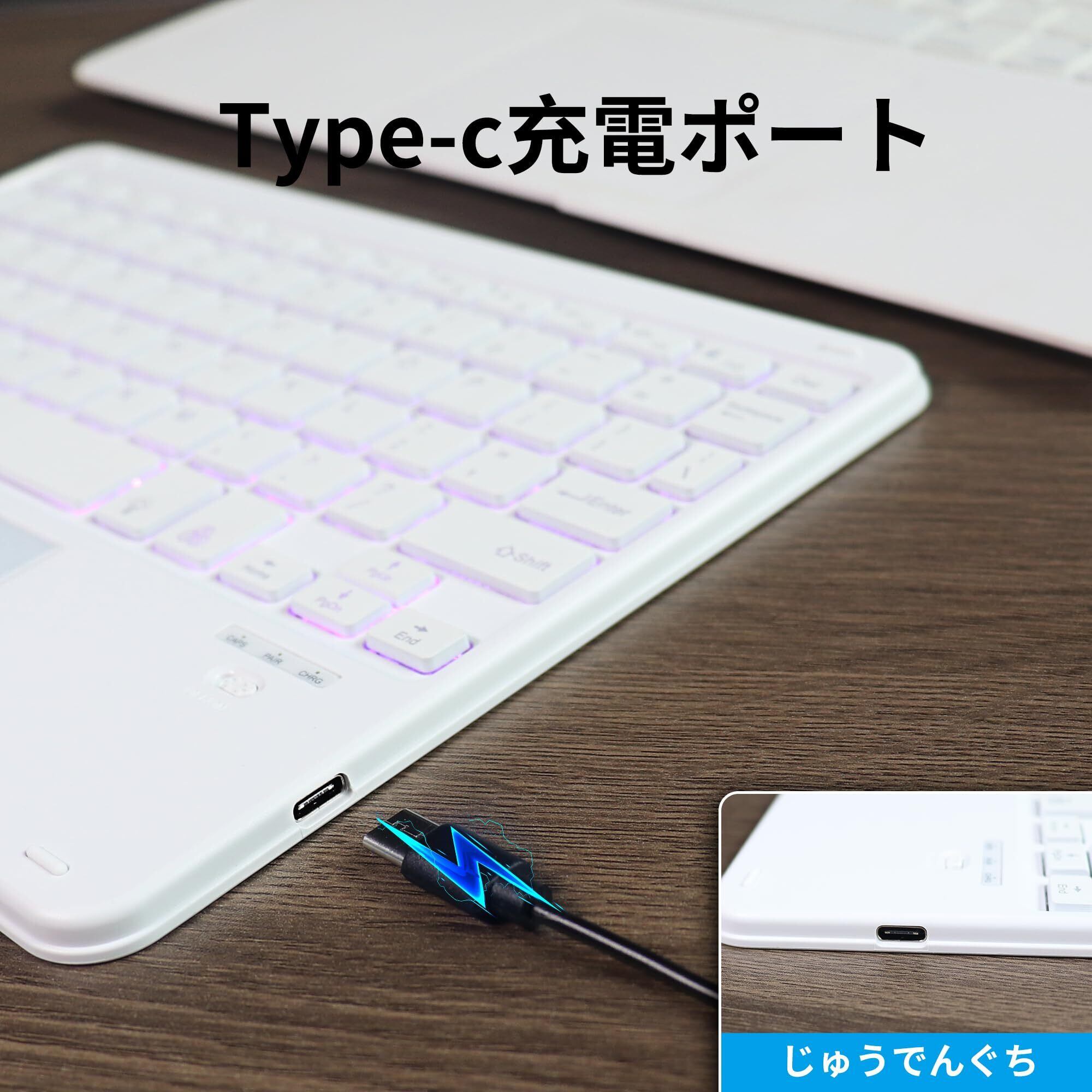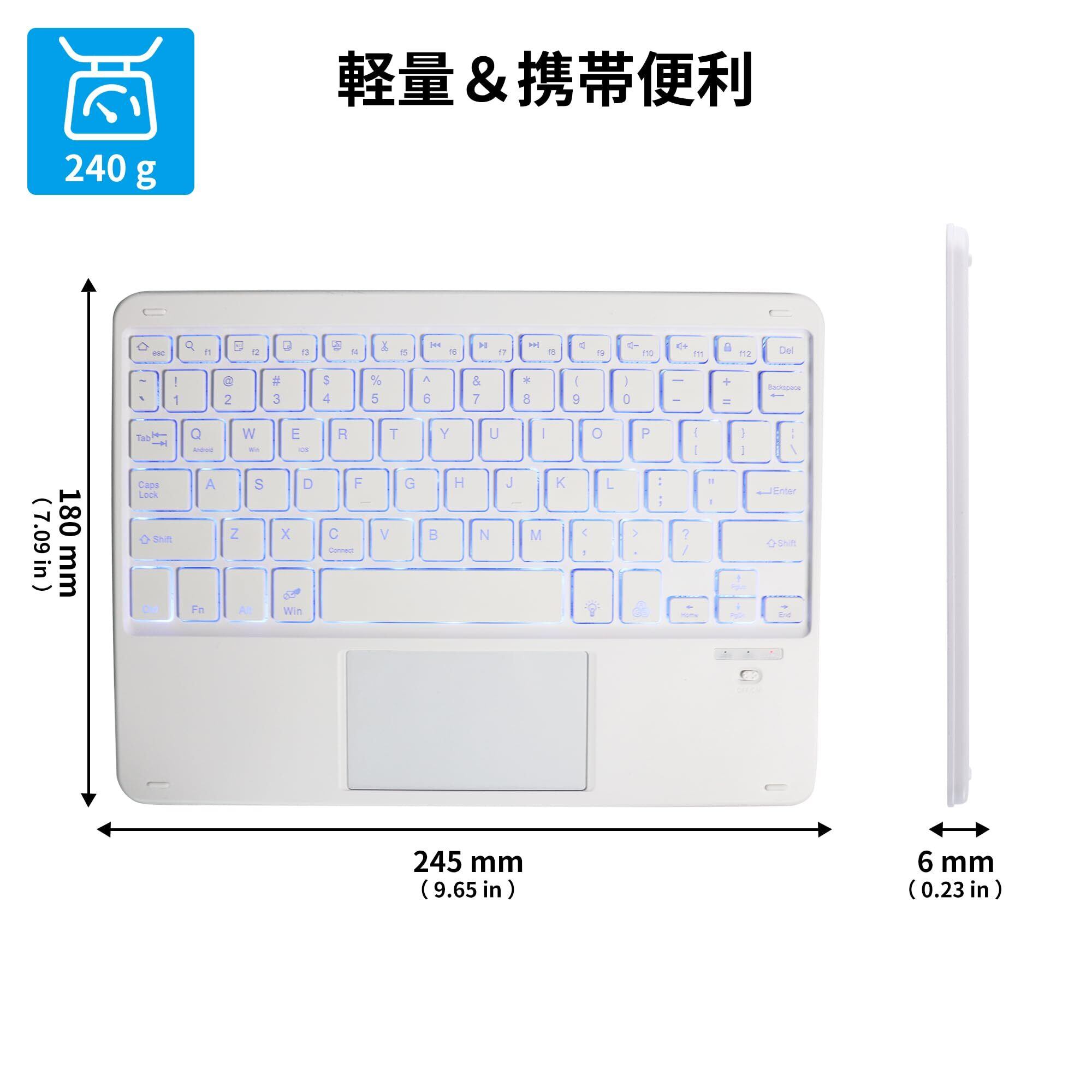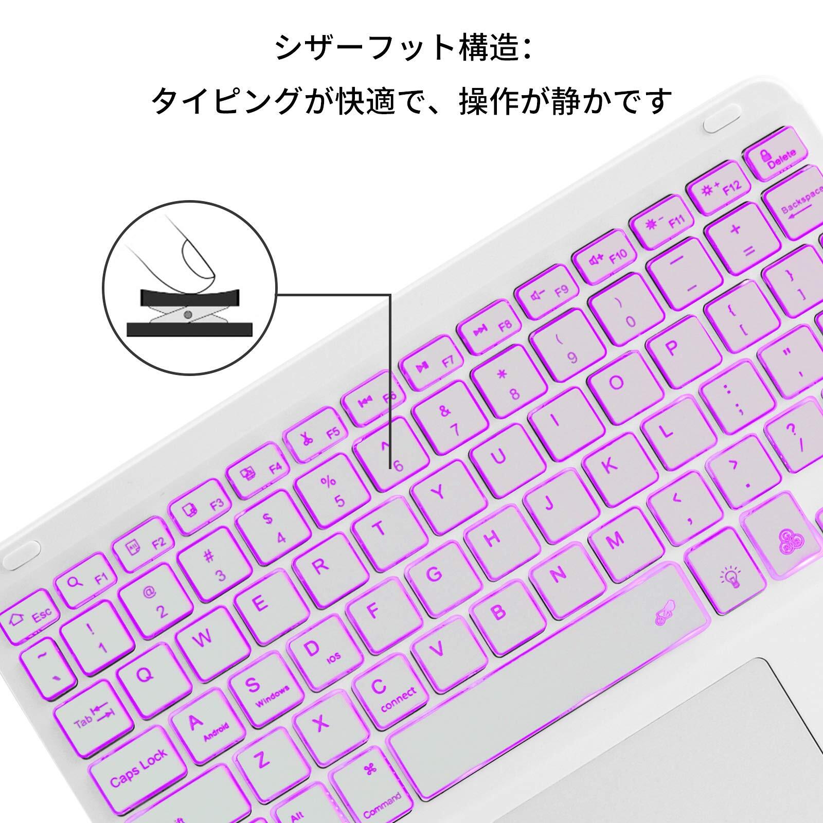 Bluetoothキーボード タブレットキーボード タッチパッド付 7色バックライト搭載 USB充電 極薄 汎用 軽量 携帯便利 コンパクト テンキーレスiPad Pro/iPad Air3タブレット/iPhone用 Surface Go/Surface Pro用 iOS/Android/Mac/Windows対応 白 | kki