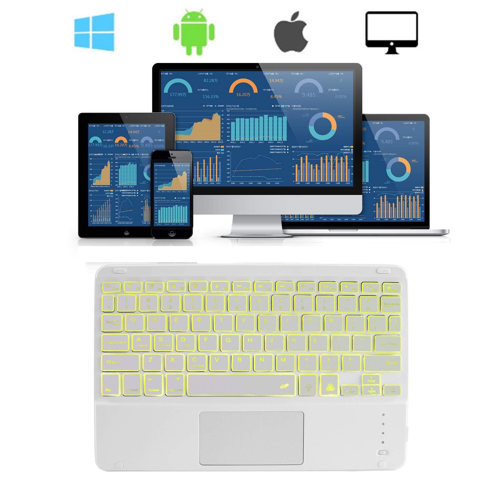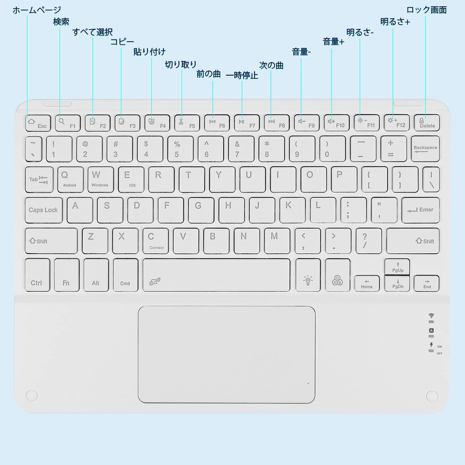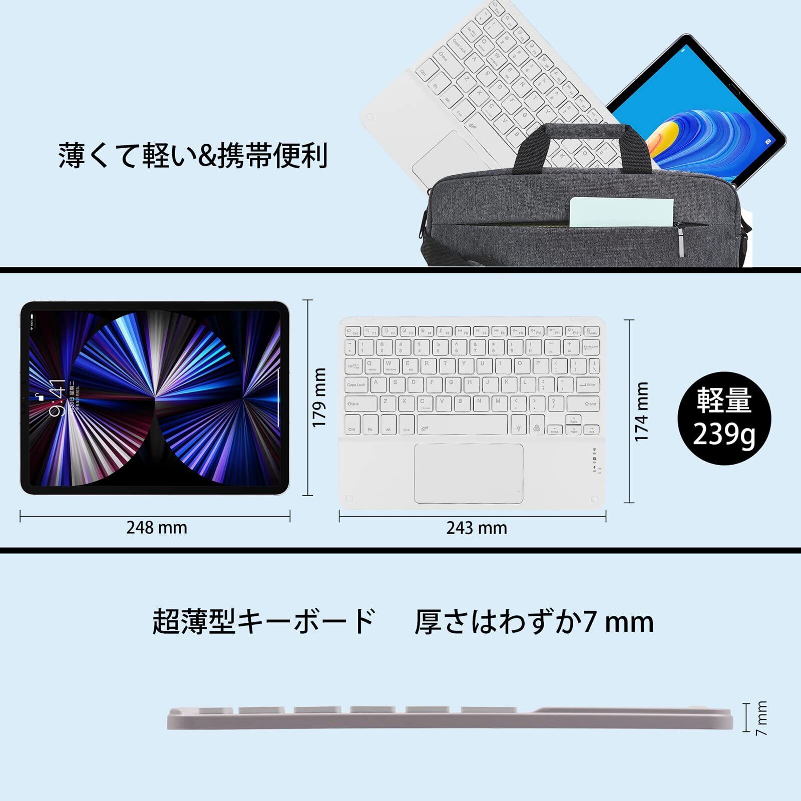 Bluetoothキーボード タブレットキーボード タッチパッド付 7色バックライト搭載 USB充電 極薄 汎用 軽量 携帯便利 コンパクト テンキーレスiPad Pro/iPad Air3タブレット/iPhone用 Surface Go/Surface Pro用 iOS/Android/Mac/Windows対応 白 | kki