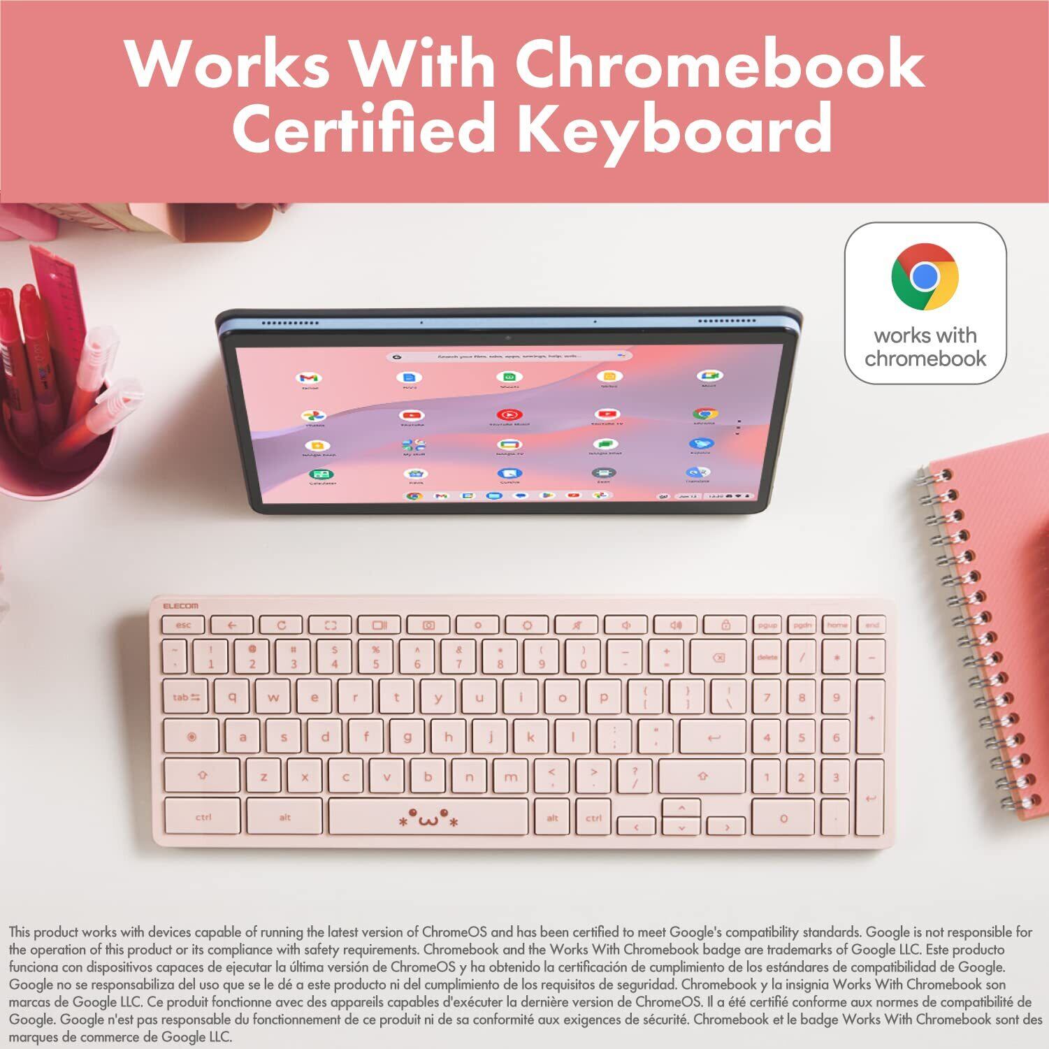 ELECOM エレコム WWCB認証 Bluetoothキーボード TK-CB03BPPF-EN (Chromebook ChromeOS US配列 テンキーあり 単4形乾電池)ピンクフェイス | kki