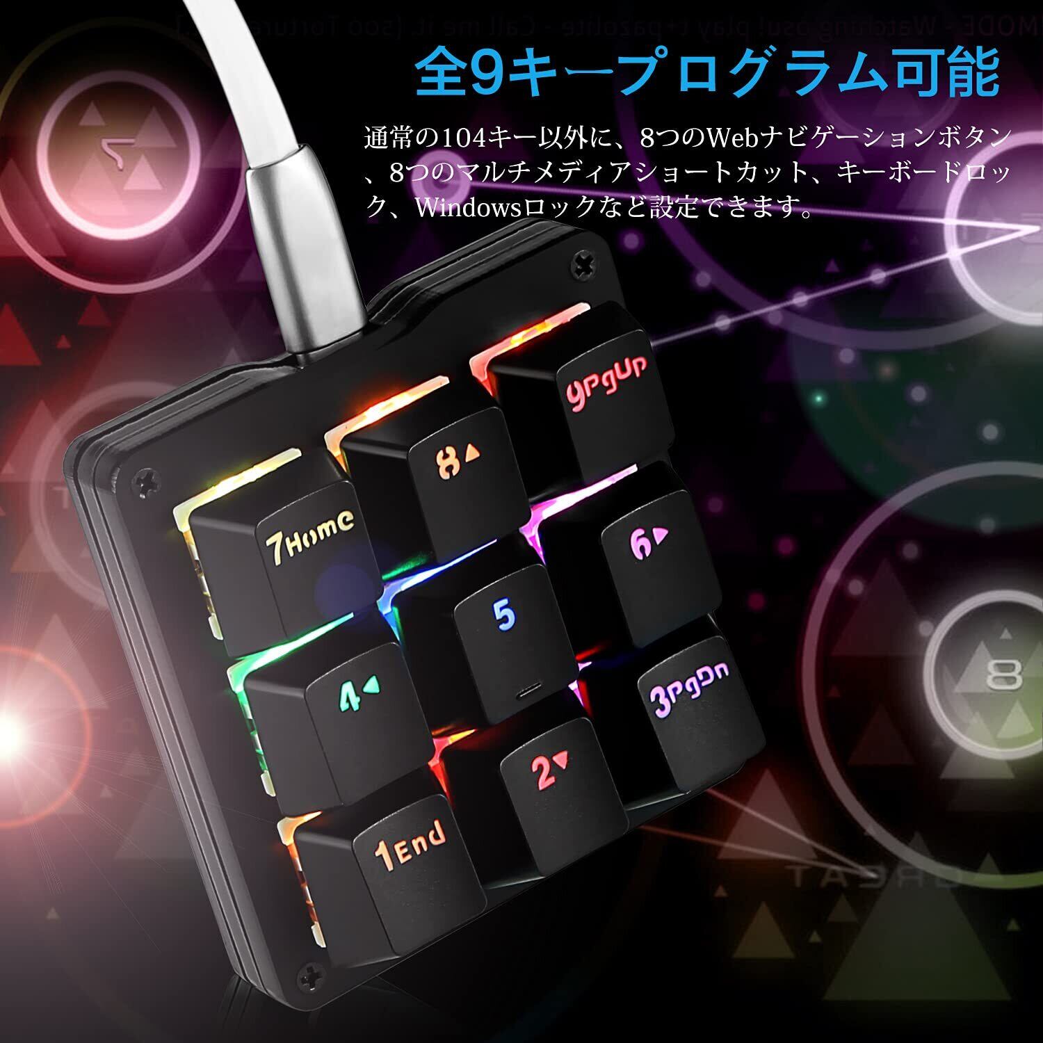 Koolertron 片手キーボード マクロキーボード OSUキーボード ゲーミングキーボード メカニカルキーボード RGBバックライト カスタマイズ可能 左手デバイス 9キーフルプログラマブル ブラック 赤軸 ミニキーボード ショットカットキー 小型キーボード Type-C有線 ポータブル イラストレーション&動画編集&絵描き適用 | kki