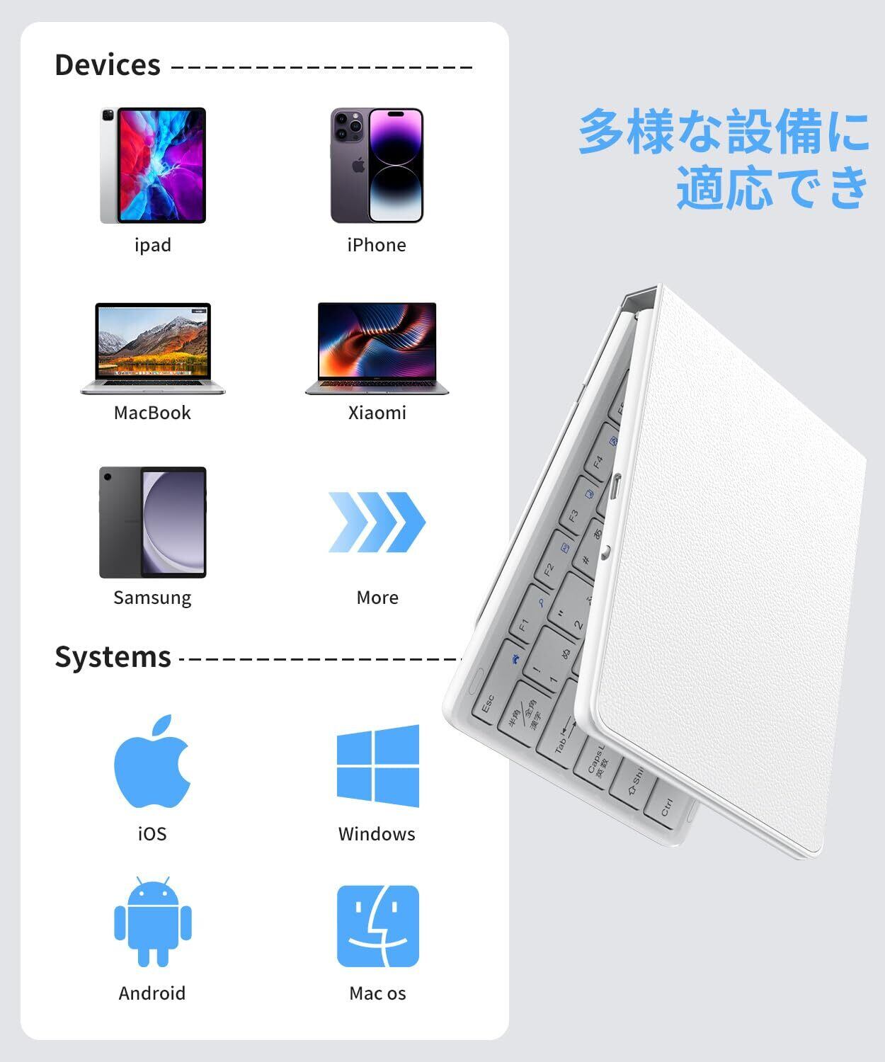【2026革新版】Omikamo キーボード Bluetooth 折り畳み 日本語配列 ipad キーボード ワイヤレス マルチペリング iOS/Mac/Windows/Android/Google対応 フルサイズ パンダグラフ Type-C充電式 コンパクト 薄型 軽量(ホワイト) | kki