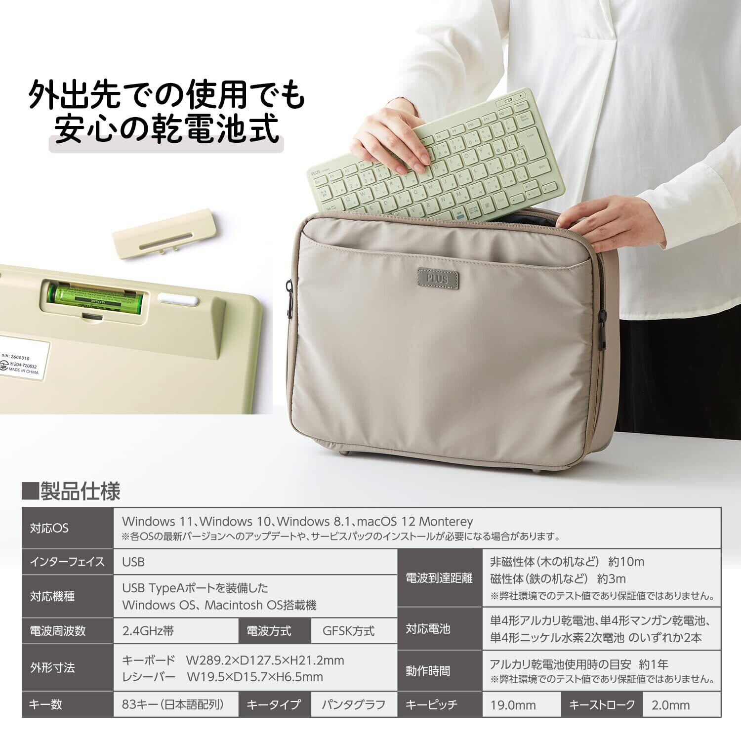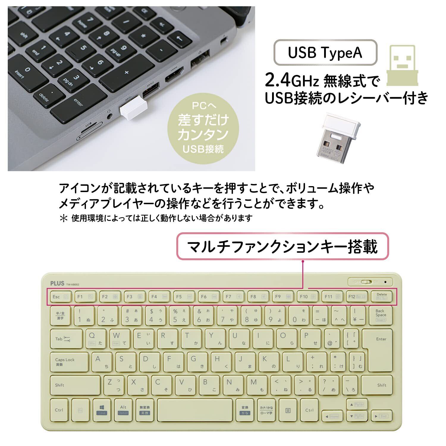 PLUS キーボード ジブンイロ 薄・ミニ ワイヤレスキーボード グリーン TW-KB002 428-853