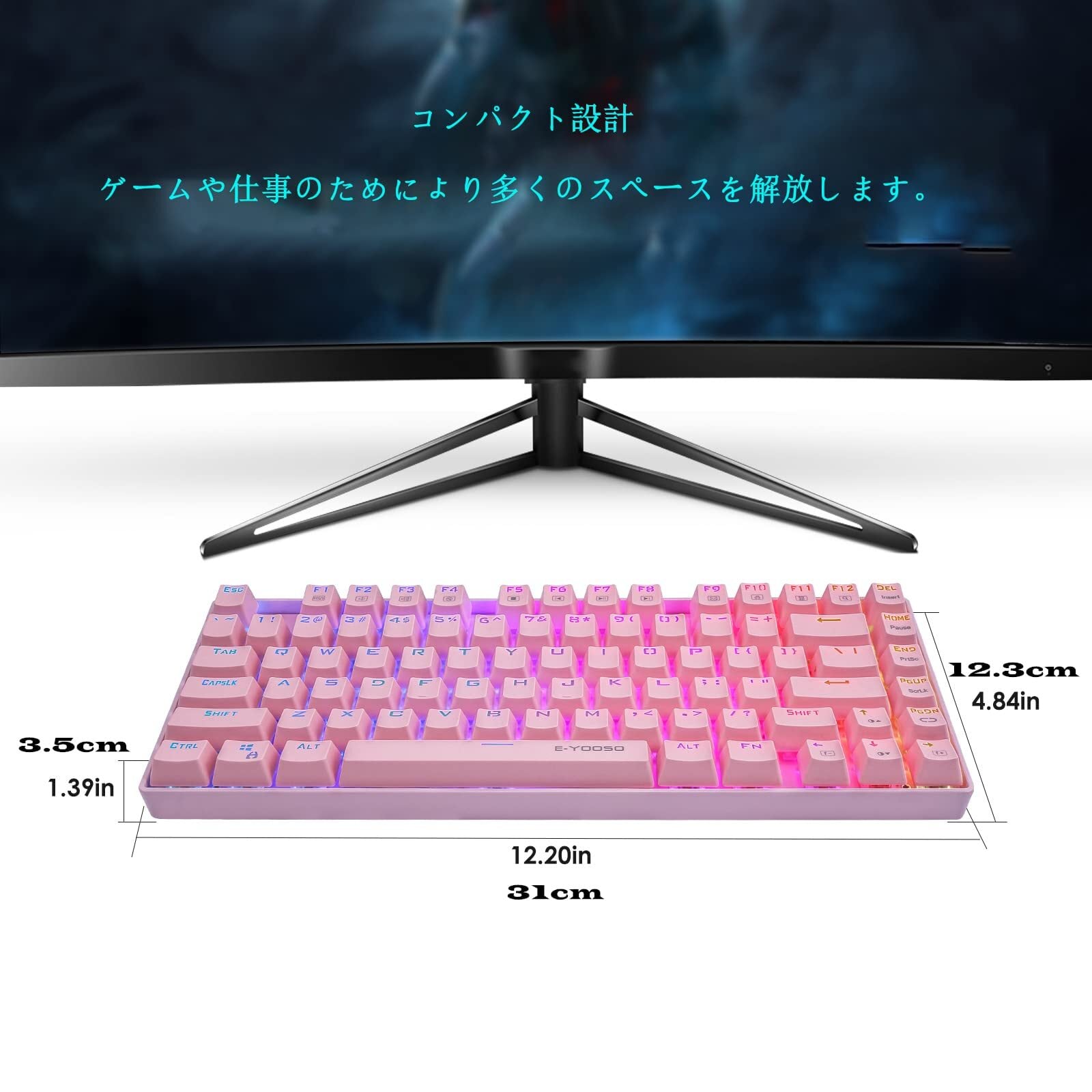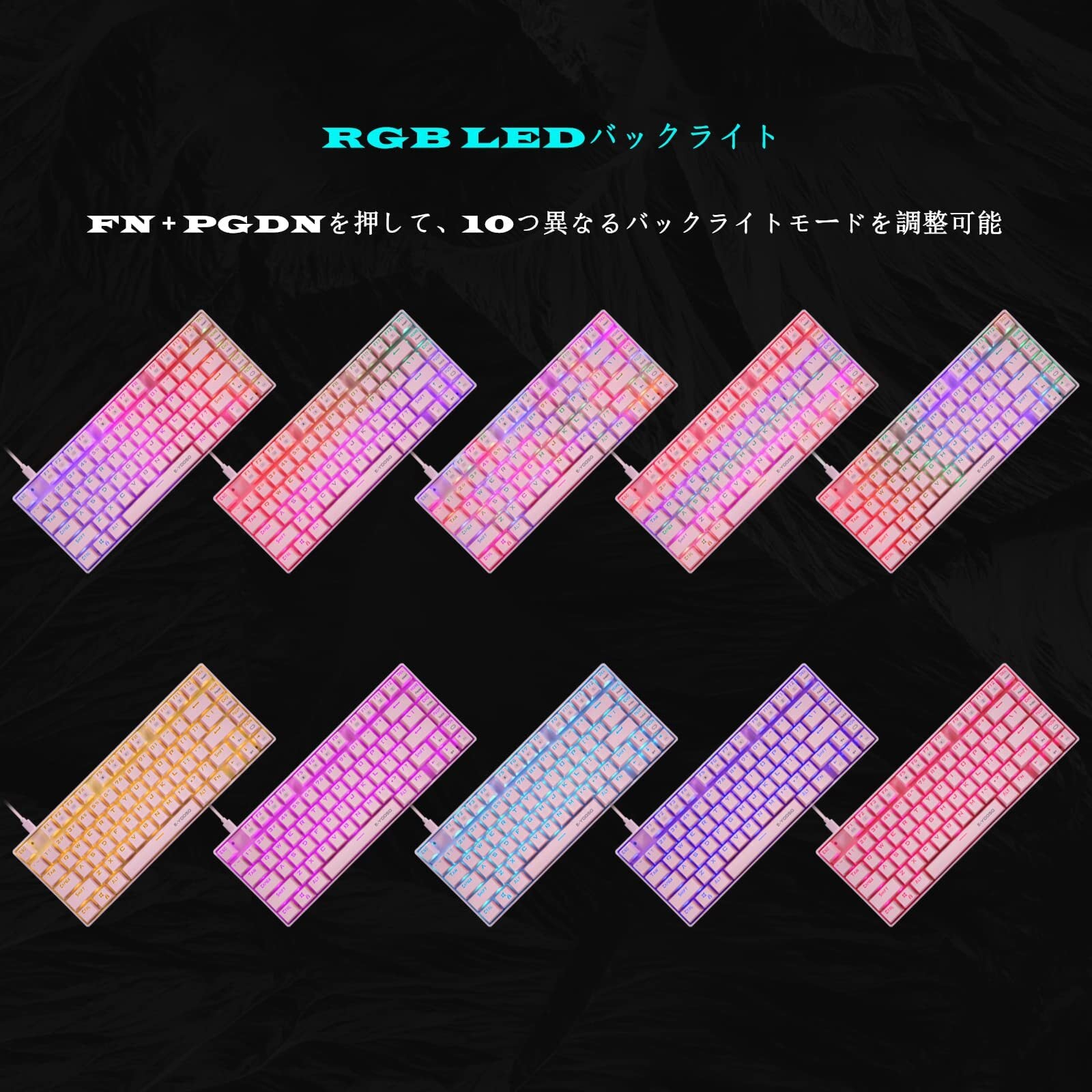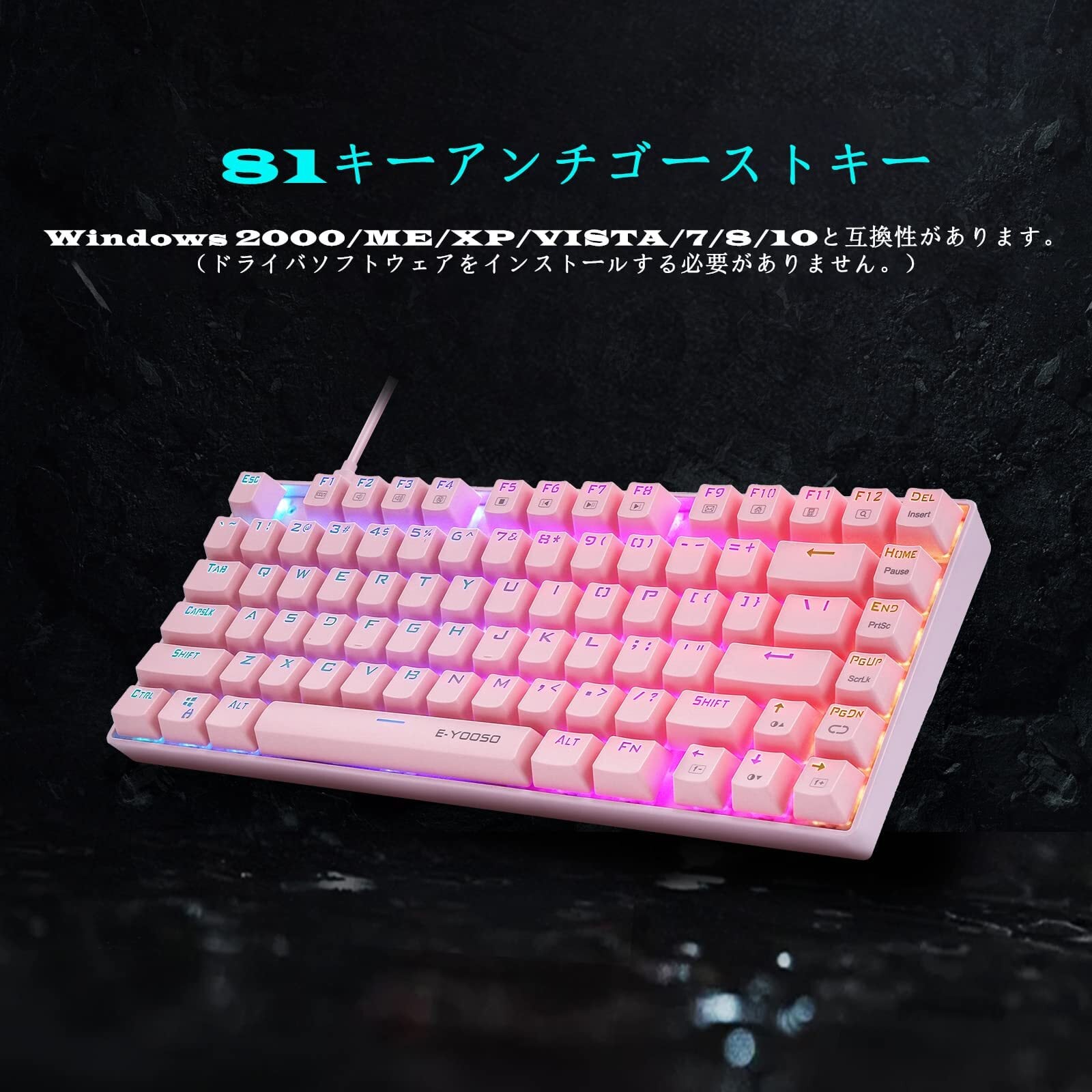e元素ゲーミングキーボード81キー 茶軸を採用メカニカル式キーボード 英語配列RGBバックライト 防水機能付き アンチゴーストキー キースイッチが交換可能 LOLゲーム専用キーボード (茶軸, ピンク) | kki