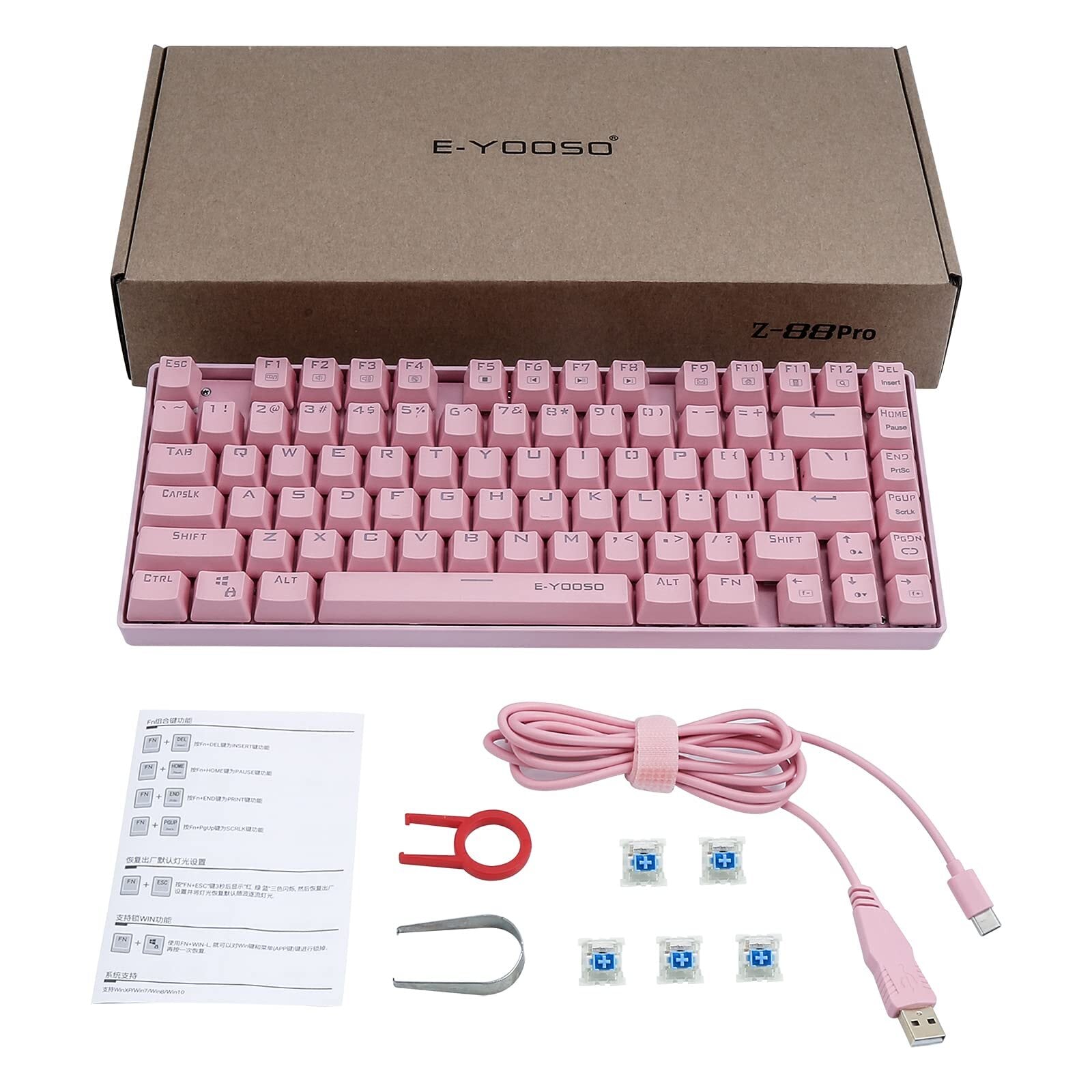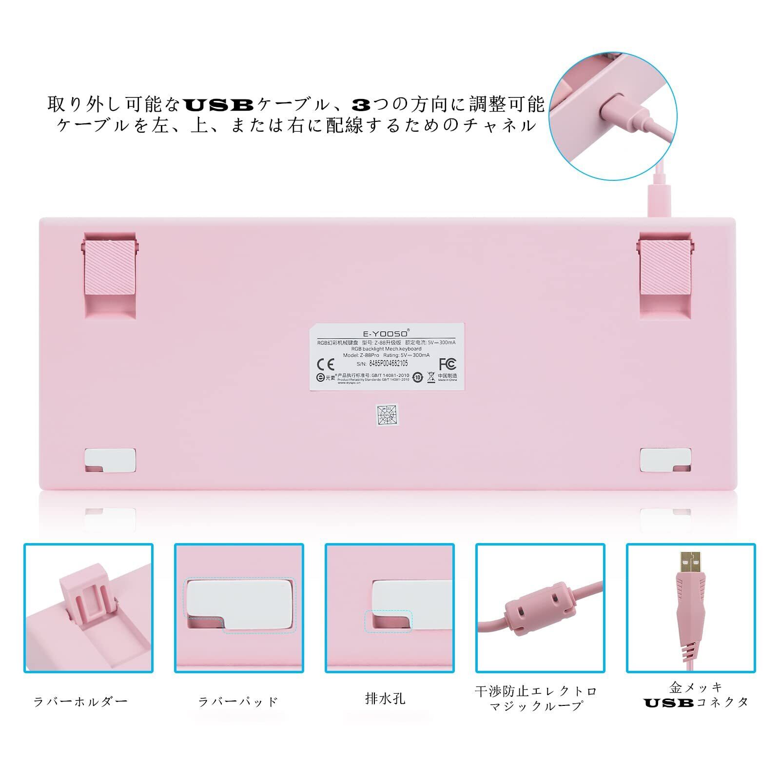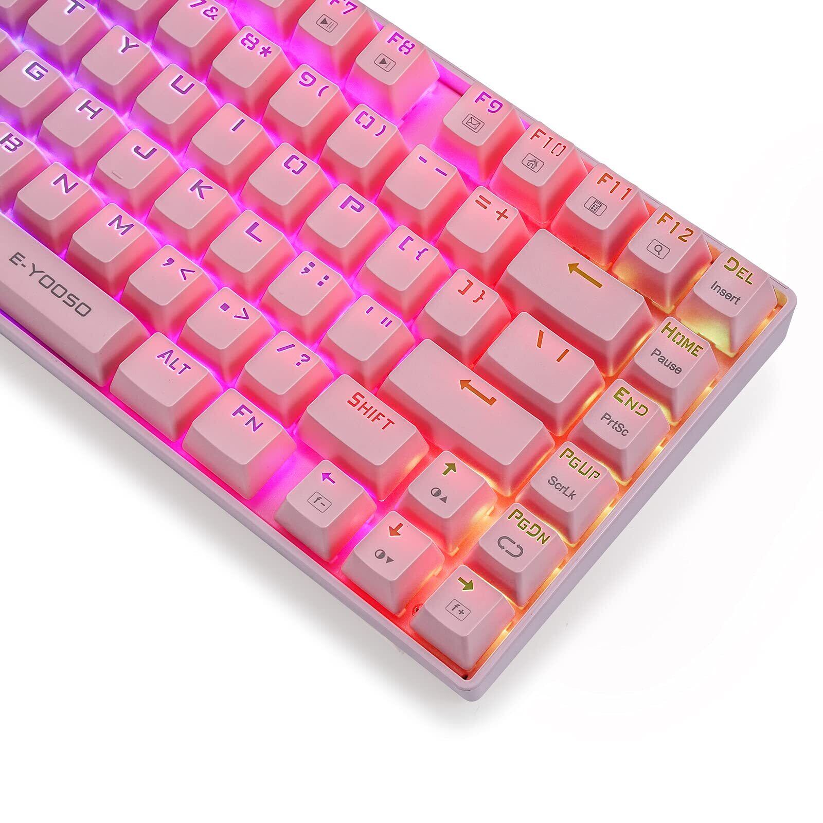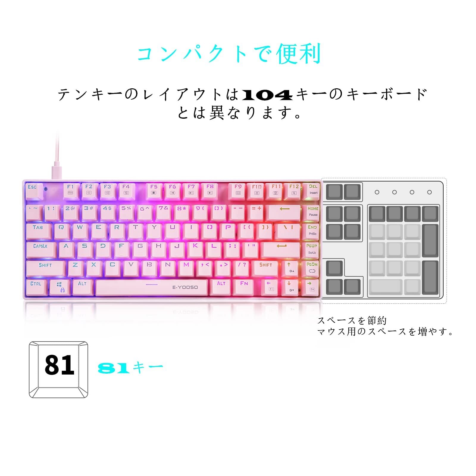 e元素ゲーミングキーボード81キー 茶軸を採用メカニカル式キーボード 英語配列RGBバックライト 防水機能付き アンチゴーストキー キースイッチが交換可能 LOLゲーム専用キーボード (茶軸, ピンク) | kki