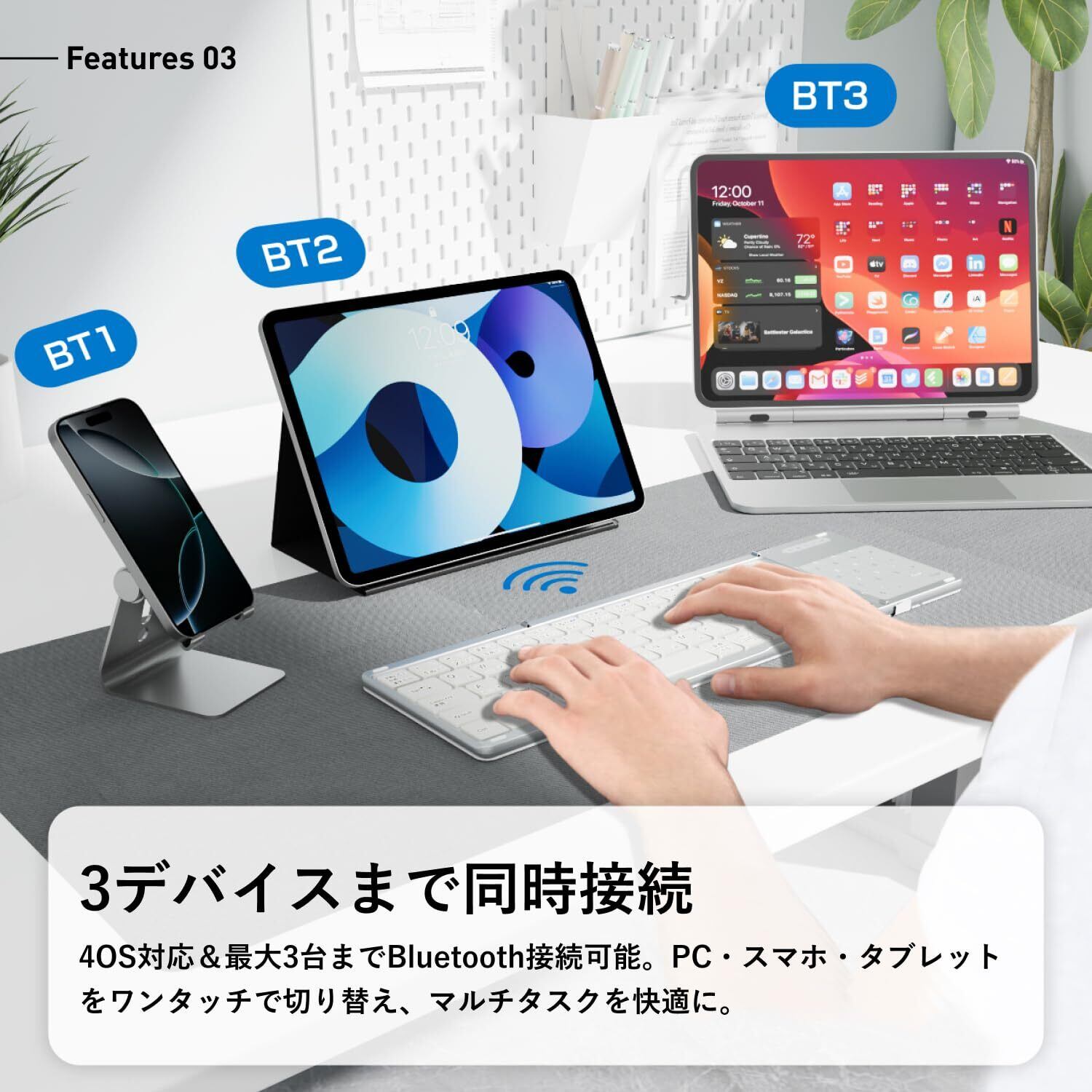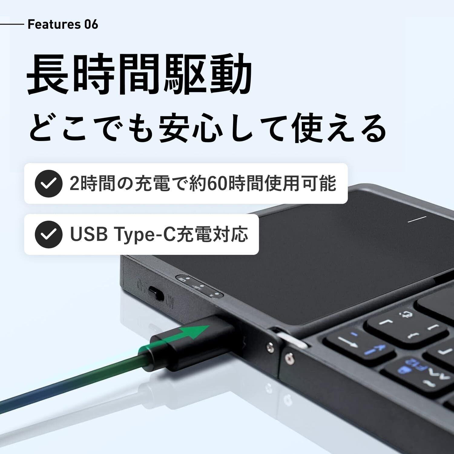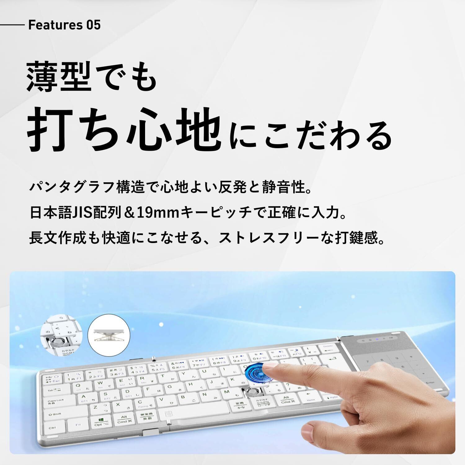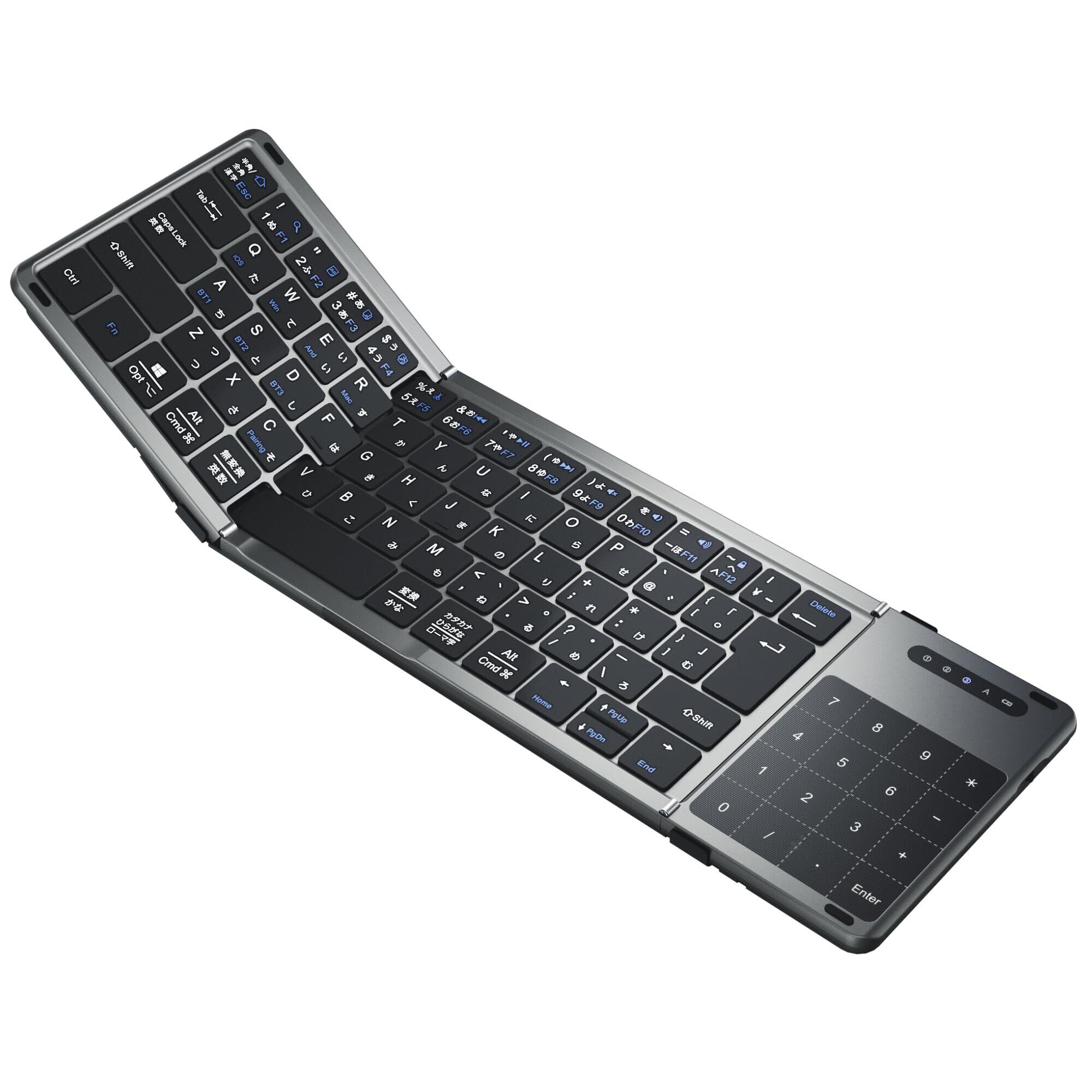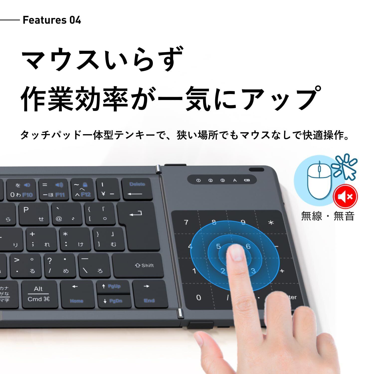【2025年最新型】EWIN ワイヤレスキーボード 折り畳み式 三つ折り JIS日本語標準配列キーボード 【業界初タッチパッド搭載&テンキー付き】 三台同時接続 Bluetooth iOS/Android/Mac/Windows対応 軽量薄型 USB-C充電式 ipad/スマホ/タブレット/パソコン用 パンタグラフ式 日本語取扱説明書 (ブラック) | kki