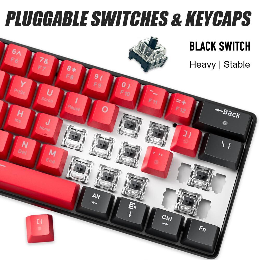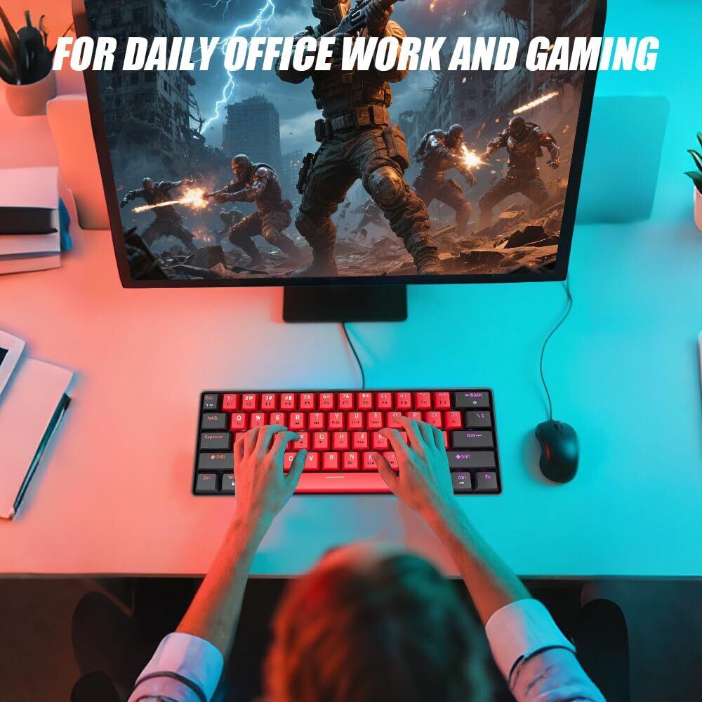 abucow ゲーミングキーボード ミニマリスト ポータブル 有線 超コンパクト ミニ 61キー RGBバックライトキーボード (黒と白) (ブラックレッド)