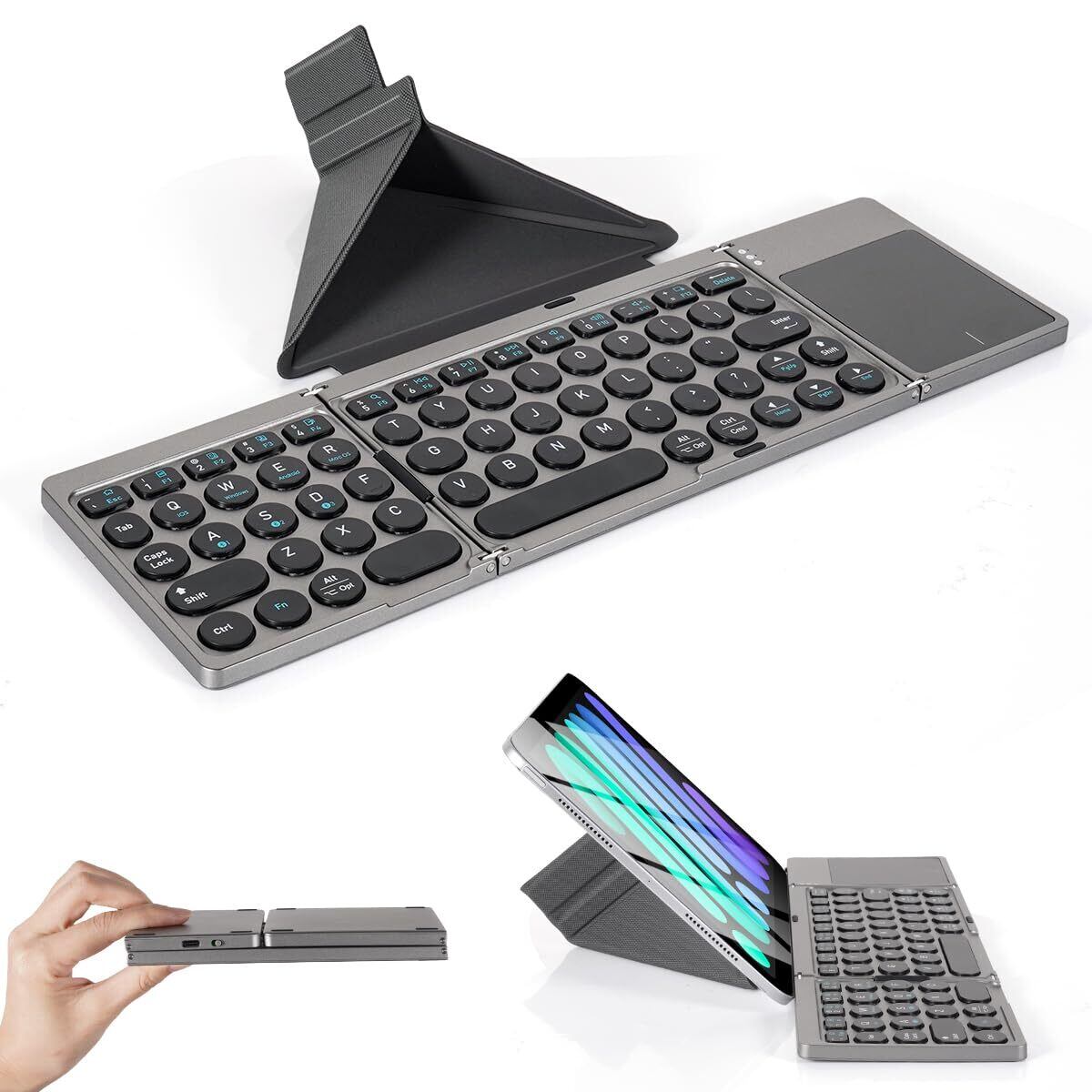 LAMA キーボード 折りたたみ bluetooth ワイヤレス タッチパッド付き keyboard 無線 ブルートゥース ios Android mac Windows対応 3台までのデバイスと接続可能 ipad iphone用 コンパクト 薄型 軽量 タブレット スマホ パソコン用 Type-C充電 スタンド付 日本語取扱書付き | kki