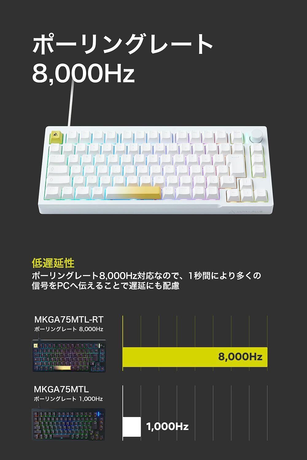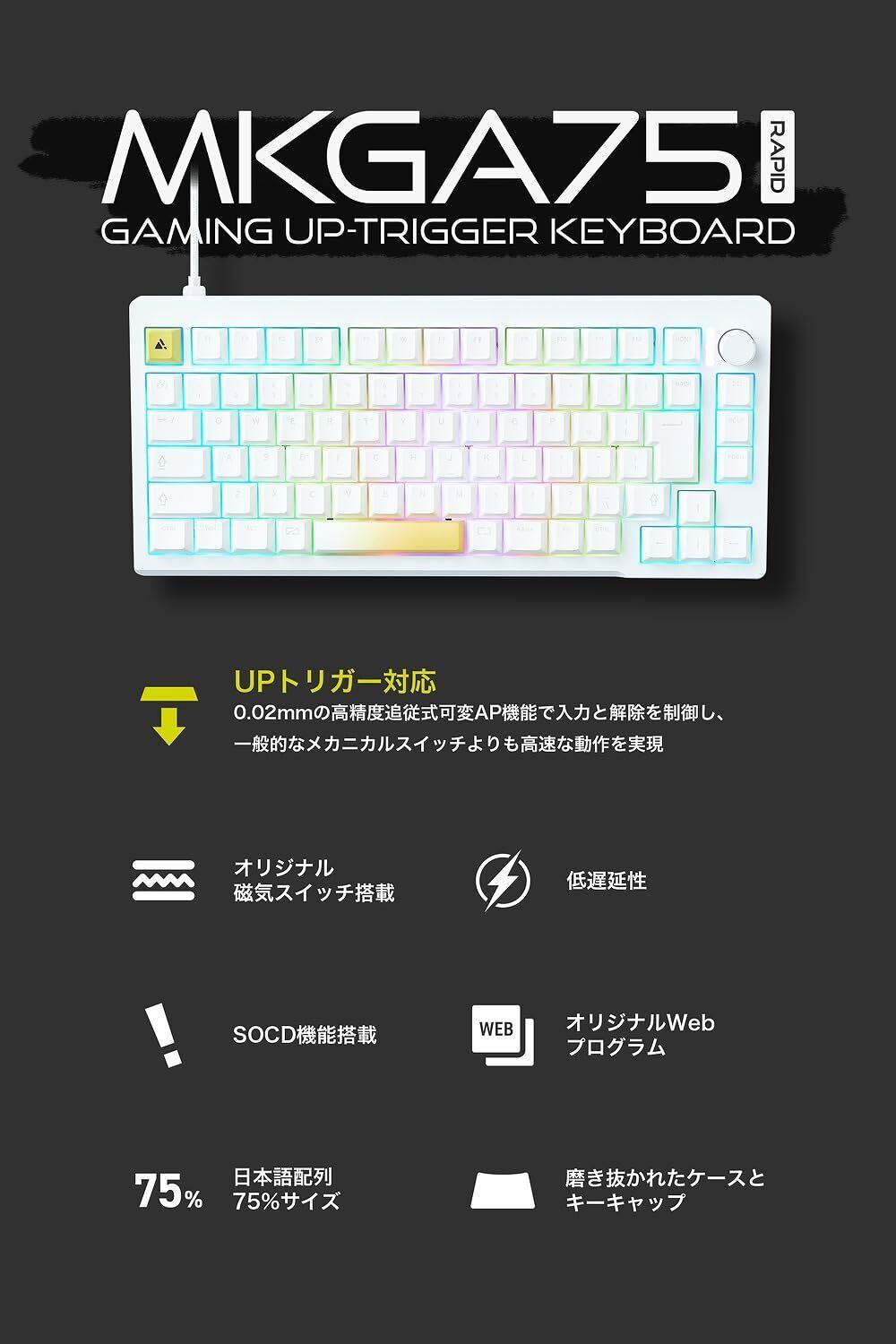 プリンストン ULTRA PLUS UPトリガー対応 ゲーミングキーボード 白 ラピッドトリガー 75% オリジナル磁気スイッチ 有線 SOCD機能搭載 CNCフルアルミ RGB ホワイト UP-MKGA75MTL-RT-J/W | kki