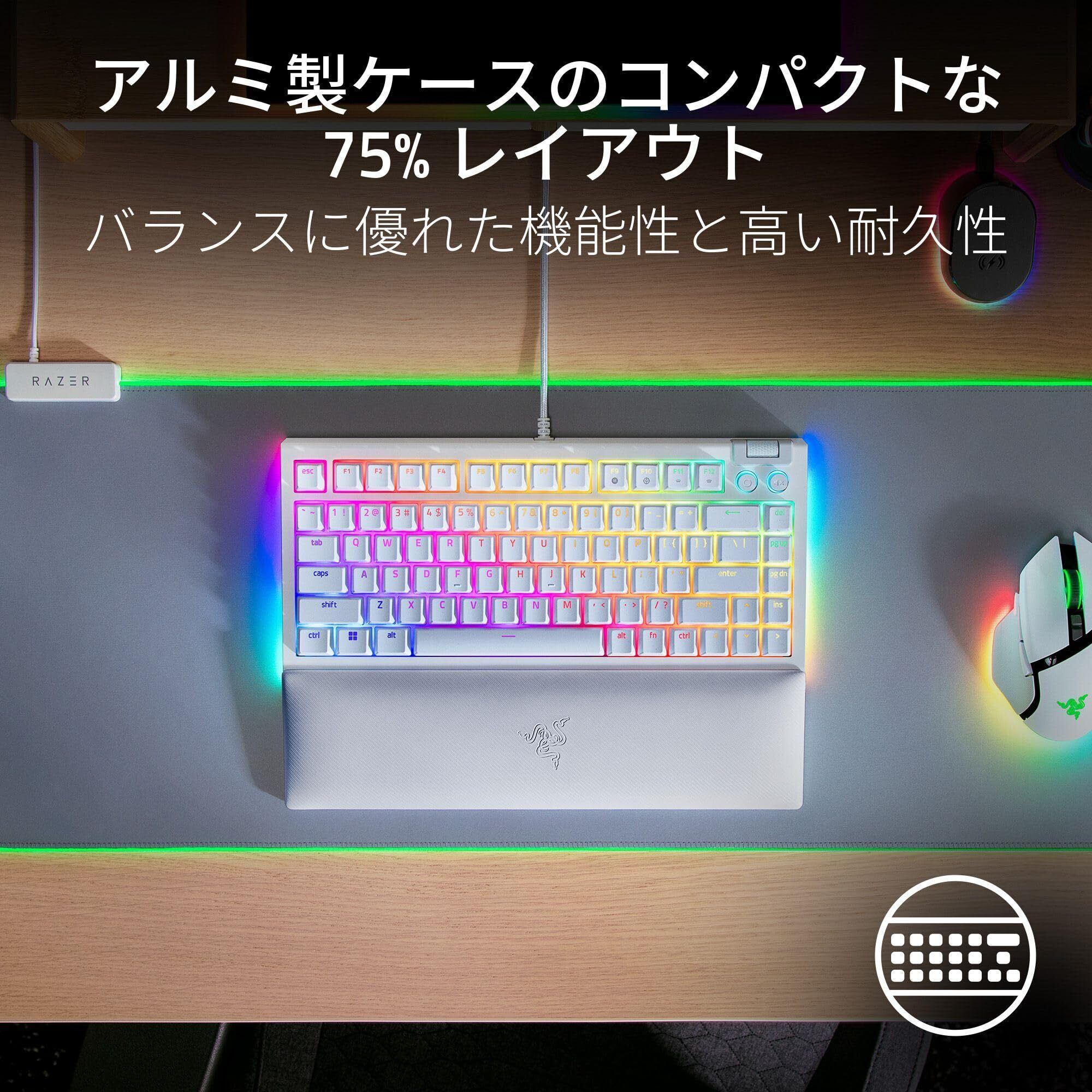 Razer レイザー BlackWidow V4 75% JP White Edition ホットスワップ対応でキースイッチを交換し望み通りのキー感触にカスタマイズ可能なメカニカルキーボード オレンジ タクタイル メカニカルスイッチ Chroma 2面アンダーグローとキー別ライティング リストレスト 日本語配列 ブラックウィドウ ブイフォー 75パーセント ホワイト 【日本正規代理店品】 | kki