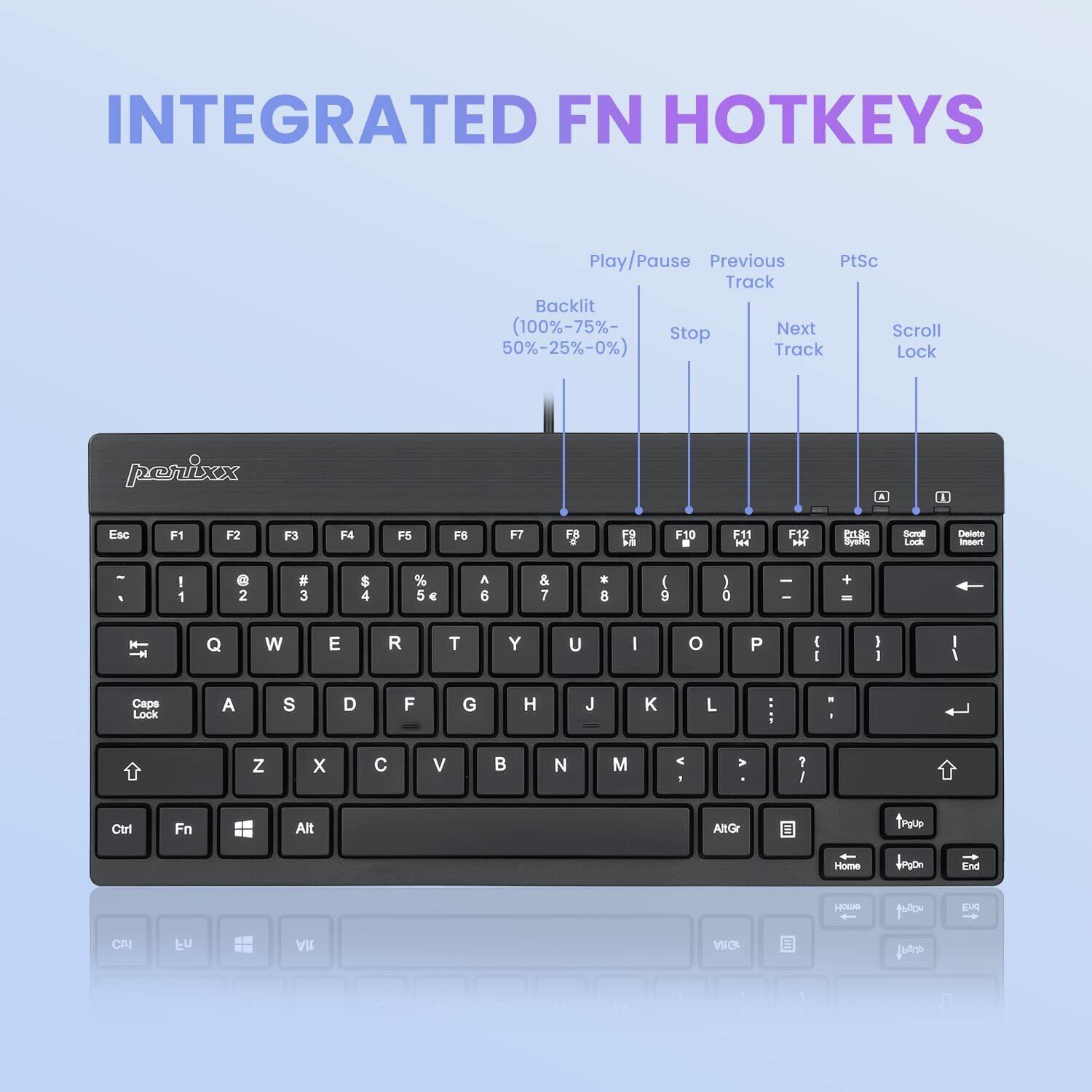 Perixx ペリックス PERIBOARD-326US バックライトキーボード 有線 コンパクト USB 小型 テンキーレス メンブレンキー 省スペース【正規品】(英語配列 バックライト) | kki