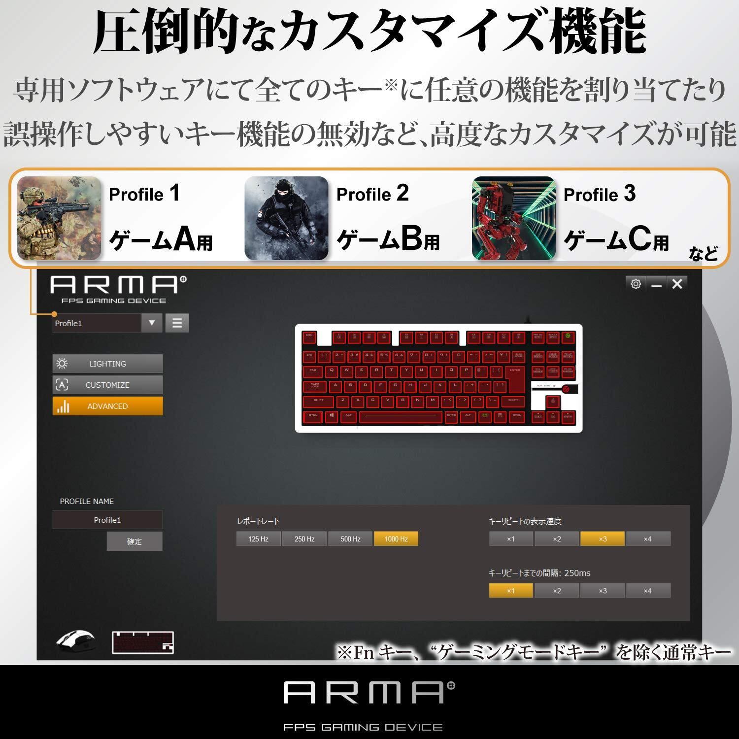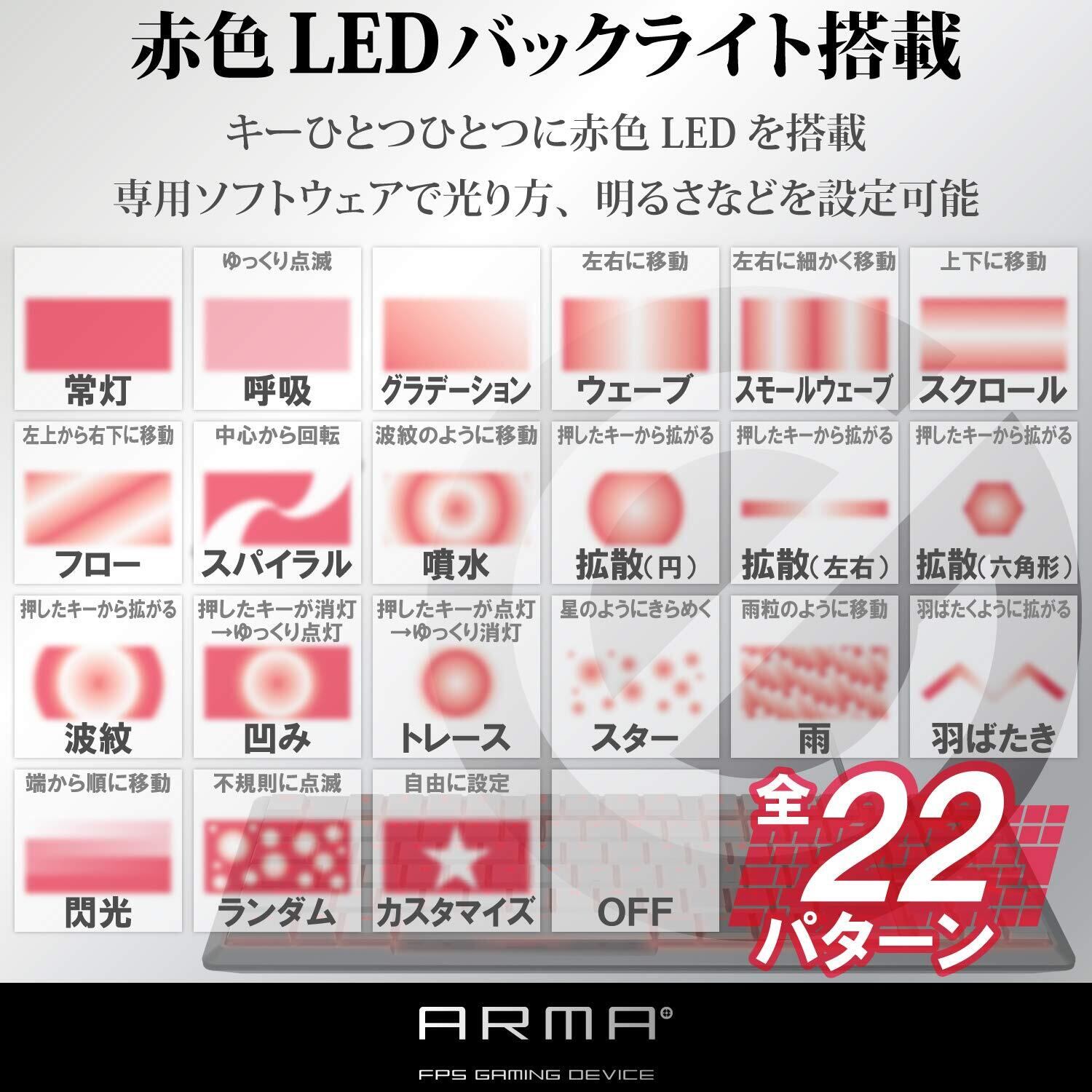 エレコム USB-A ゲーミングキーボード 【ARMA】 メカニカル 独自の薄型設計 コンパクト5000万回耐久スイッチ 日本語配列 LED搭載 ブラック TK-ARMA30BK