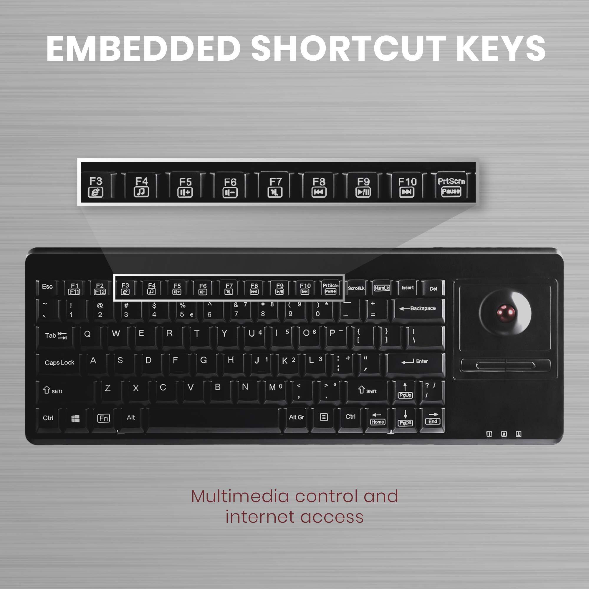 Perixx ペリックス PERIBOARD-514 キーボード トラックボール搭載 有線 19インチラック対応 英語配列キーボード (USBハブ2個付き)