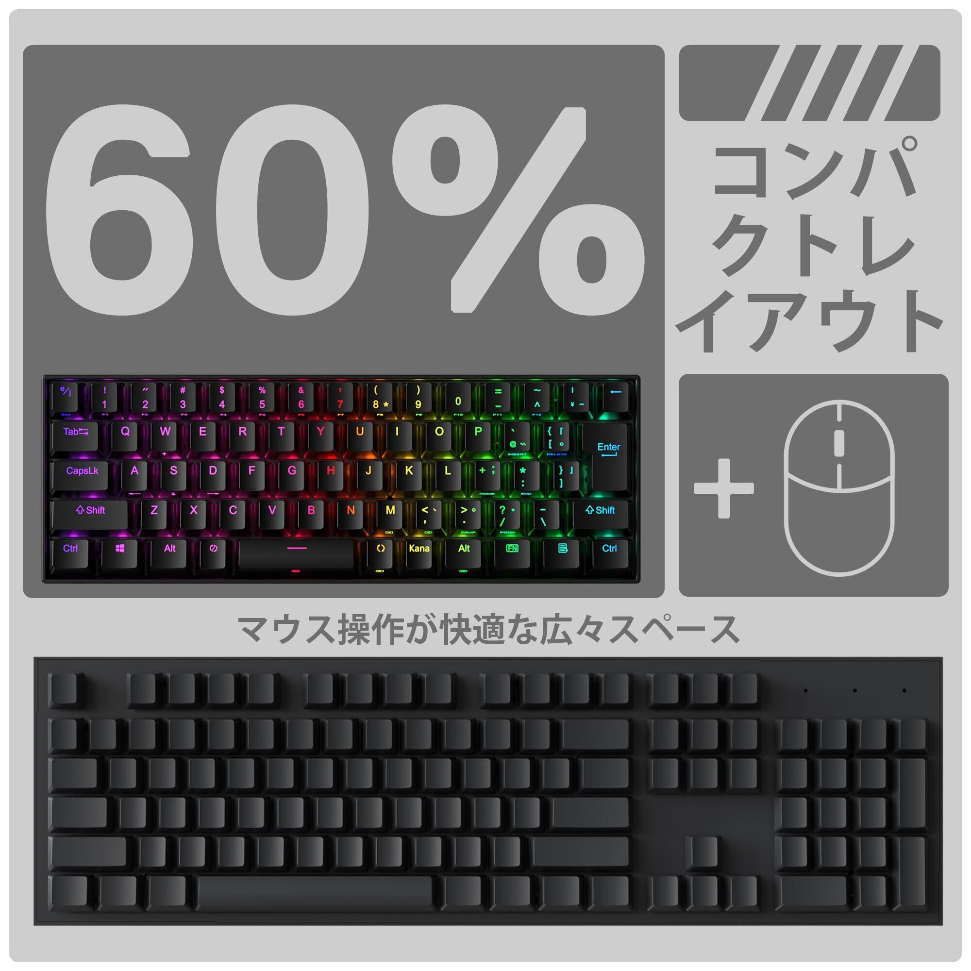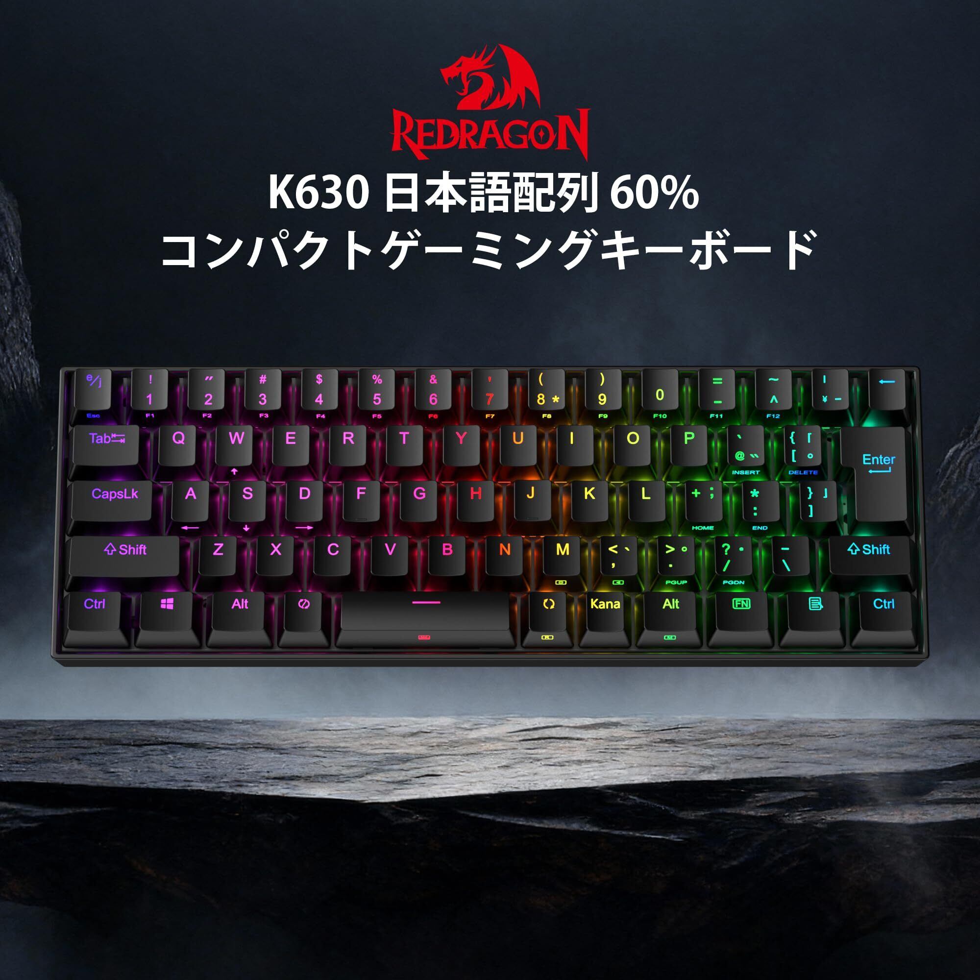 Redragon K630 60% 有線 RGB ゲーミングキーボード、61キー コンパクトメカニカルキーボード、シルバースイッチ、プロドライバーサポート、ブラック