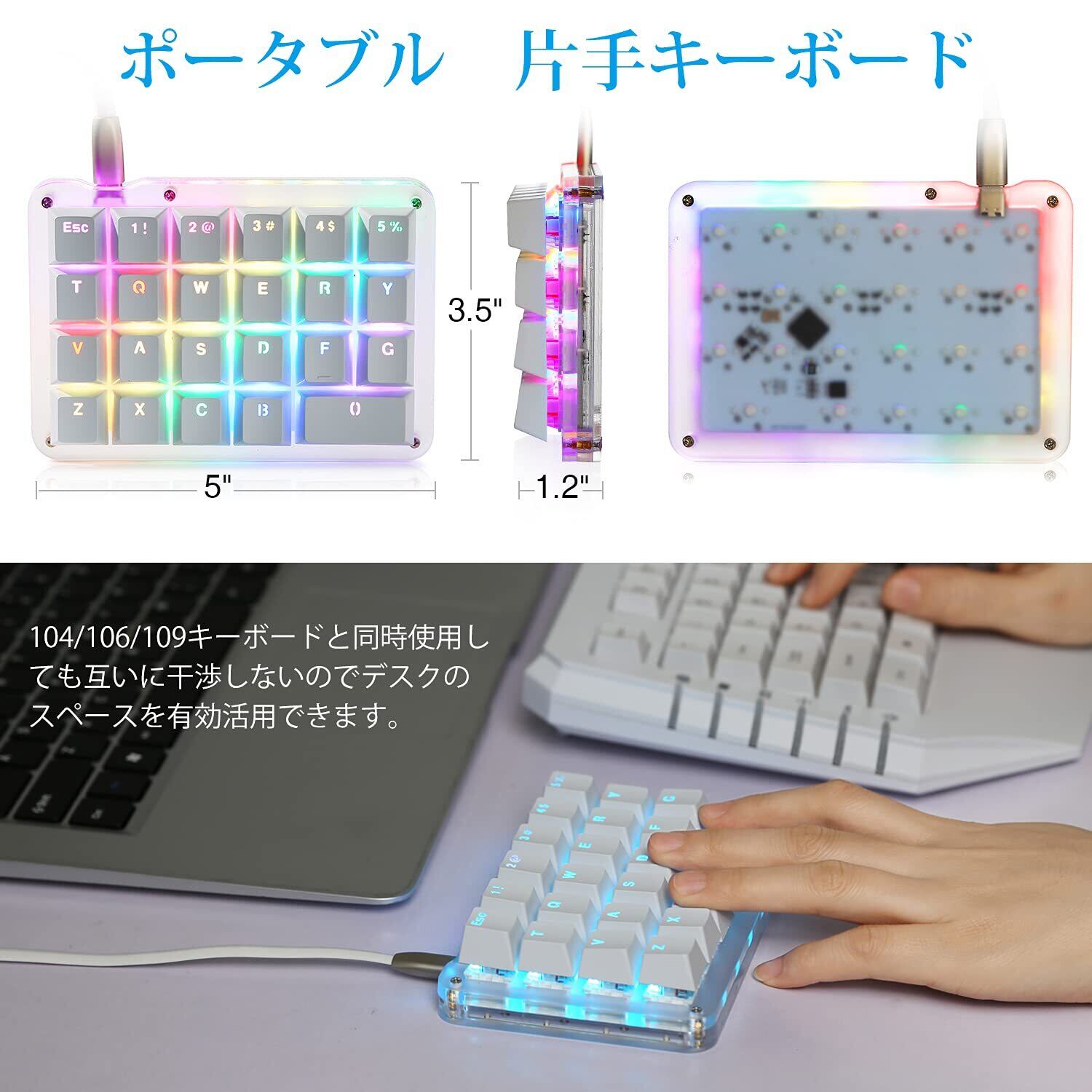 Koolertron 片手キーボード 左手デバイス マクロゲーミングキーボード バックライト カスタマイズ可能 左手デバイス 23キーフルプログラマブル Type-C有線 ポータブル イラストレーション&動画編集&絵描き適用 (白 RGB光 赤軸) | kki