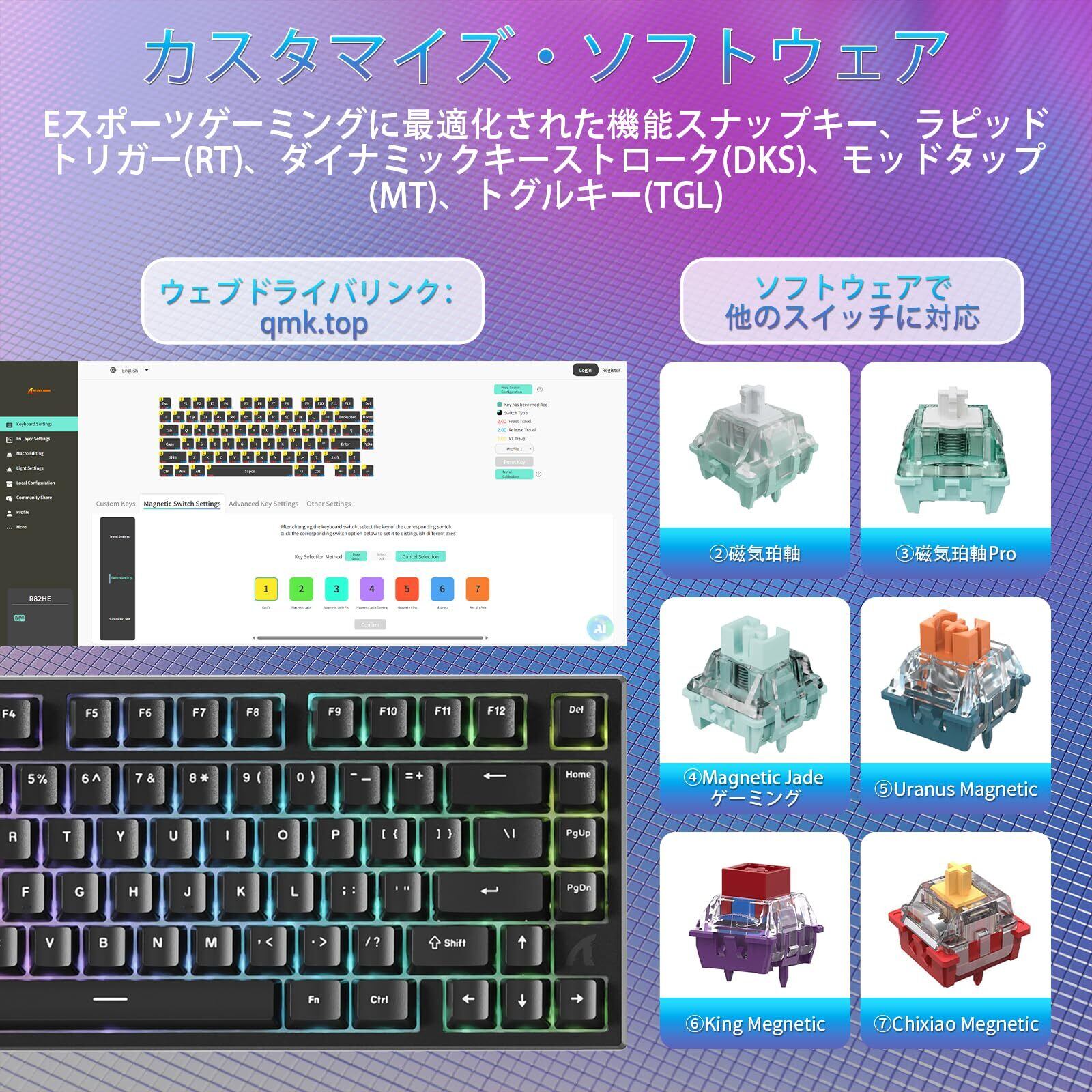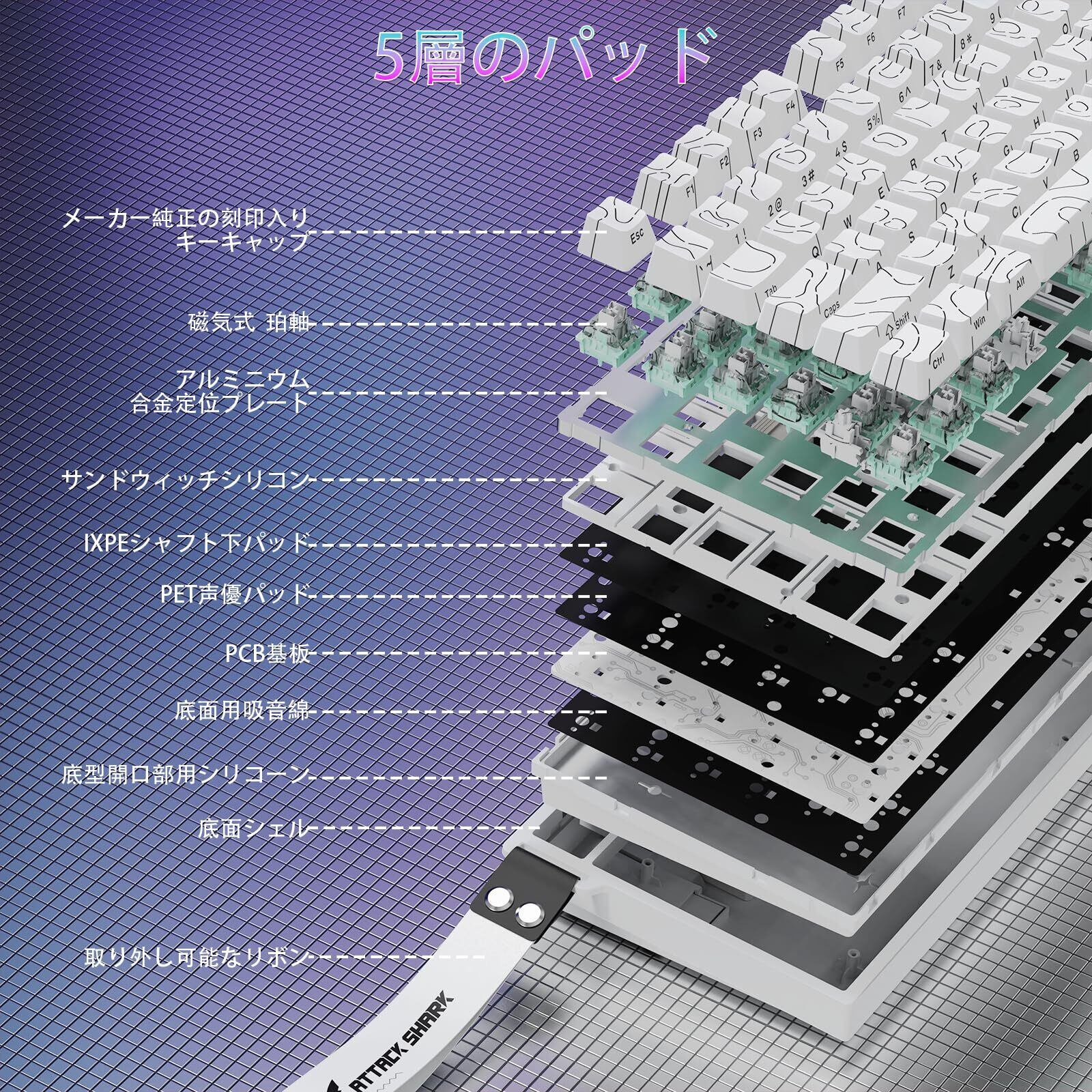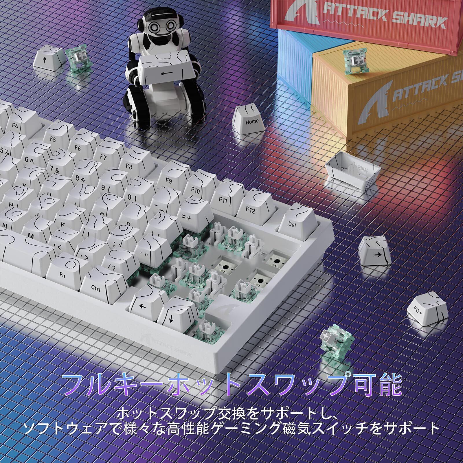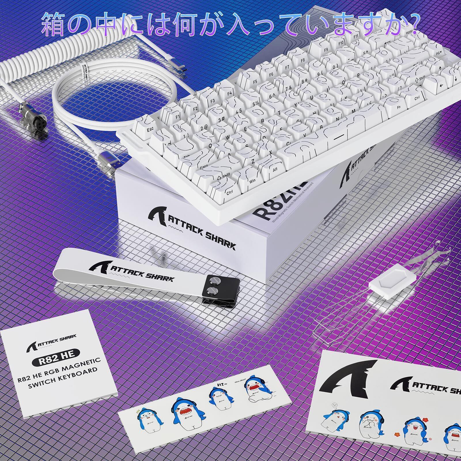 ATTACK SHARK R82HE ゲーミングキーボード ラピッドトリガーメカニカル有線75% コンパクトRT0.005mm 8000hz RGB バックライトUSB 磁気スイッチキーボード 80キー 0.08msディレイ ダブル PBTキーキャップ デッドゾーン調整機能 DKS FPS ホットスワップ可能Windows/Mac応 英語配列 (コンターホワイト) | kki