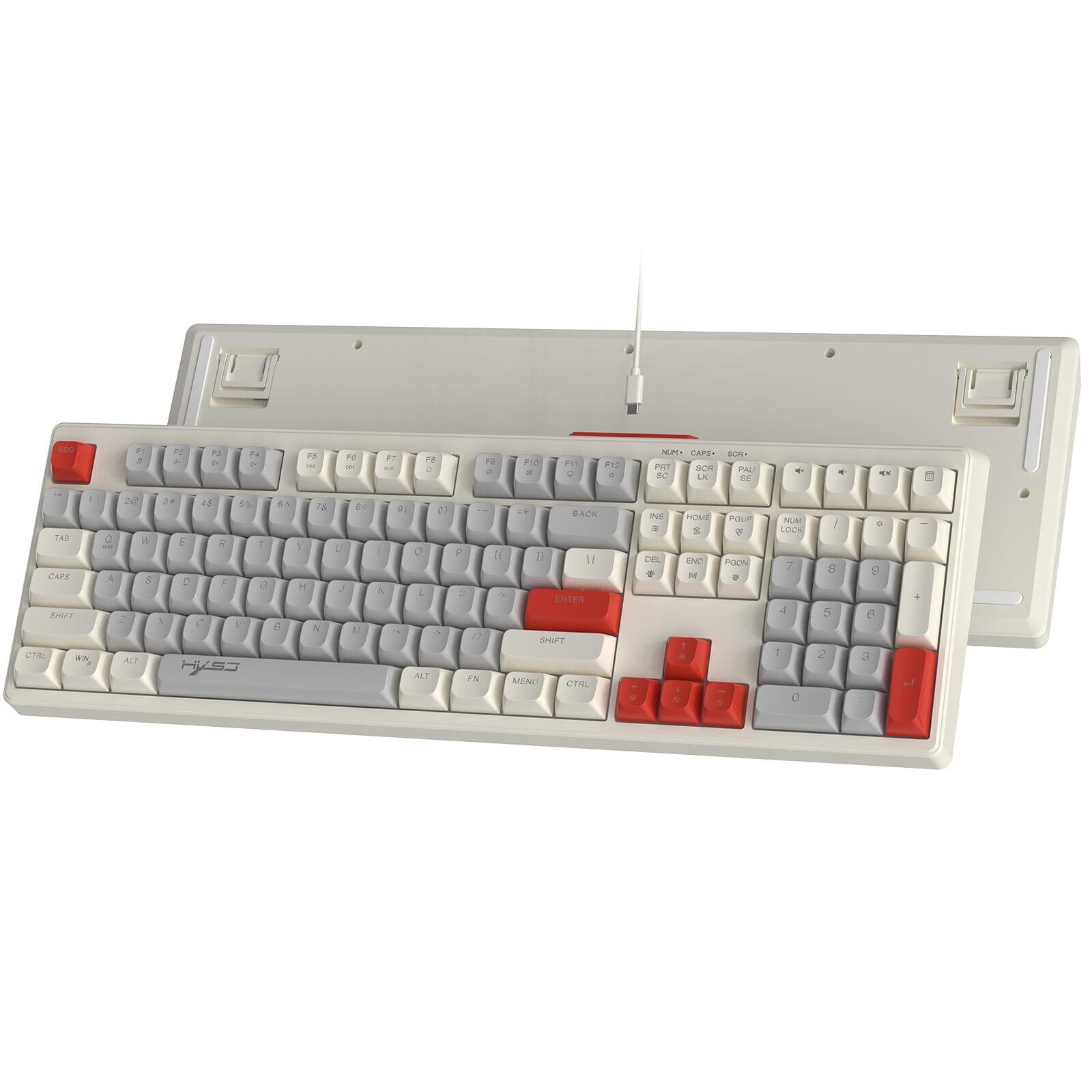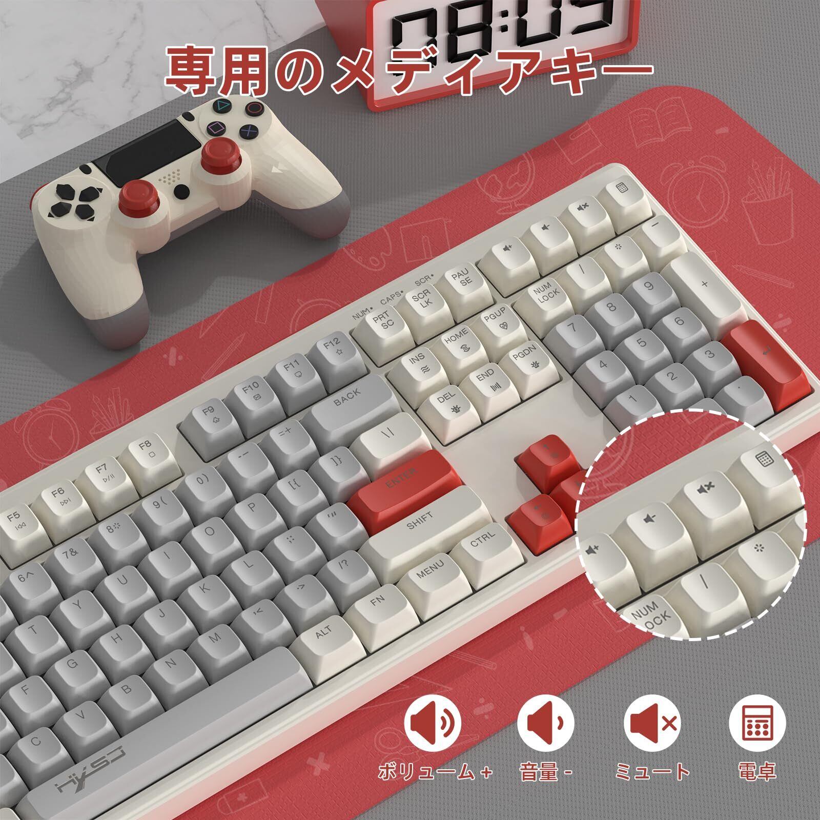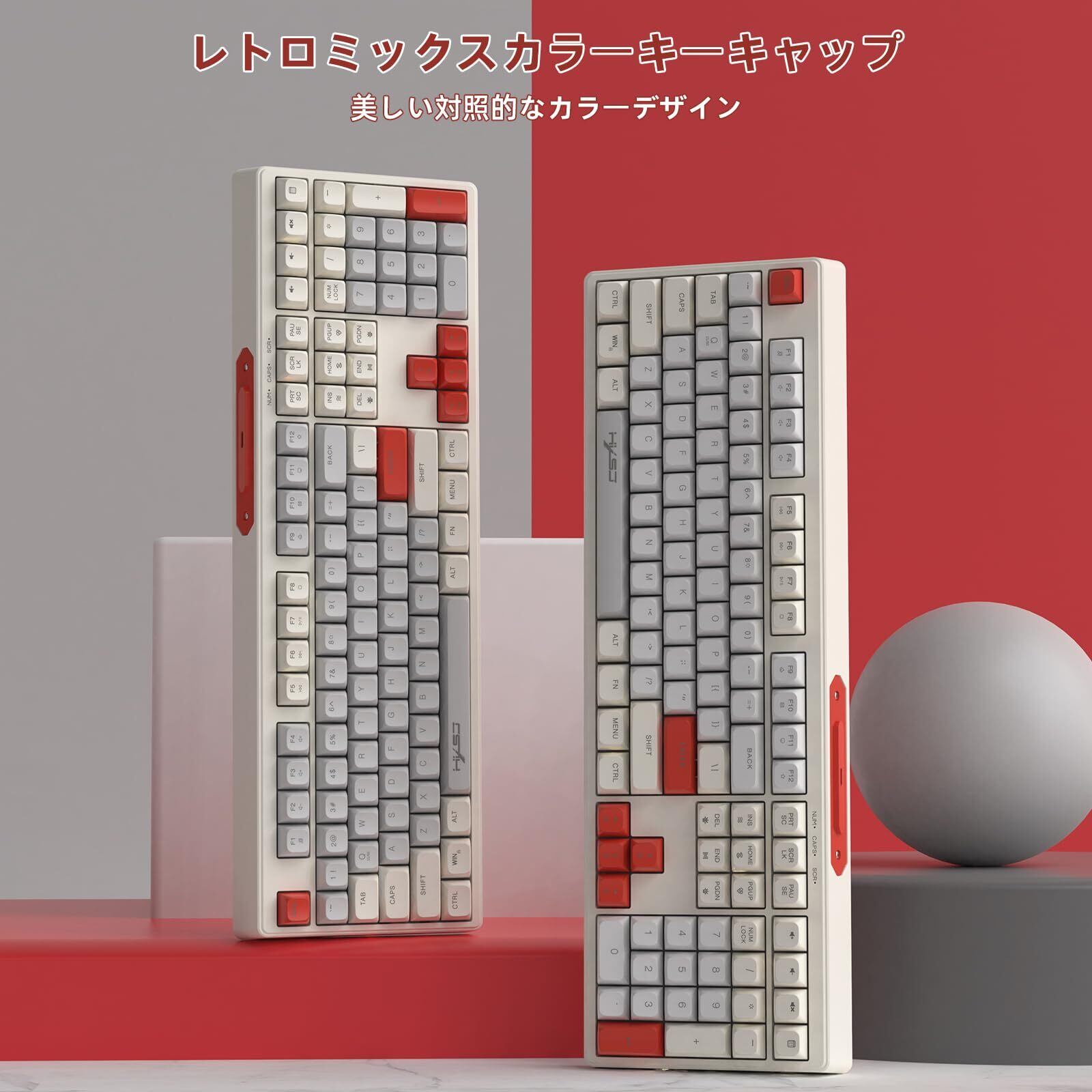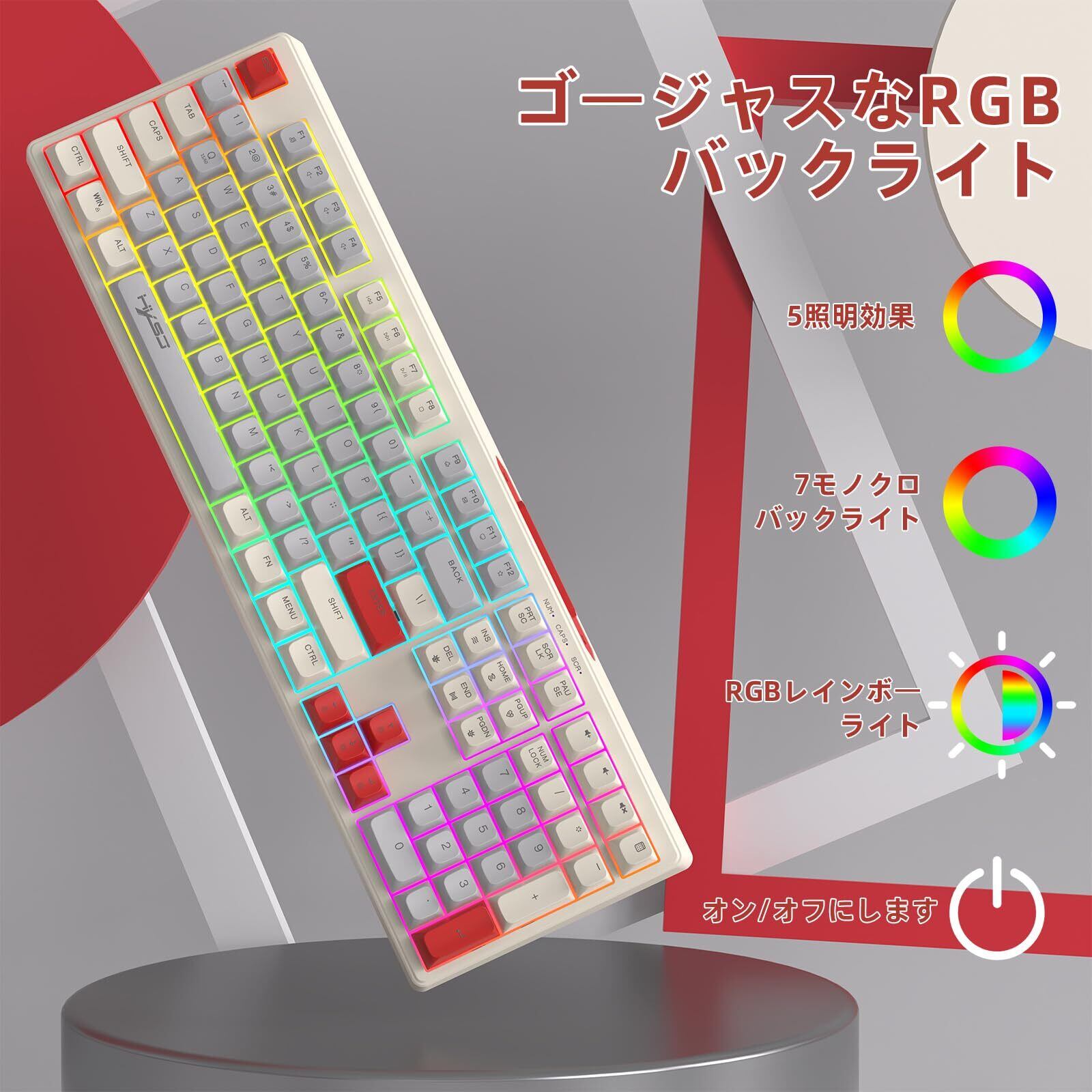 MAMBASNAKE 有線 108 キー フルサイズ RGB レインボー バックライト付きカラー ゲーミング メンブレン キーボード MAC PC ゲームやタイピングに最適 ボールキーキャップ LED 人気キーボード(ホワイトーグレーレッド) | kki