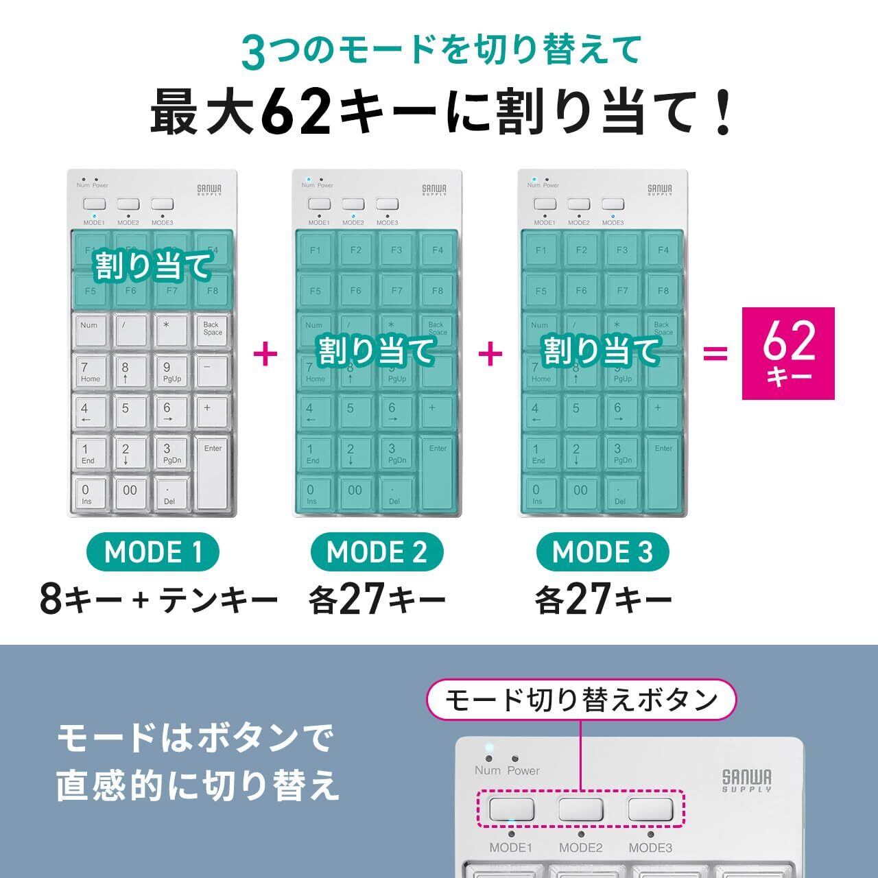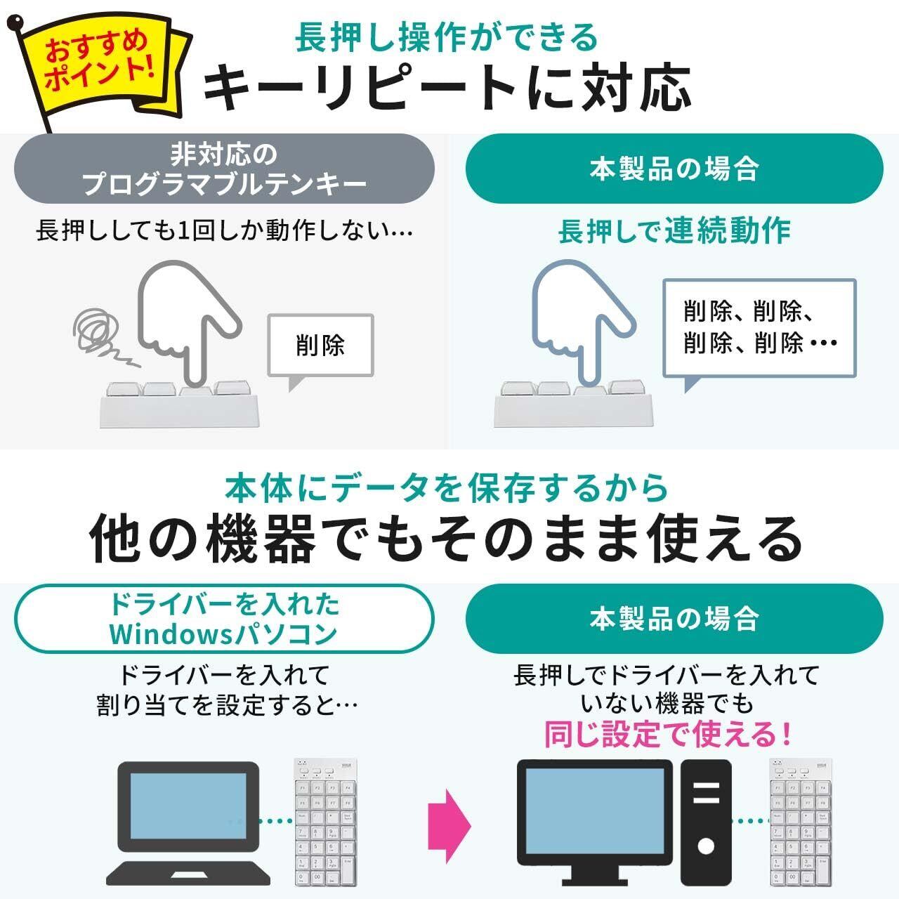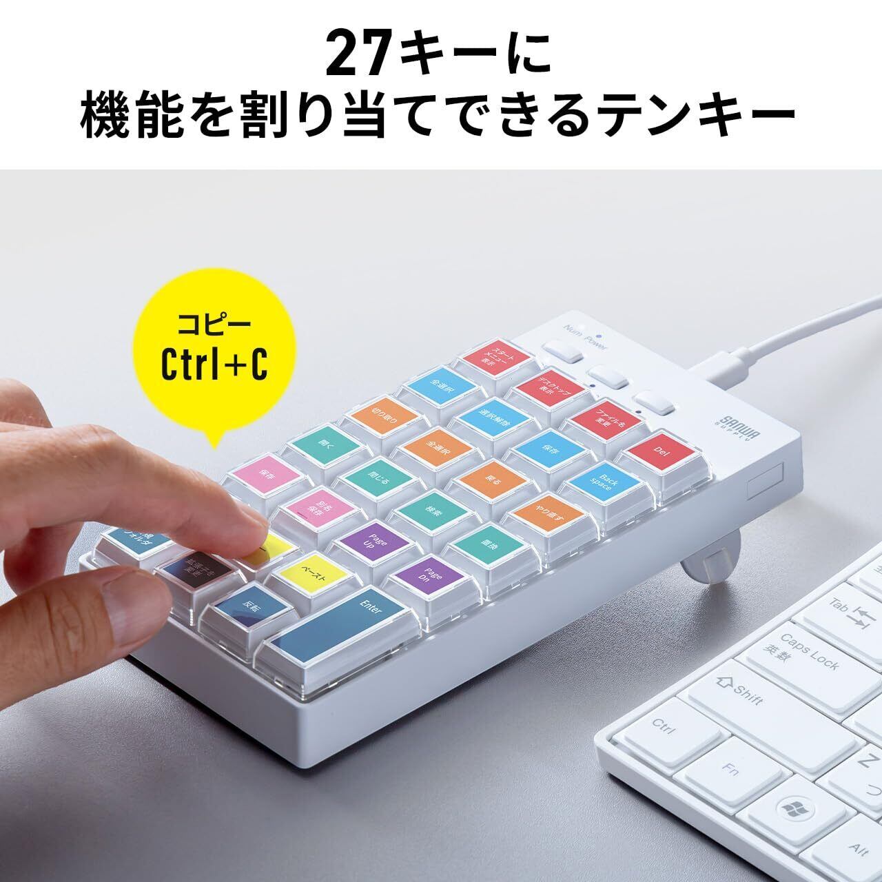 サンワダイレクト プログラマブルテンキー マクロキーボード 割り当て機能 USB-A 有線 27キー Windows専用 400-NT009