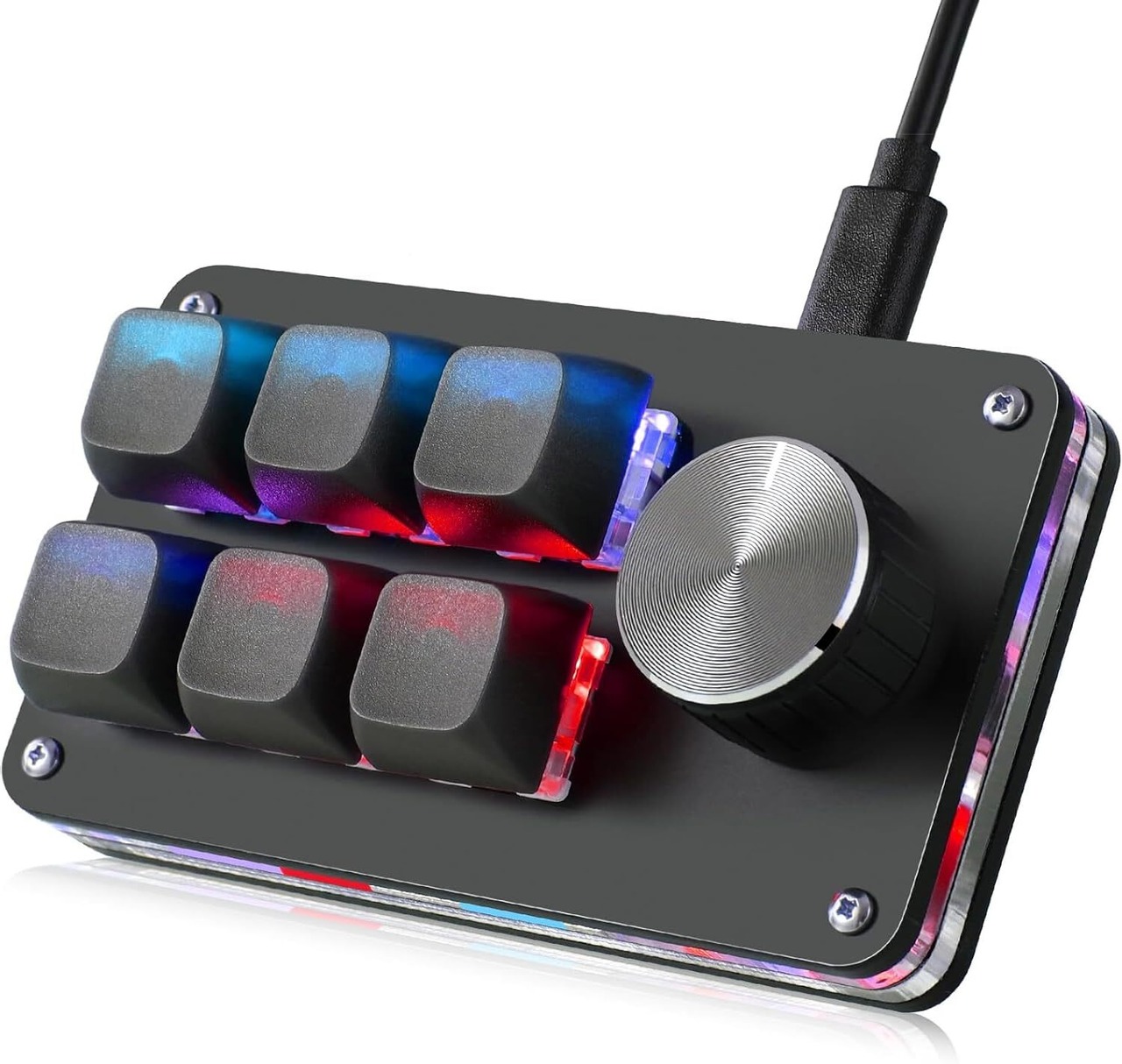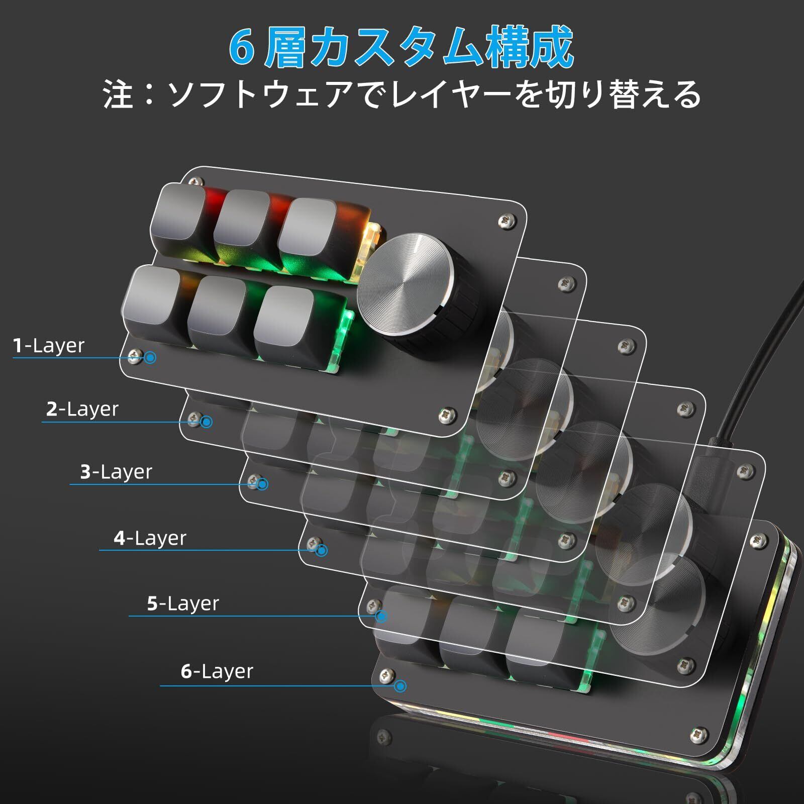 Koolertron 左手デバイス プログラム可能 ノブ付き メカニカルゲーミングキーボード マクロキーボード 片手キーパッド マクロ機能 有線 RGBバックライト付き 青軸 6層レイヤー Windows&Mac対応 ホットスワップ可能キーボード オフィス/動画編集/ゲームなどに対応 作業効率向上 (6キー 1ノブ) | kki