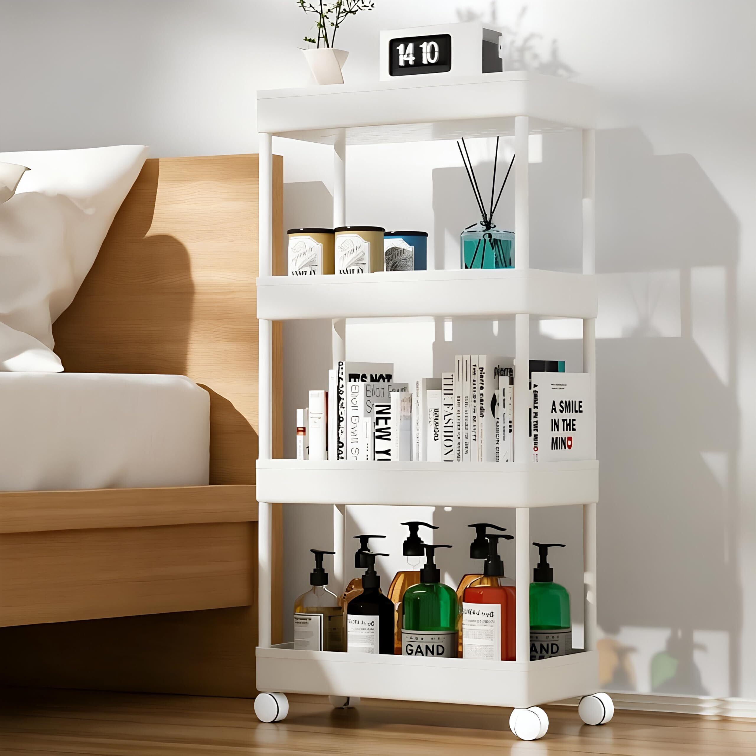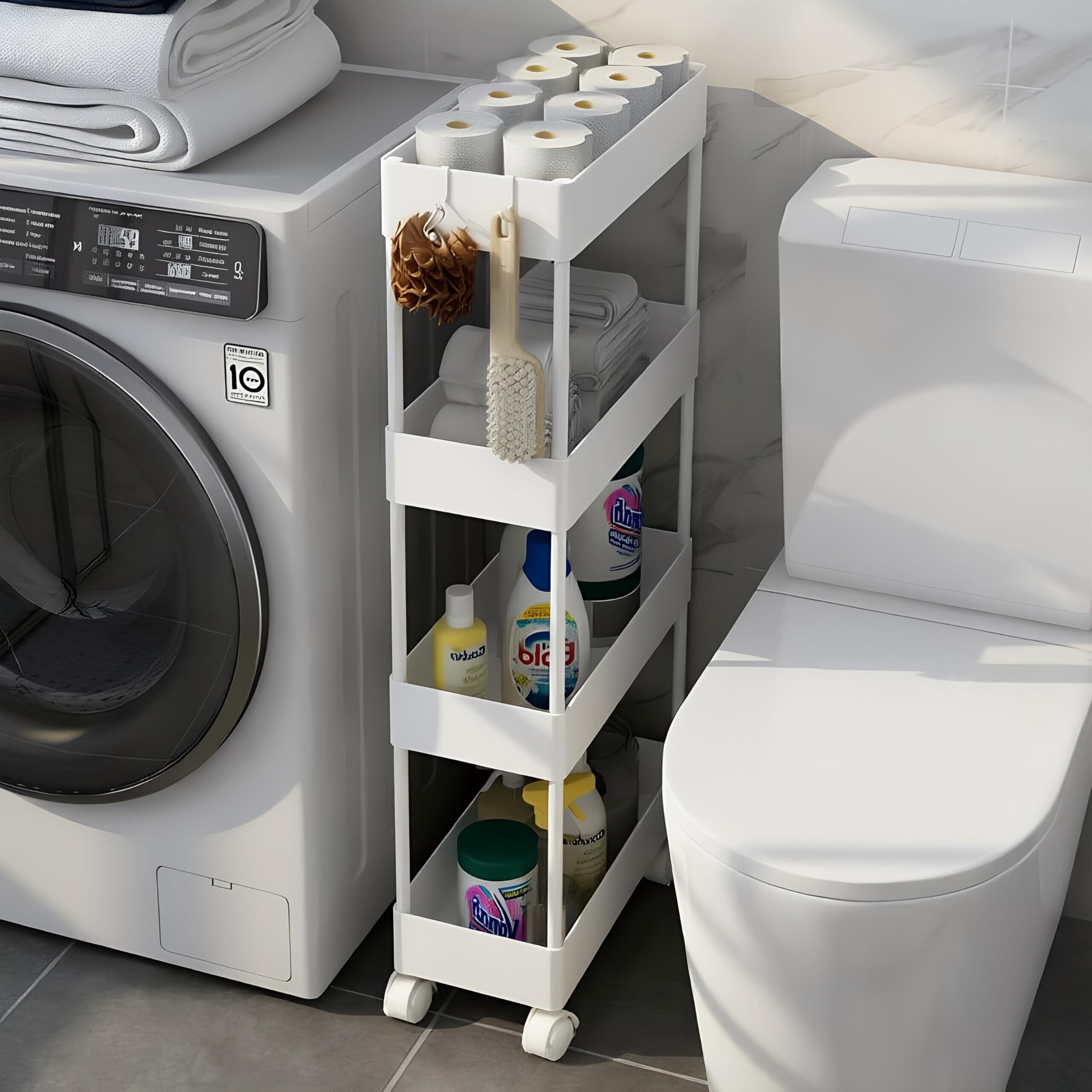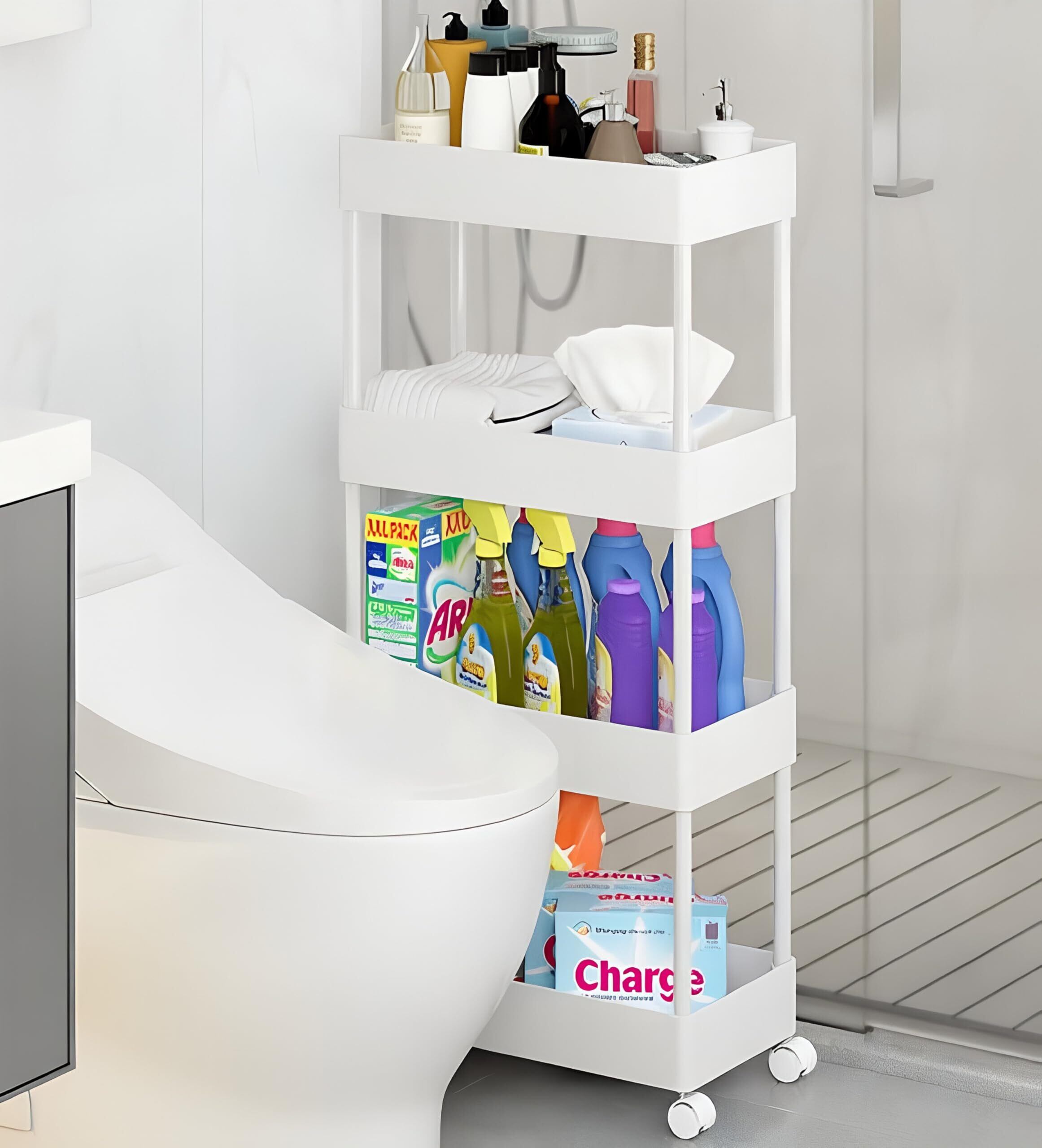 SVOHZAV キッチンワゴン 隙間収納 キャスター付き 13cm 18cm 22cm ペットボトルラック 冷蔵庫横 洗面所 収納 隙間ラック 3段 4段 スリムワゴン 細い棚 調味料棚 (18cm-[四段式] ホワイト) | kki