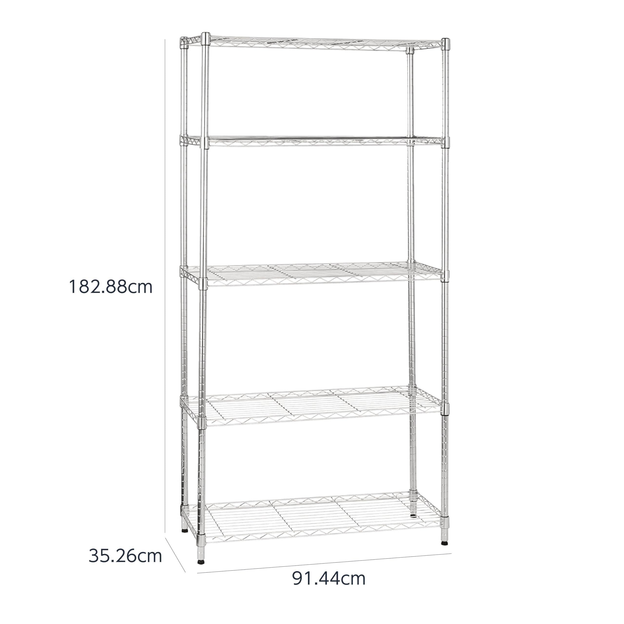 ベーシック 5段スチールラック 棚 メタルラック キッチンラック 耐荷重794kg 幅 91.4 ×奥行 35.5 ×高さ182.8cm クロム