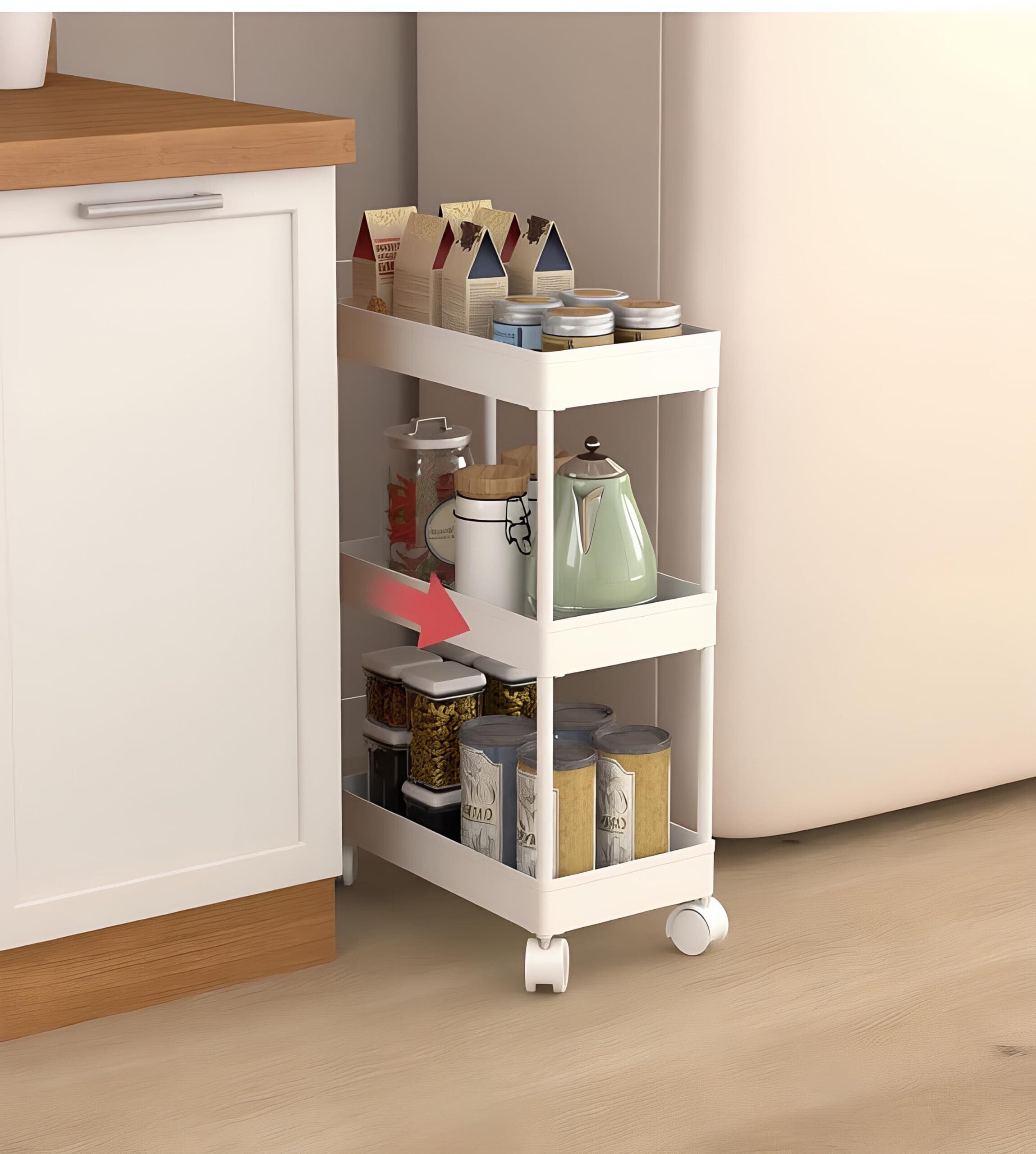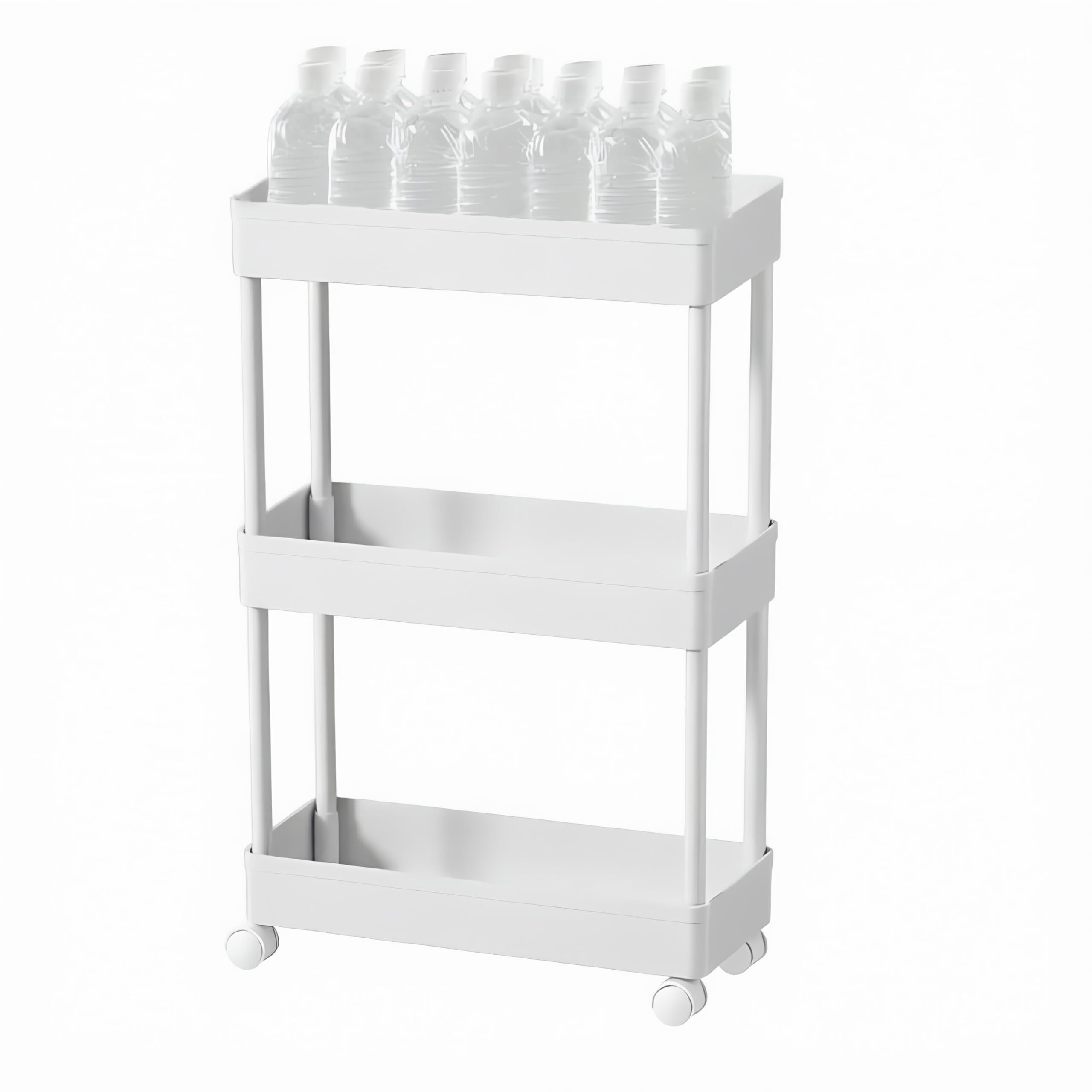 SVOHZAV キッチンワゴン 隙間収納 キャスター付き 13cm 18cm 22cm ペットボトルラック 冷蔵庫横 洗面所 収納 隙間ラック 3段 4段 スリムワゴン 細い棚 調味料棚 (13.5cm-[三段式], ホワイト) | kki