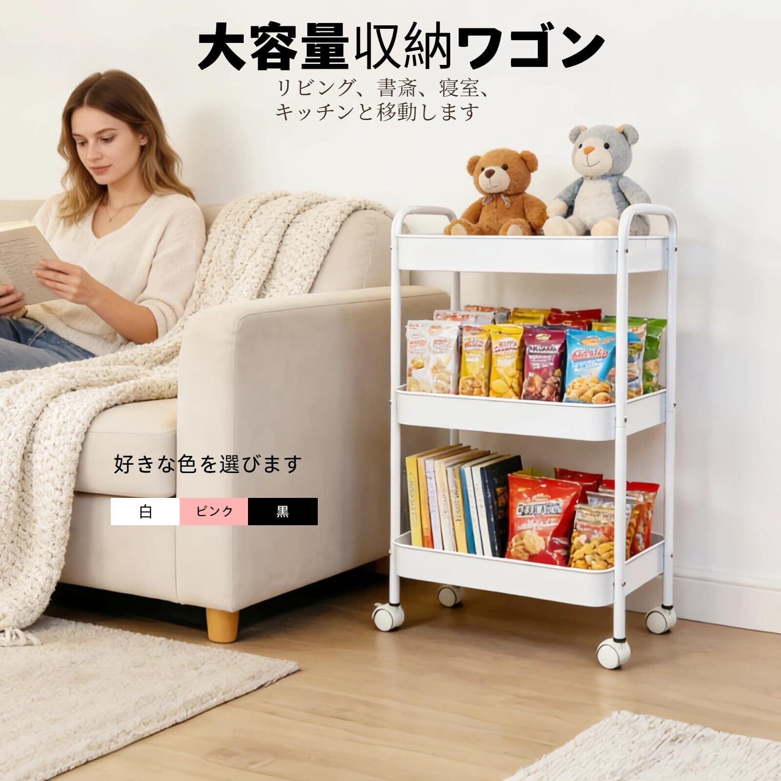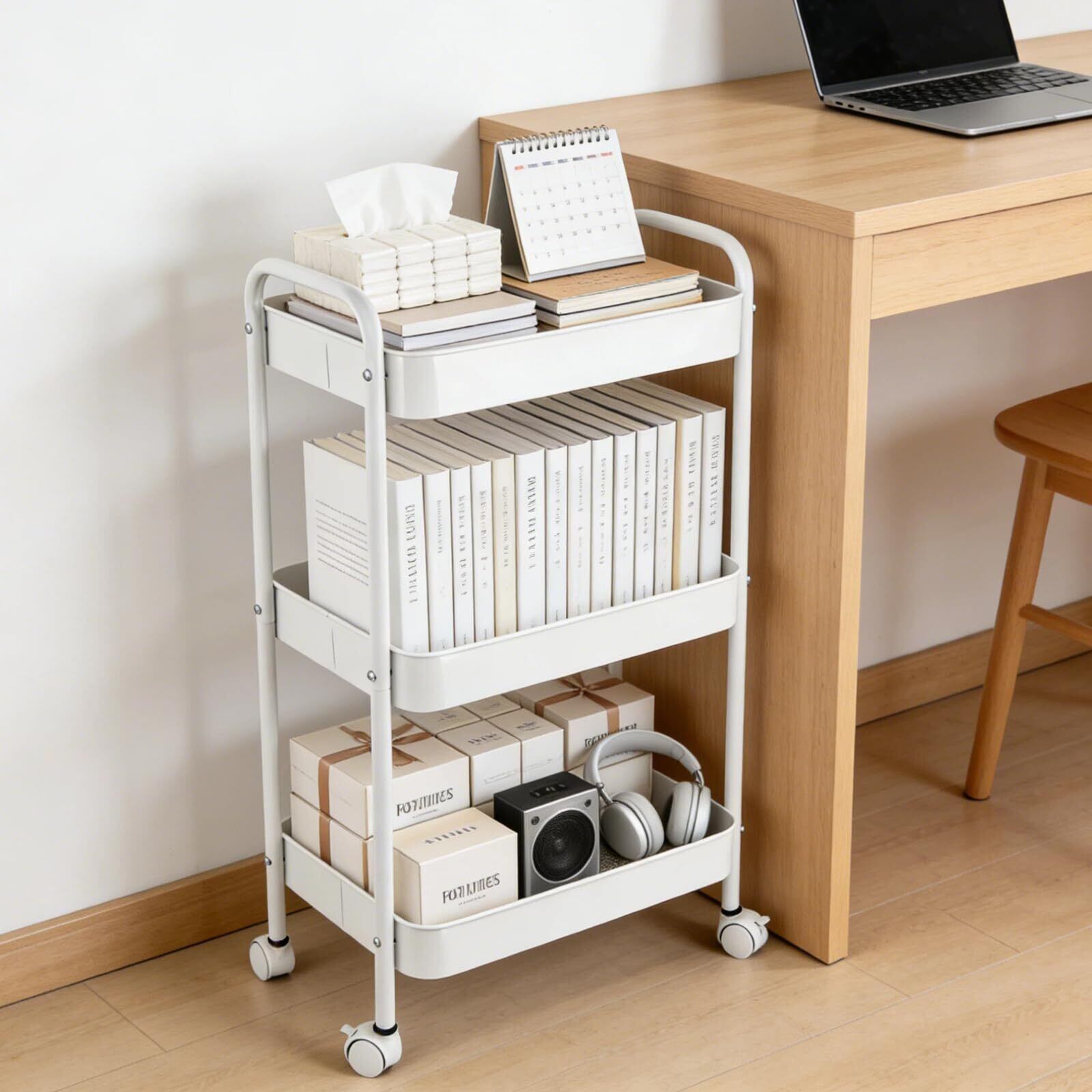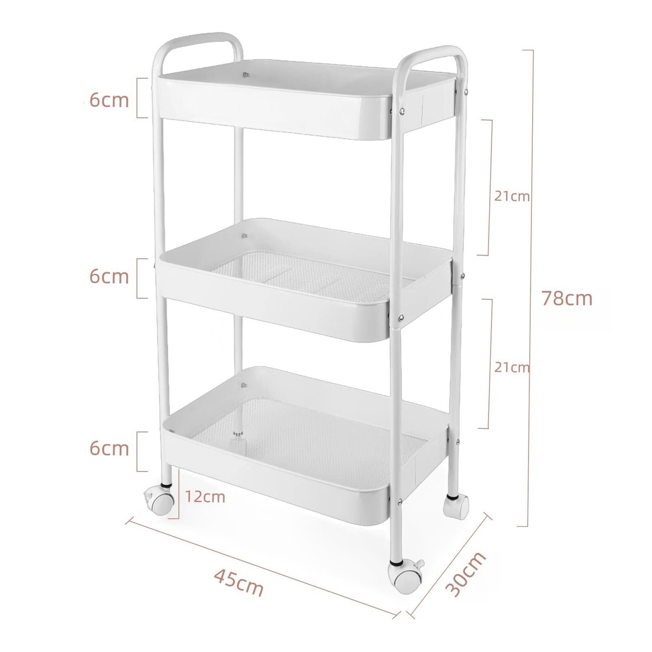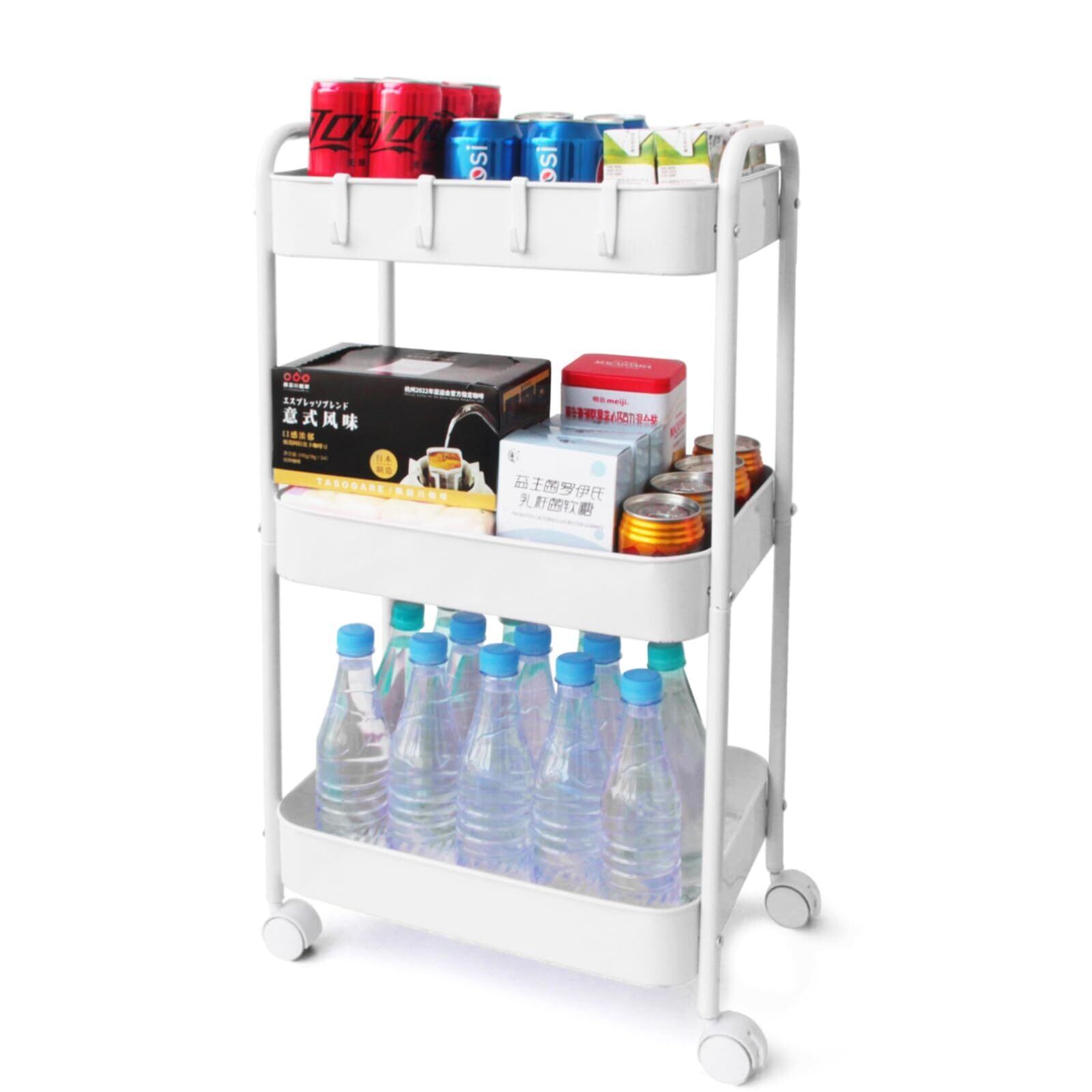 キッチンワゴン 3階建て、4つのサスペンション装置を備えた移動実用カートは、キッチン、寝室、オフィス、ランドリー、狭いスペース,白