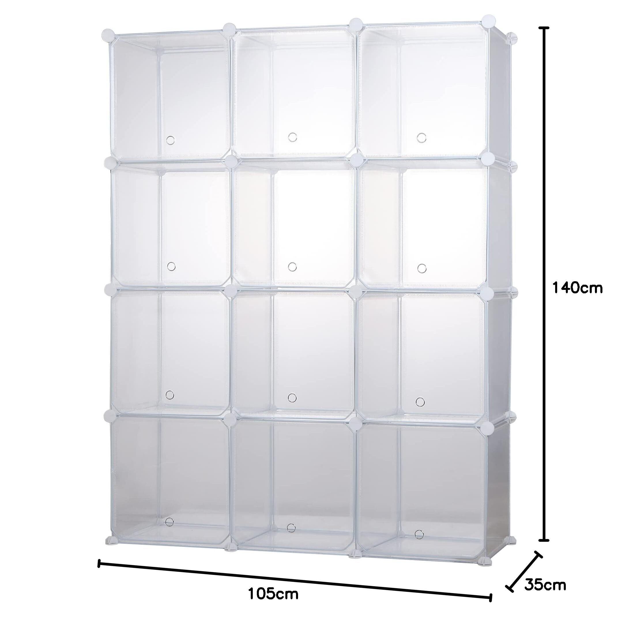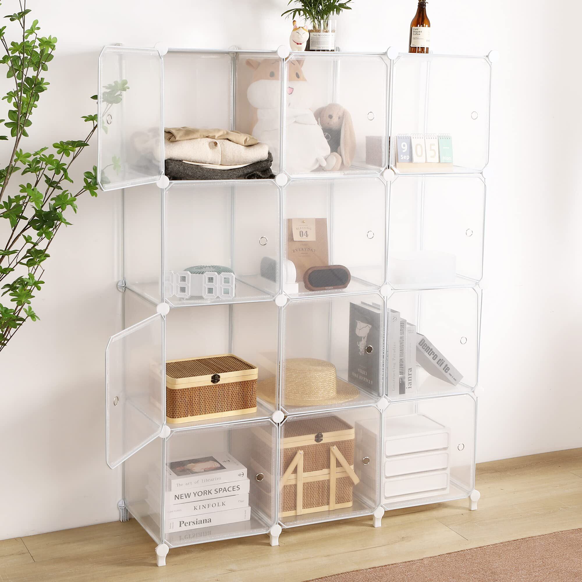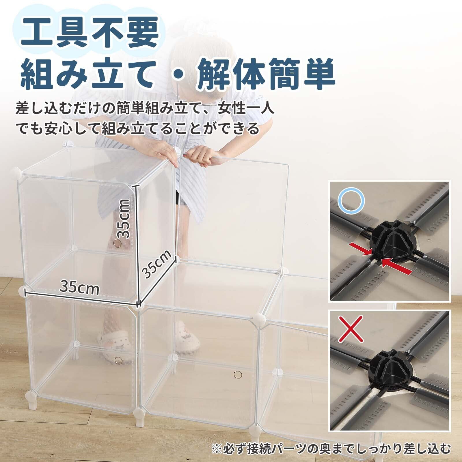 【省スペース防塵収納ラック】チチロバ(TITIROBA) 収納棚 扉付き 収納 ラック 棚 見せる 簡単組立 大容量 整理棚 洋服棚 収納ボックス クローゼット ワードローブ おしゃれ 省スペース 多用途 半透明 クリア ホワイト 12ボックス | kki