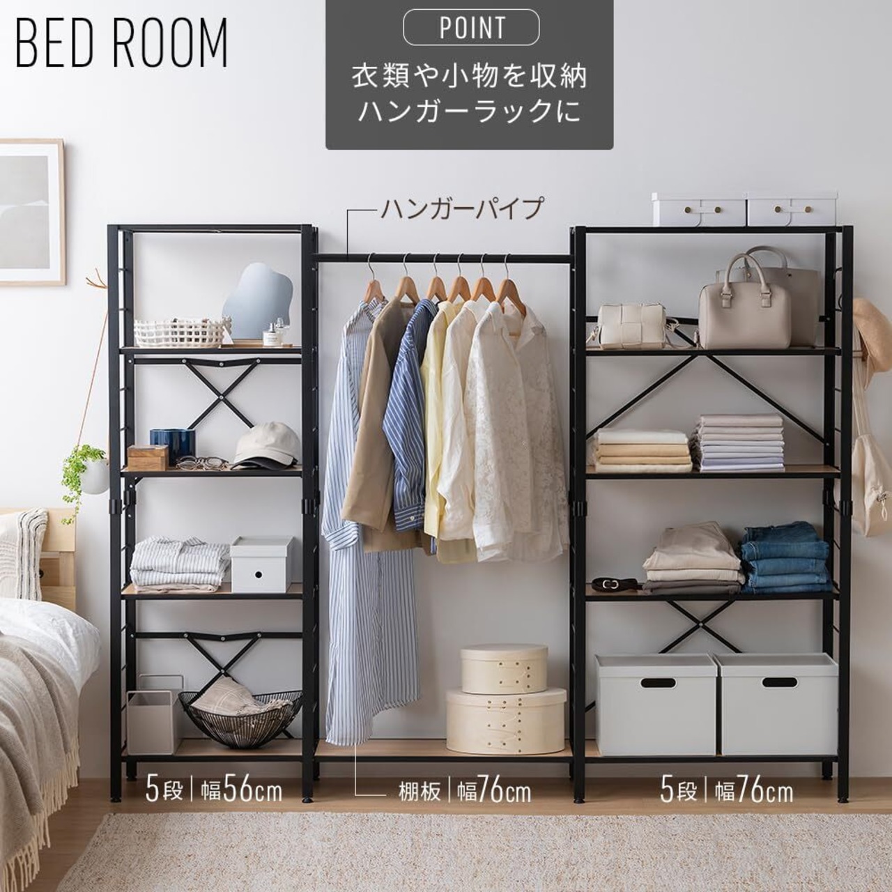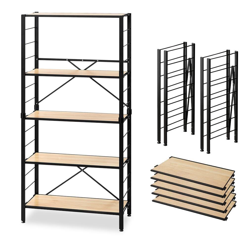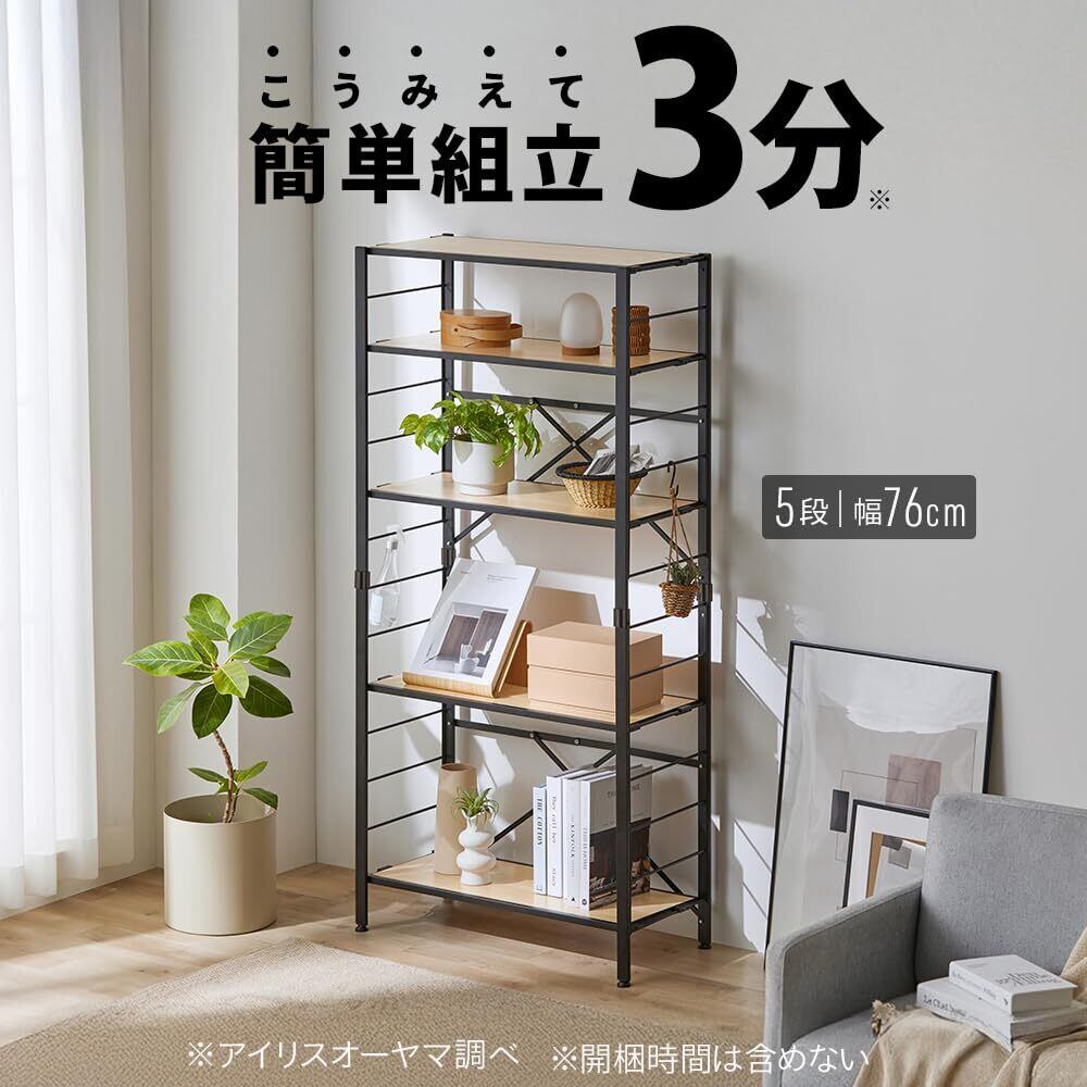 【広げるだけで組立簡単】アイリスオーヤマ スチールラック 棚板の連結で使い方は自由自在 連結 可動棚 オープンシェルフ ラック 幅:76cm 分解可能 5段 ナチュラルオーク KRSR-5 | kki