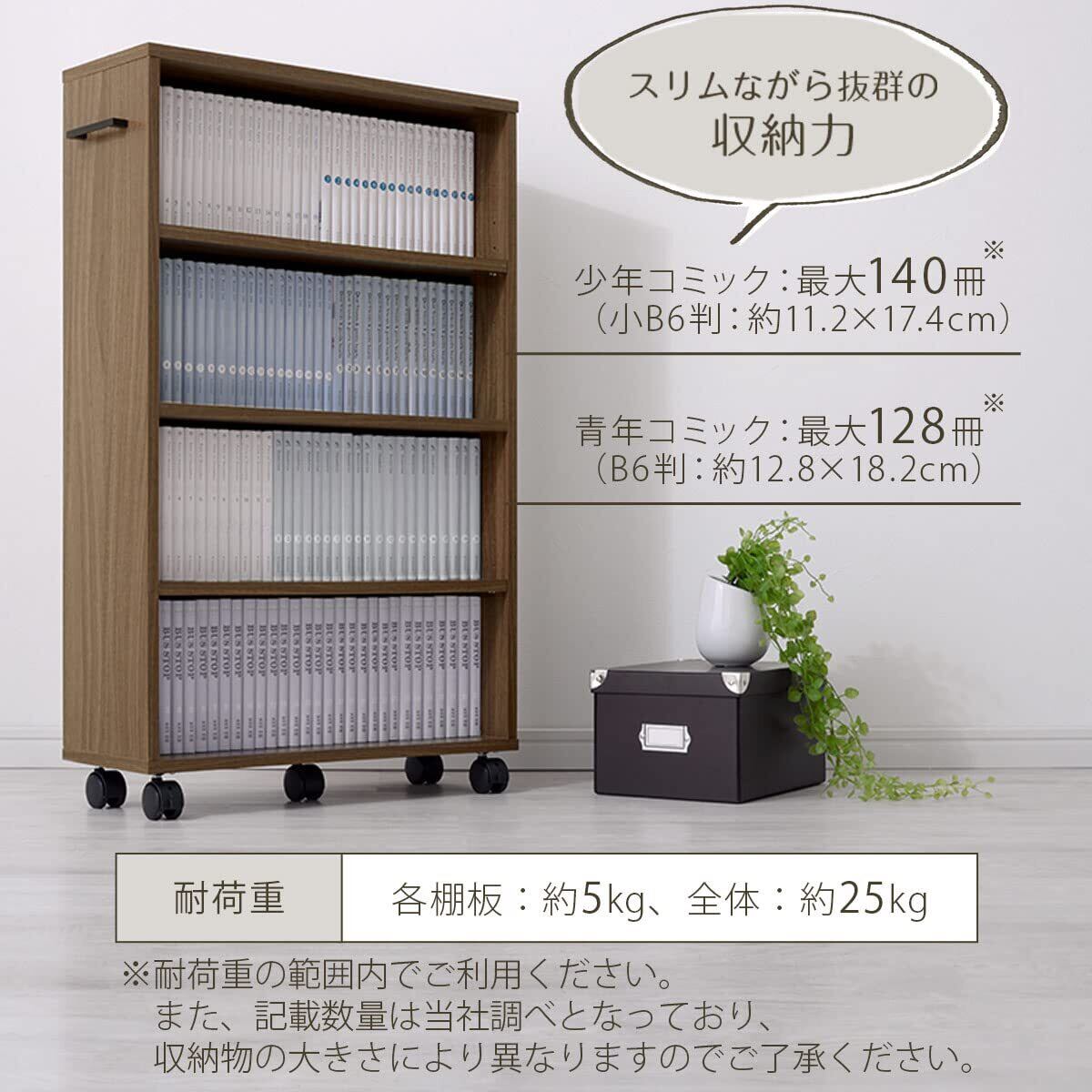 ぼん家具 本棚 キャスター付き 隙間収納 取っ手付き 収納カート 押し入れ収納 ワゴン 約幅20cm ウォールナット