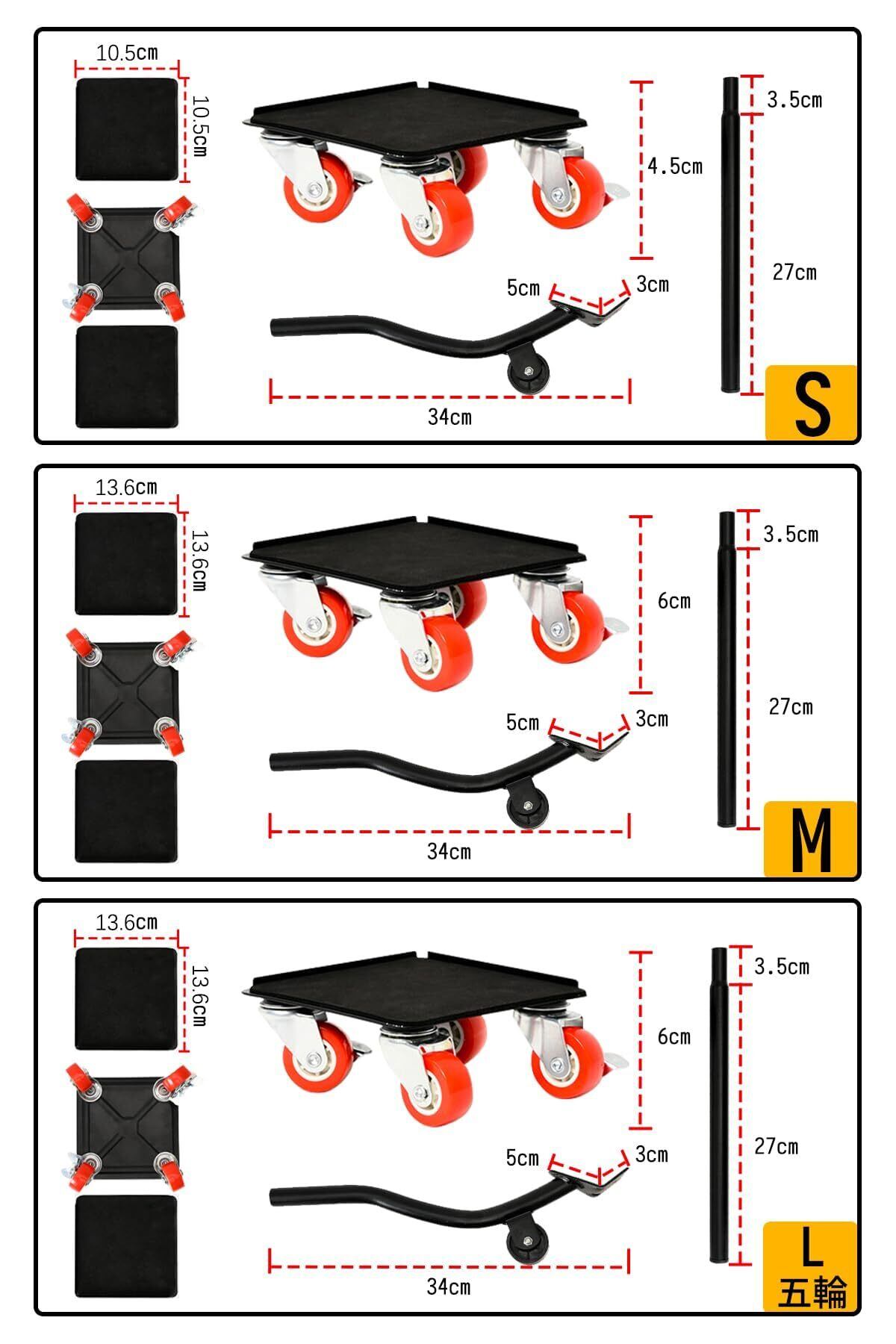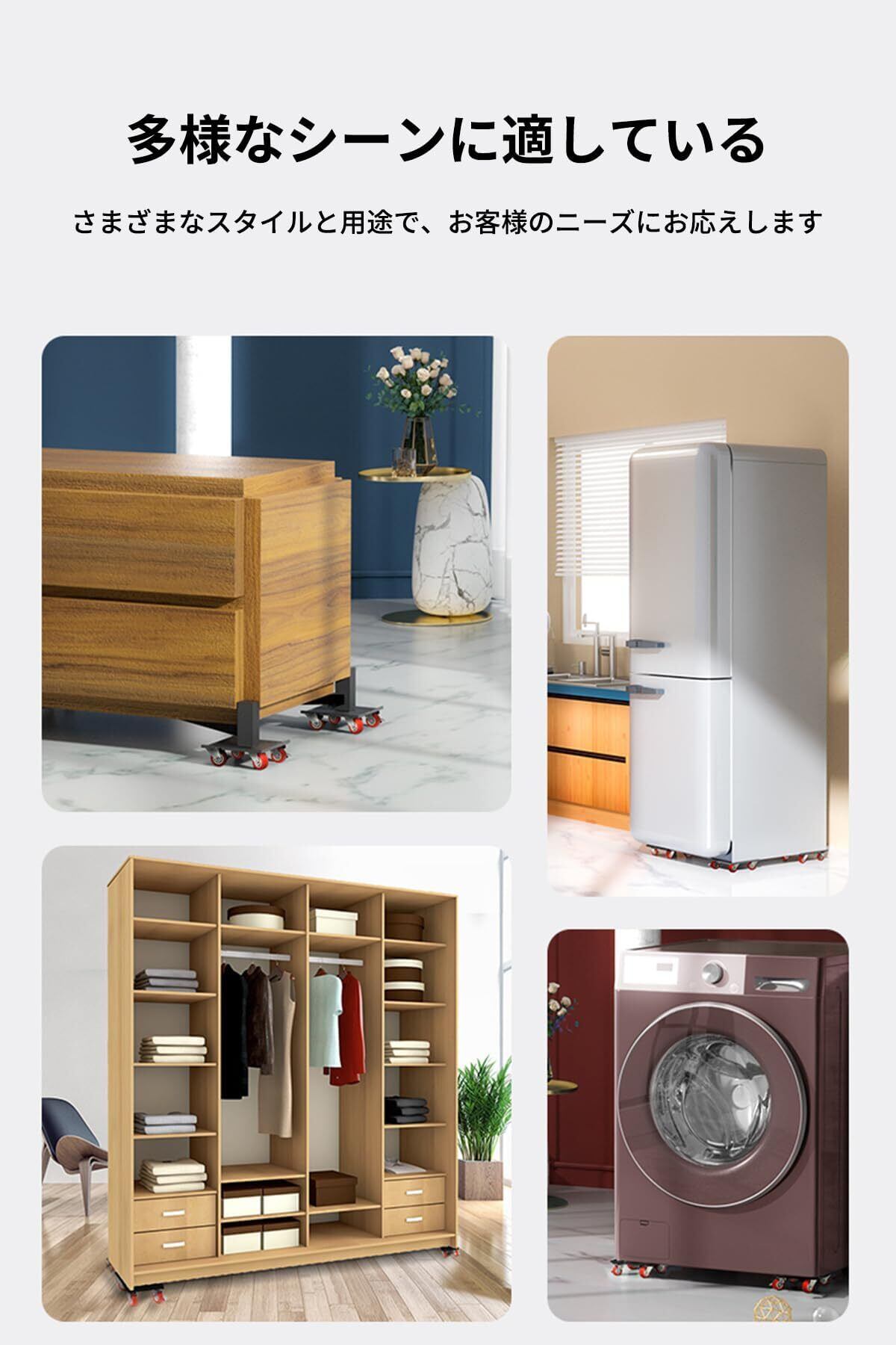 家具移動 移動キャリー キャスター 台車 360度回転 金属製 最大800KG 収納袋付き ブレーキ付き 耐震静音 脚付き家具対応 引越し 家具裏の掃除 模様替え (M)