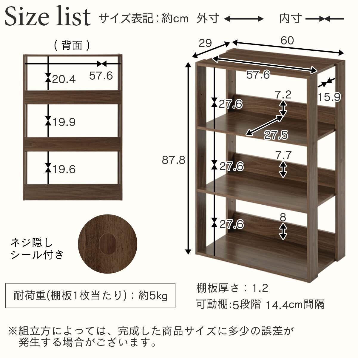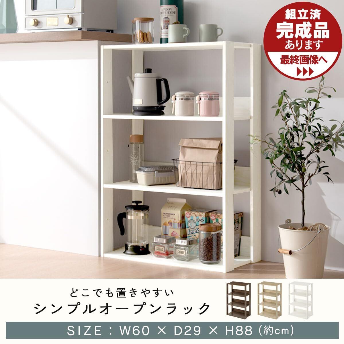 ぼん家具 オープンラック 収納棚 4段 木製 幅60cm ディスプレイ収納 棚 リビング収納 ウッドラック ホワイト