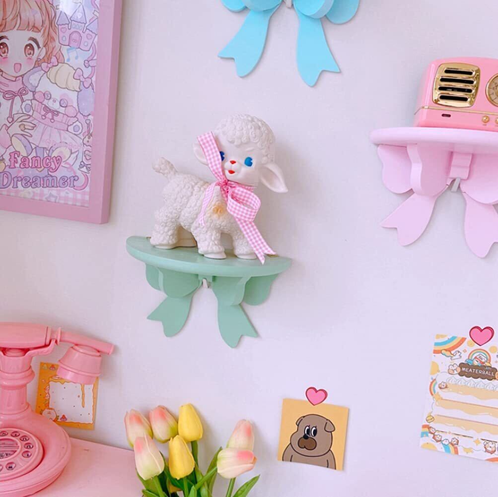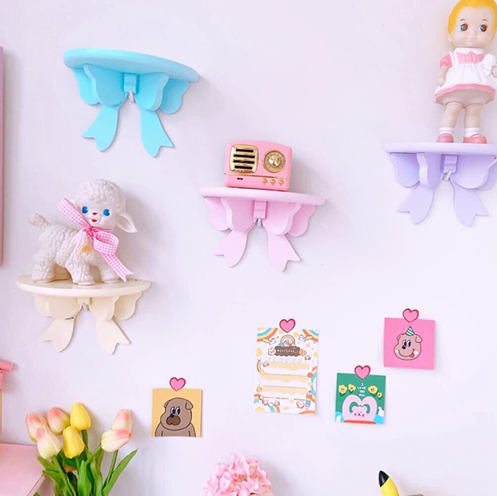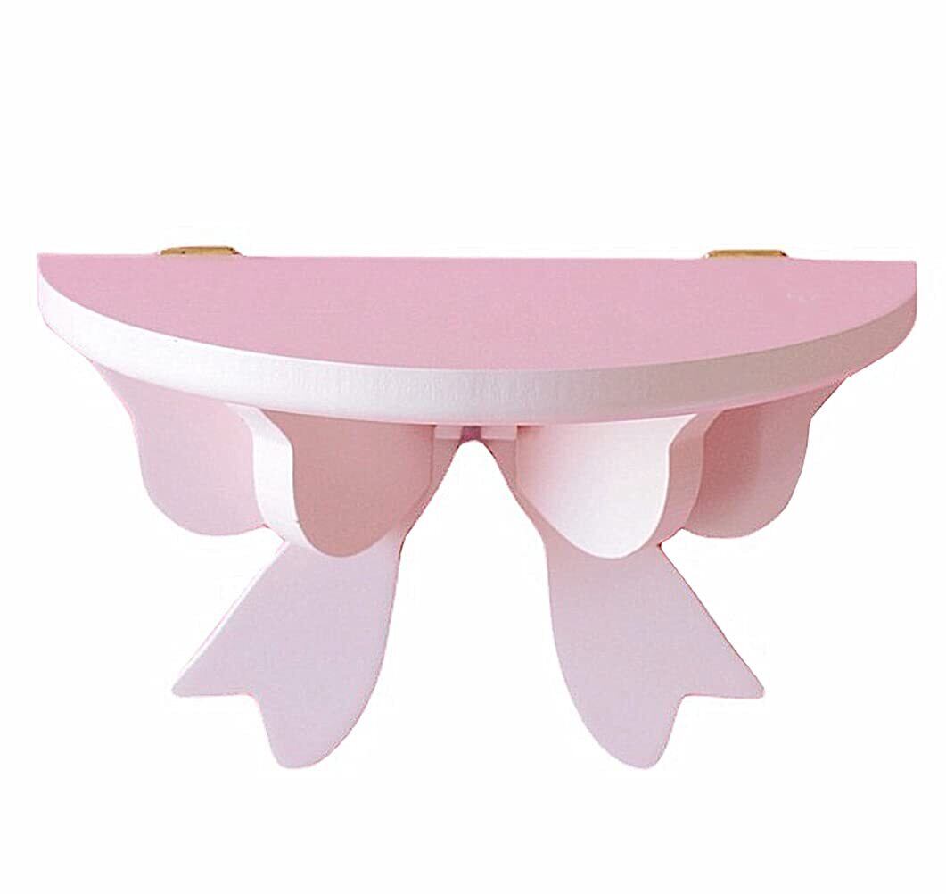 S.D.I(エスディアイ)壁掛け棚 ウォールシェルフ 木製 ボウノット柄 ウォールラック 収納棚 盆栽 植物鉢ラック 飾り棚 インテリア (ピンク, Medium)