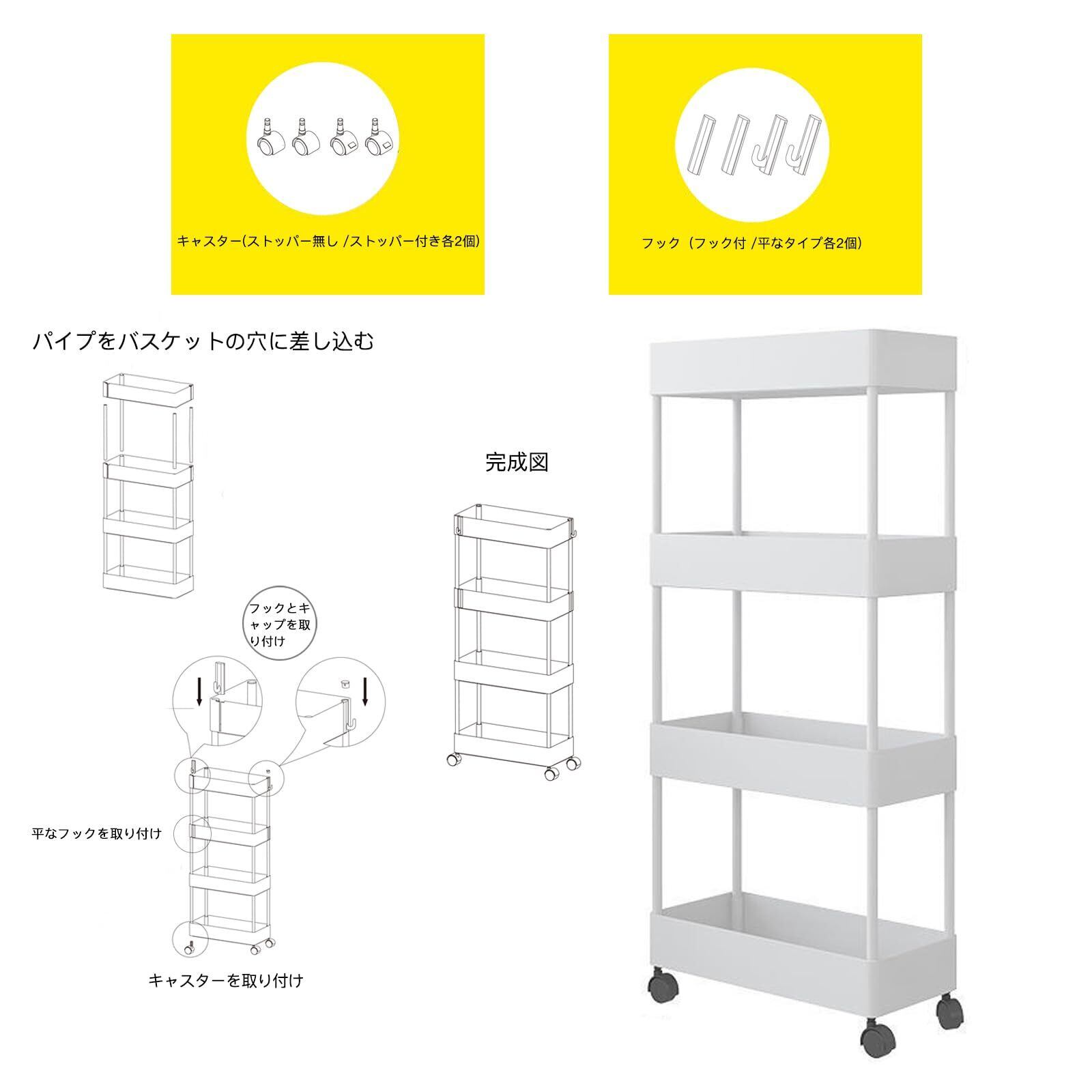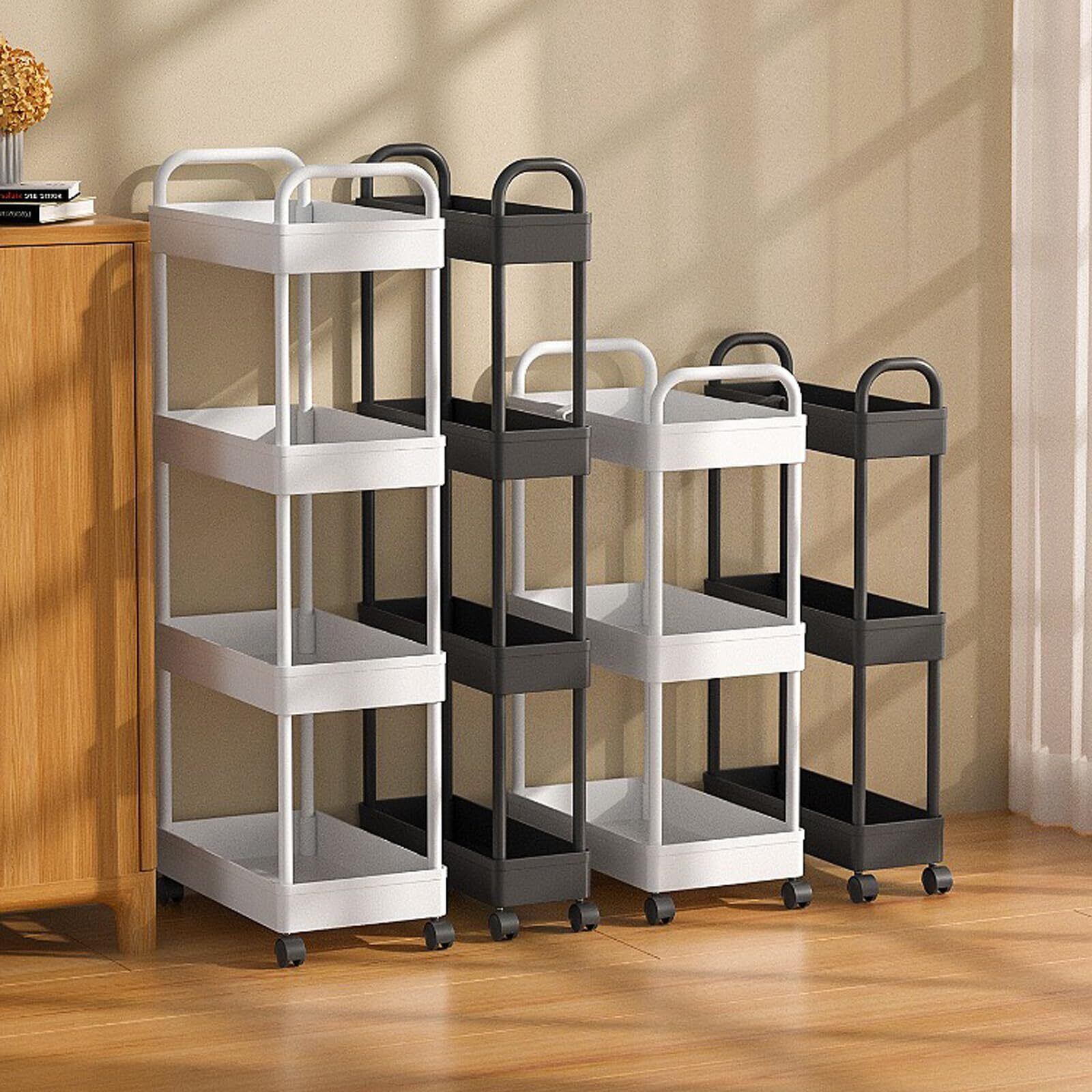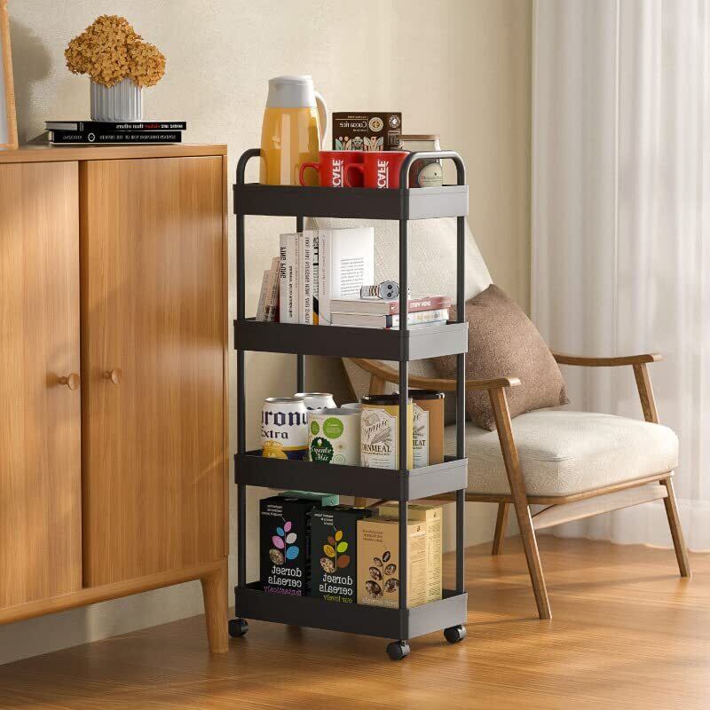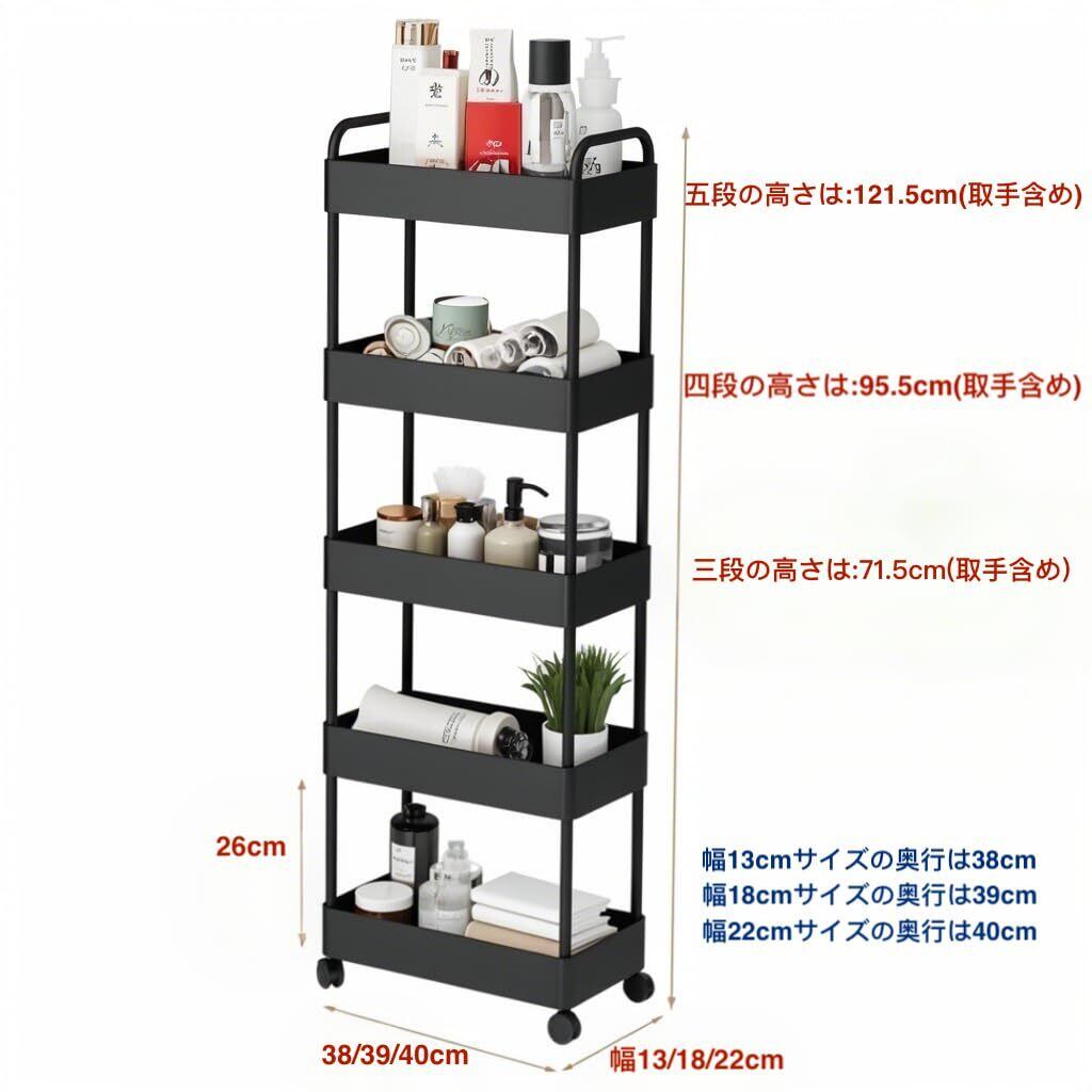SVOHZAV キッチンワゴン 隙間収納 13cm/18cm/22cm スリム キャスター付き 収納ラック 小物 食品 調味料 ペットボトル 収納カート 洗面所 冷蔵庫横 台所 すき間ワゴン(ブラック,幅22cm−4段【取手付】) | kki