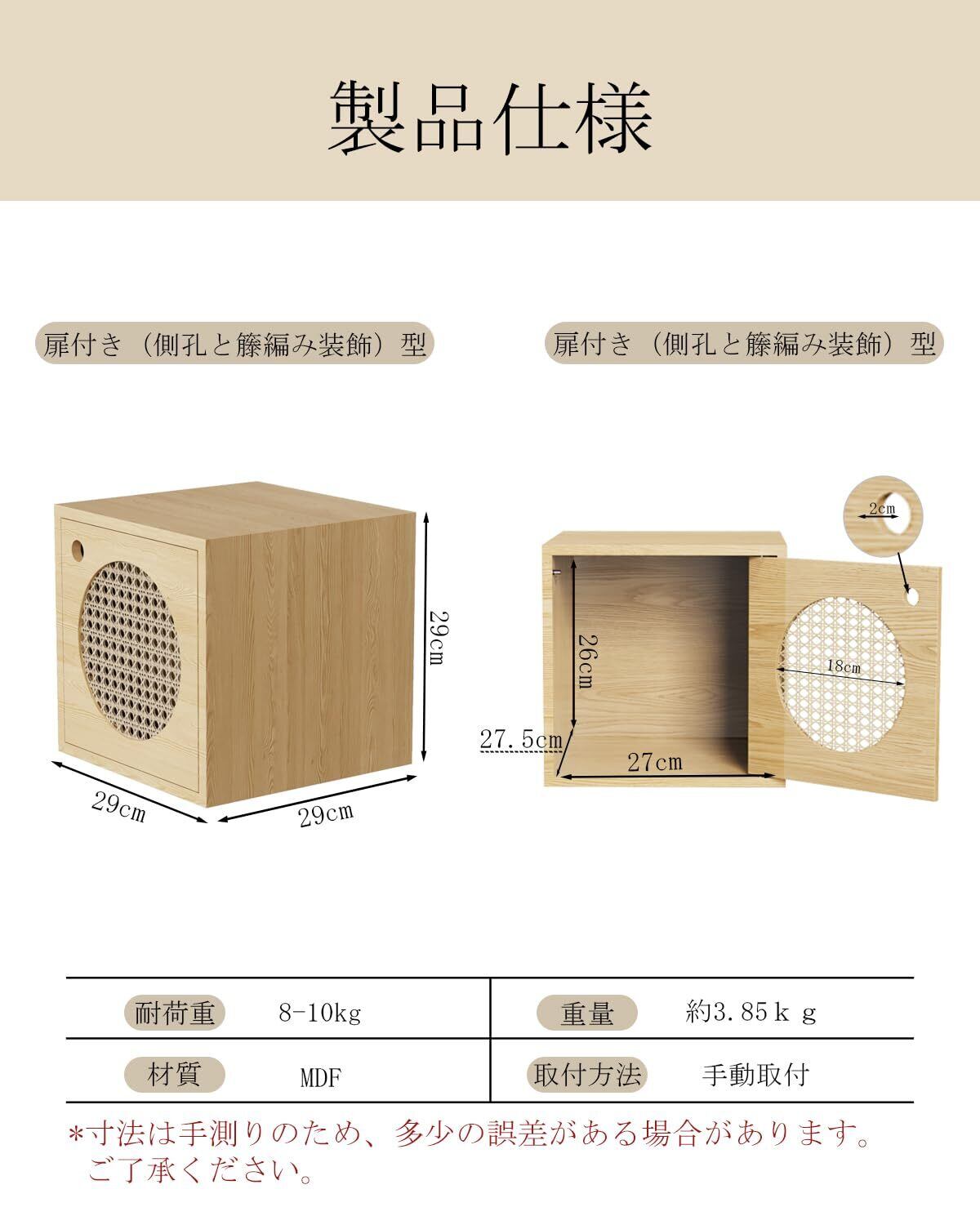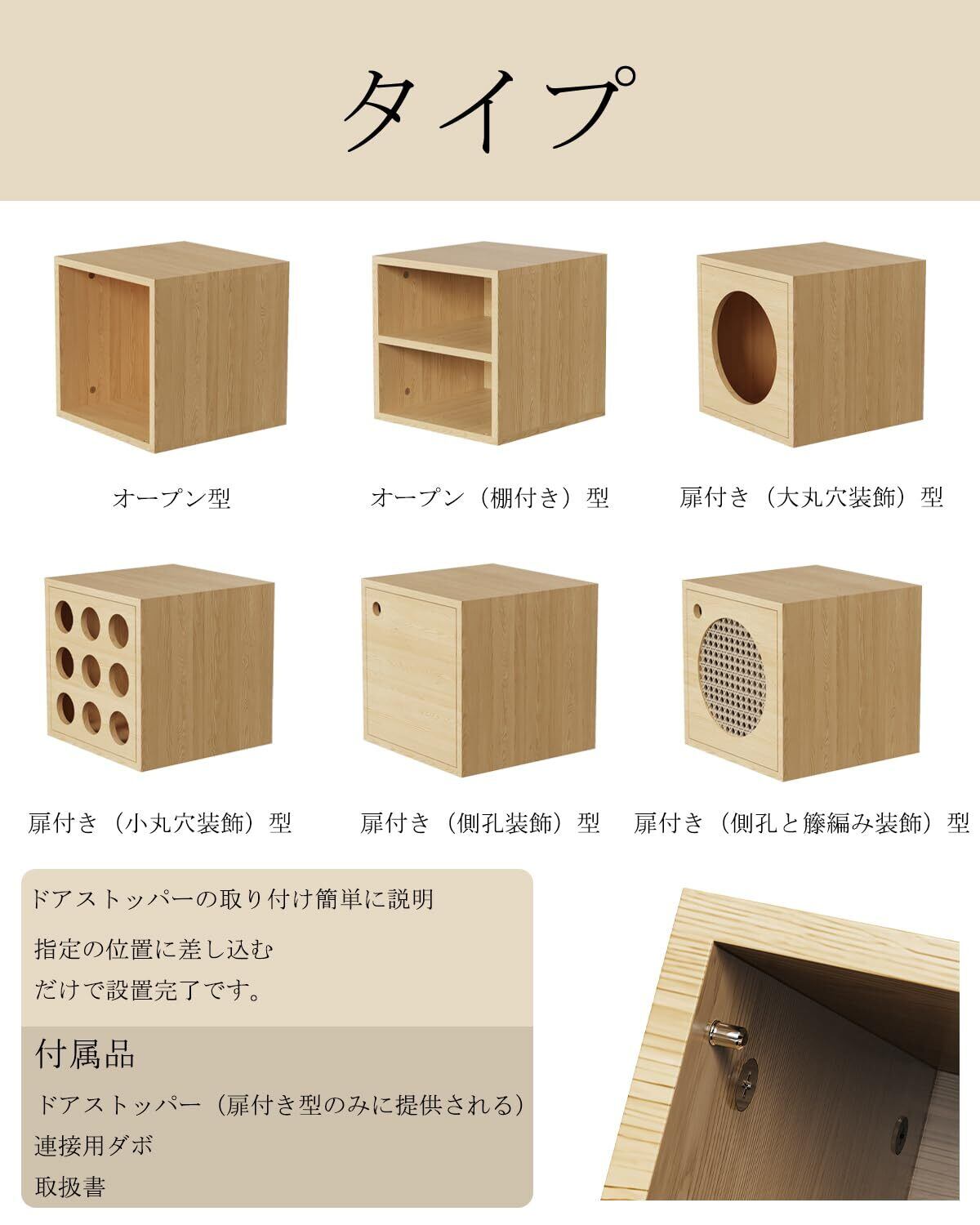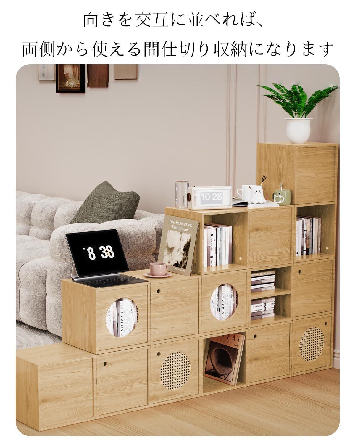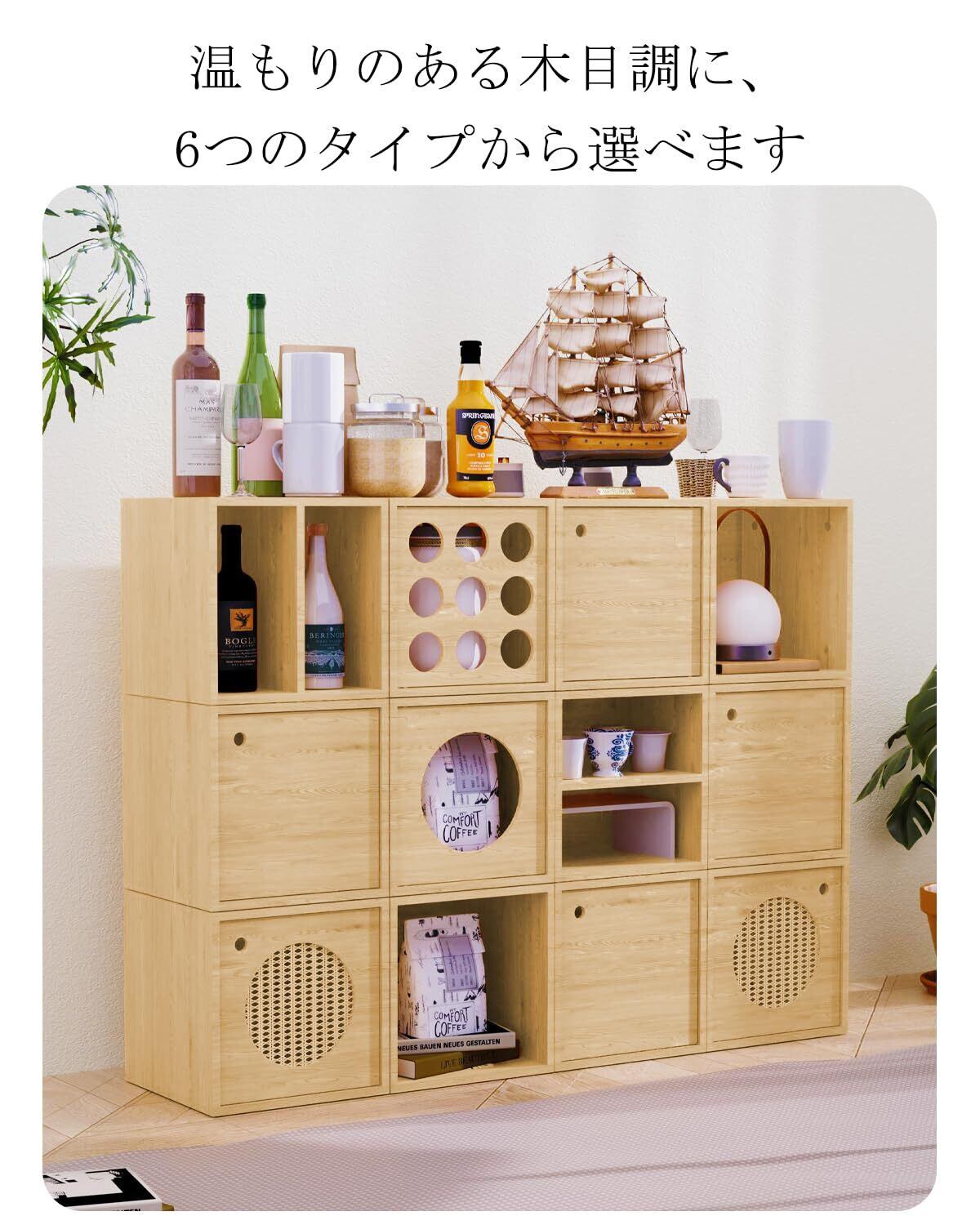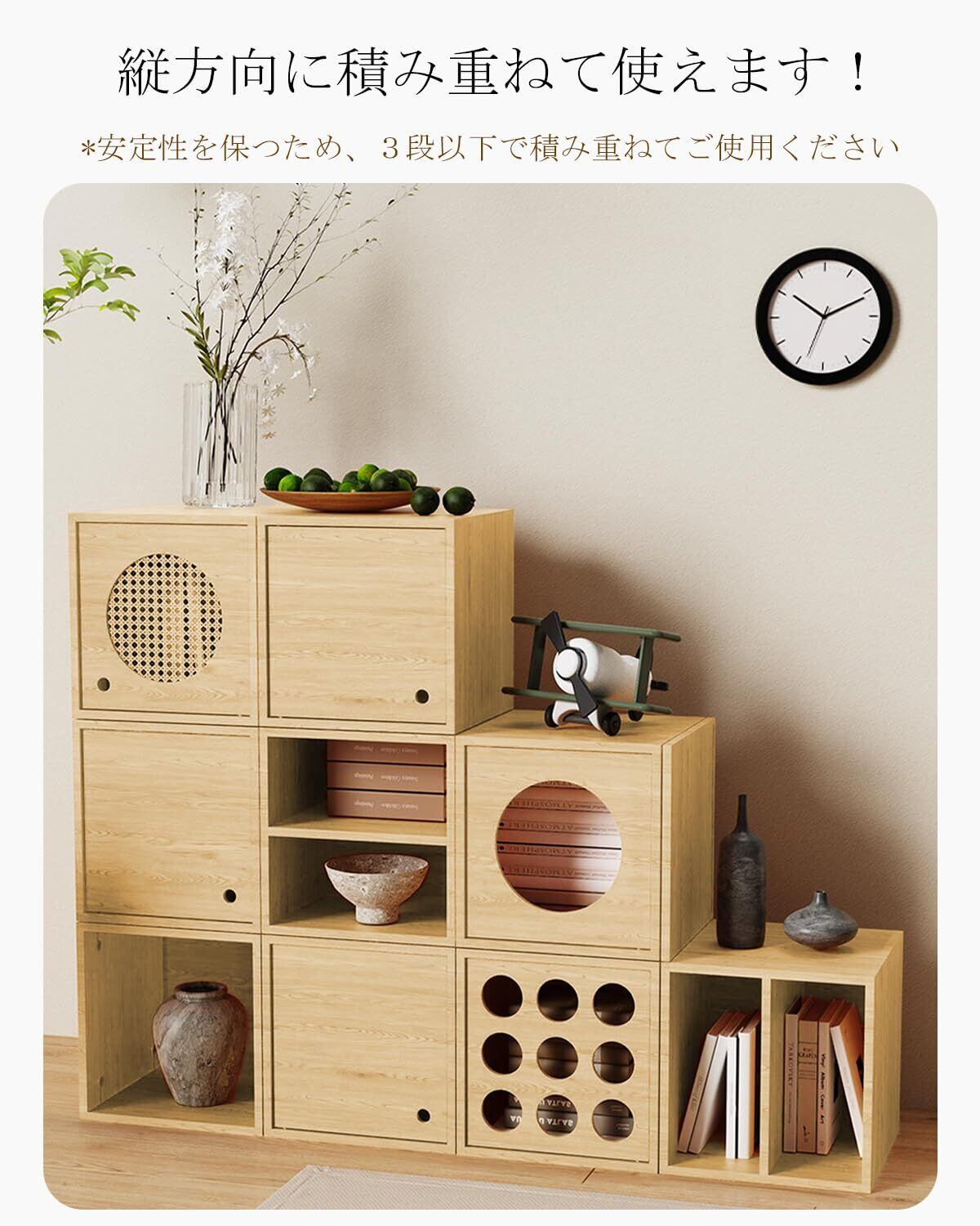 カラーボックス キューブボックス 収納ボックス ユニットシェルフ オープン 積み重ね可能 組み合わせ自由 日本語取扱書 本棚 収納家具 雑貨収納 玄関用 装飾用 木製 29×29×29cm MDF製 扉付き(側孔と籐編み装飾)型 | kki