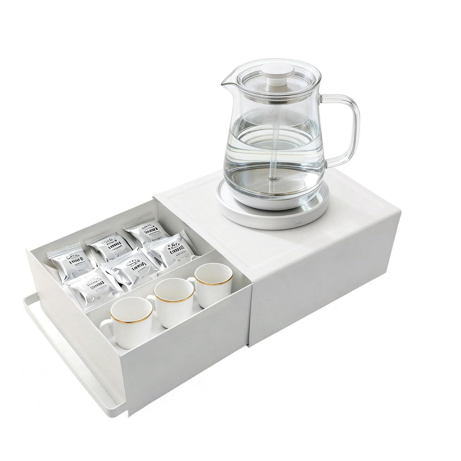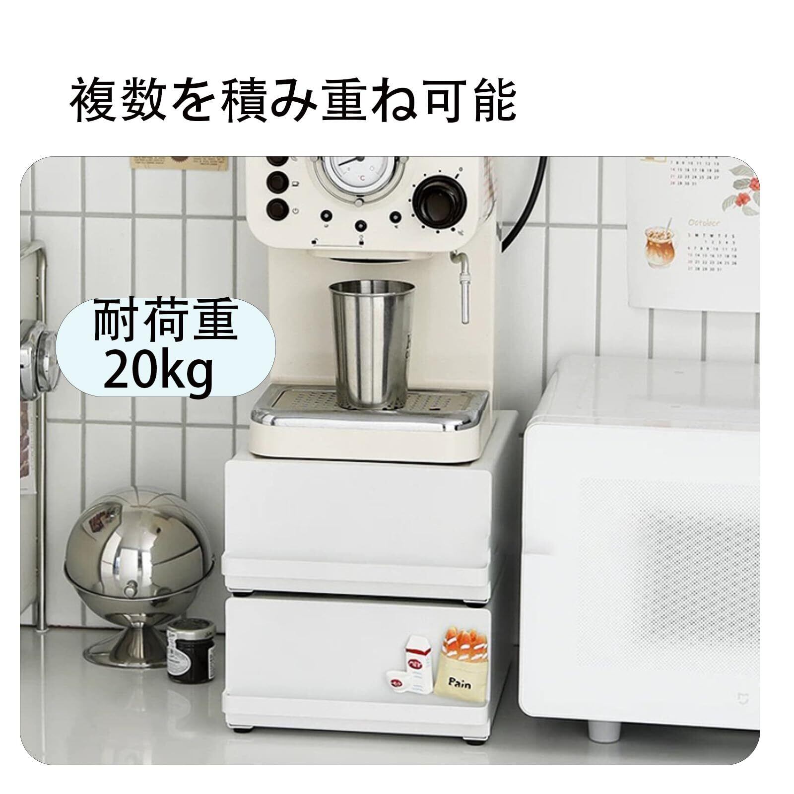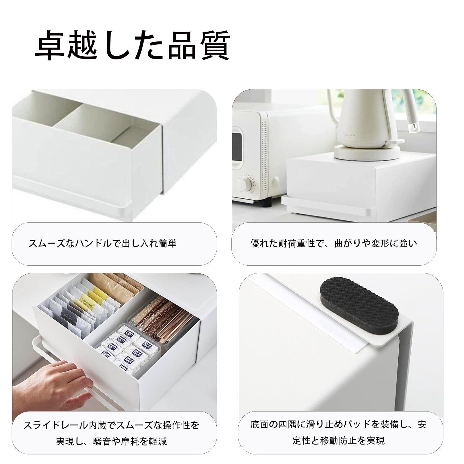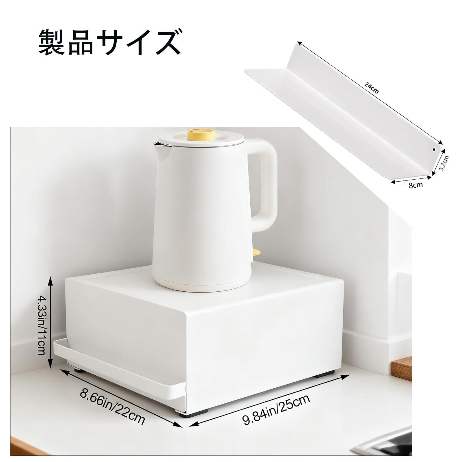 引き出し付き キッチン スライド棚 小物収納 紅茶パック収納 家電下ラック 置き台 トースター・ケトル・コーヒーメーカー対応 キッチン収納ボックス 約W22×D27×H11.5cm(取っ手含む) オーガナイザー家具ラック(ホワイト) | kki