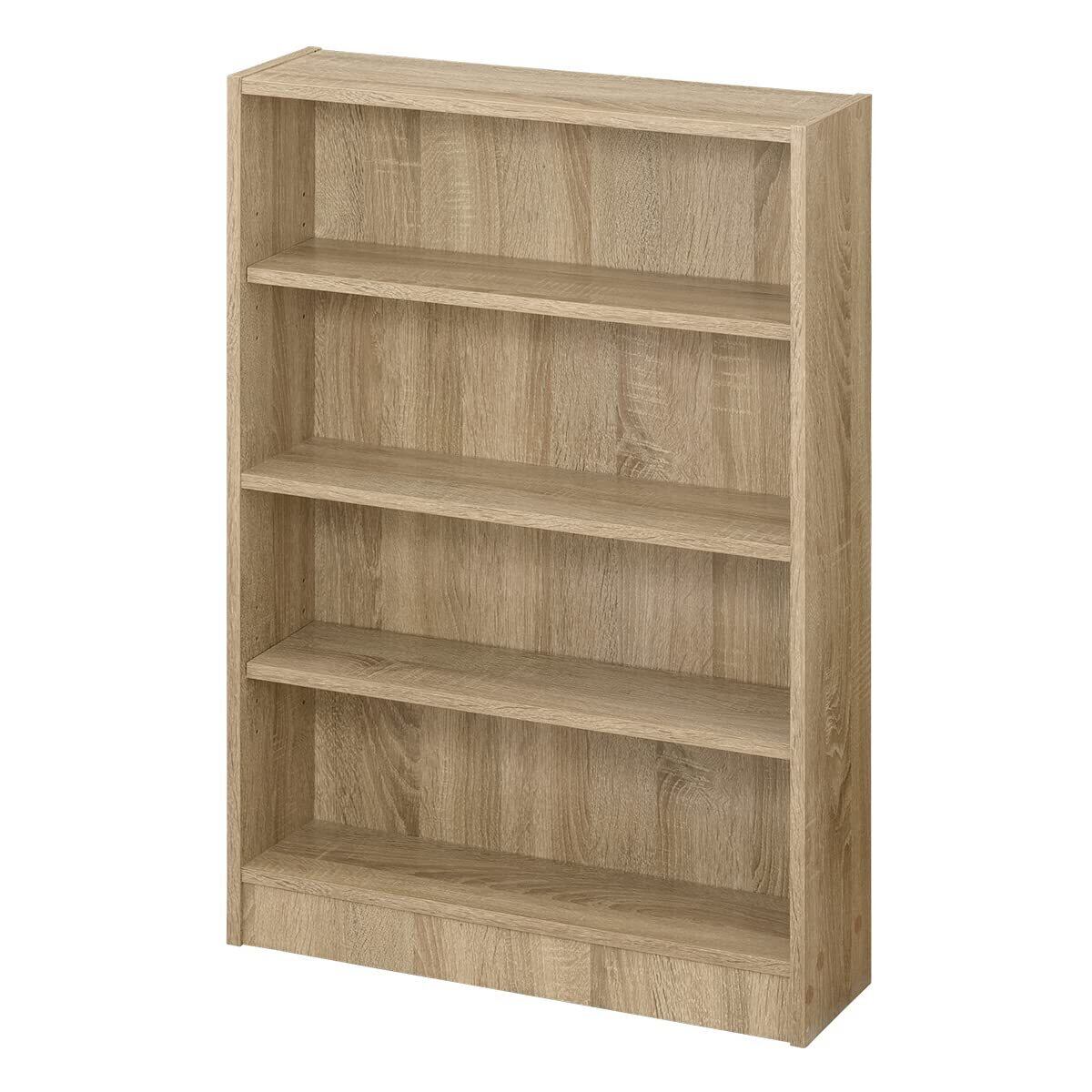 ぼん家具 本棚 スリム 薄型 4段 コミックラック 幅60×奥行16.8×高さ89cm 収納 スリムラック 可動棚 オープンラック オーク