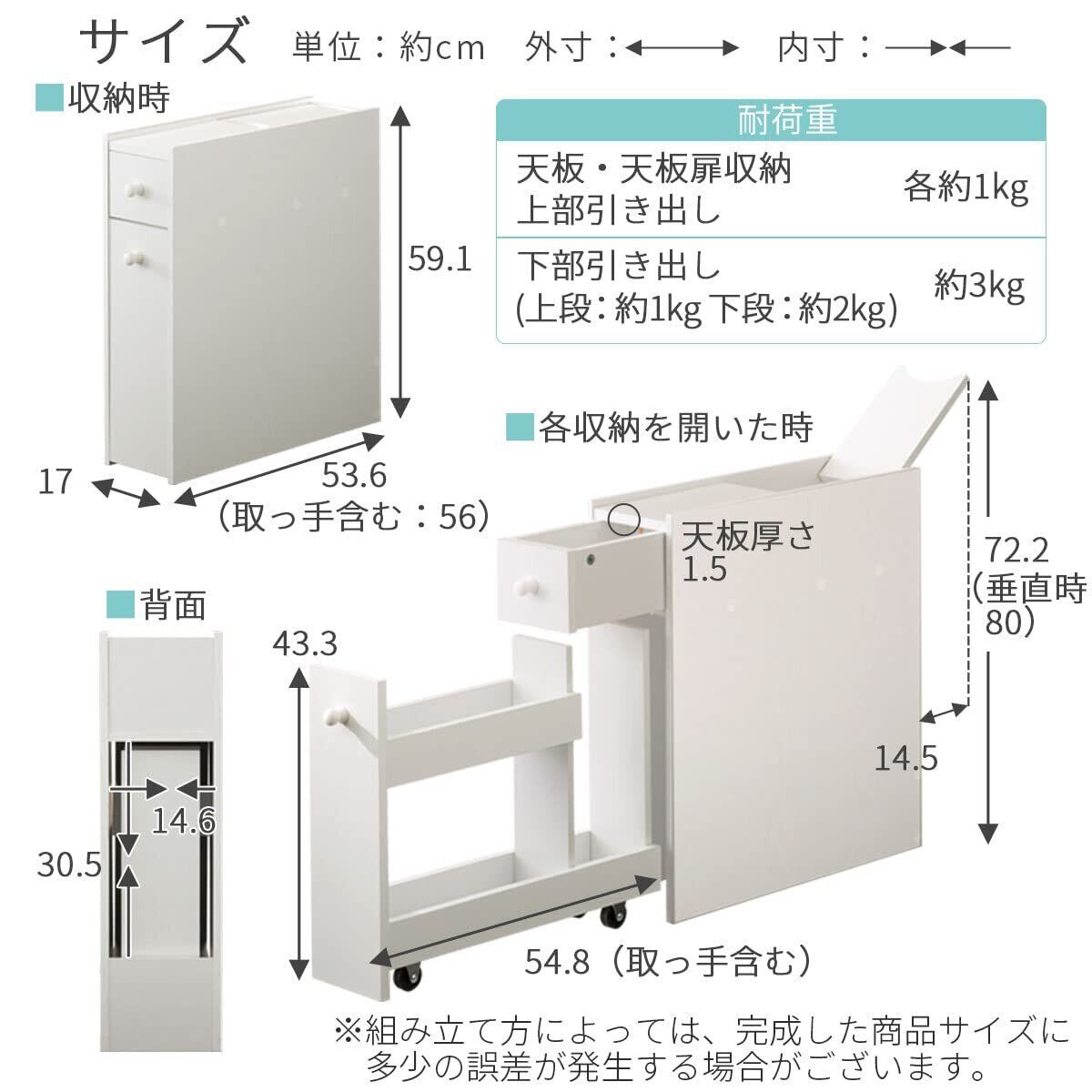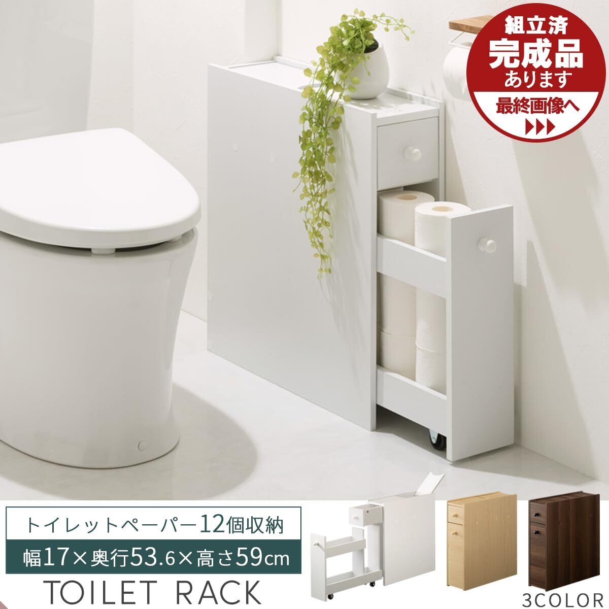 ぼん家具 トイレ収納 トイレラック 収納 薄型 引き出し ブラシ収納 トイレ 幅17×奥行53.6cm ナチュラル