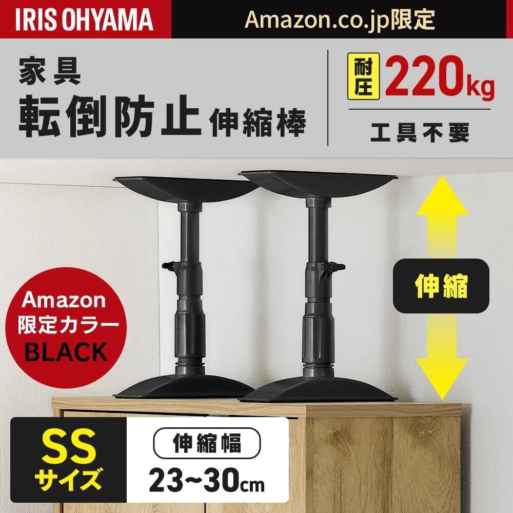 アイリスオーヤマ 家具転倒防止棒 耐荷重:220㎏ 高さ:23~30cm 伸縮棒 家具固定 地震対策 防災用品 SSサイズ AZKTB-23R ブラック