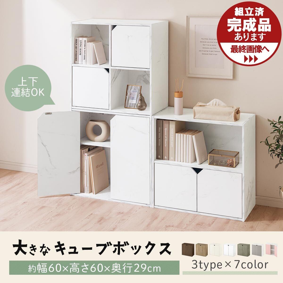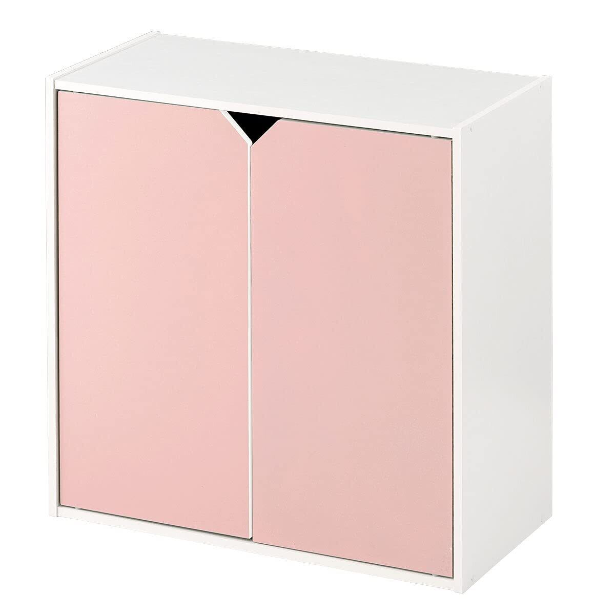 ぼん家具 キューブボックス 扉 収納棚 スタッキング 収納 棚 マルチラック おしゃれ 〔Cタイプ〕ピンク×ホワイト