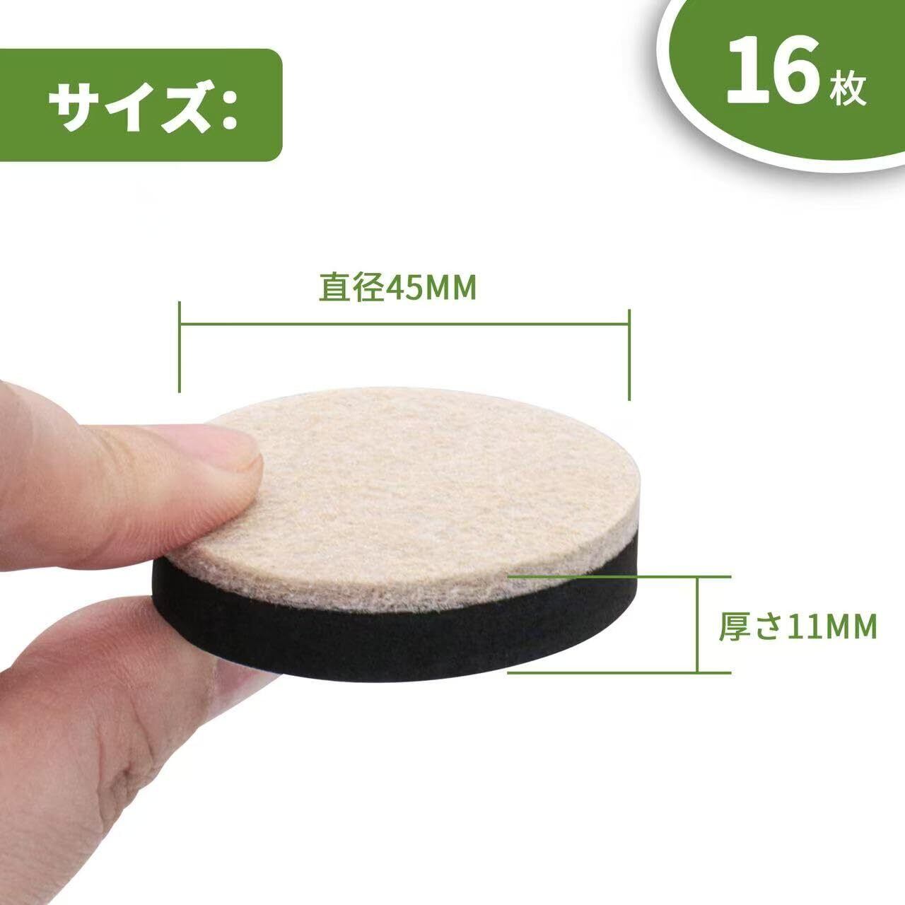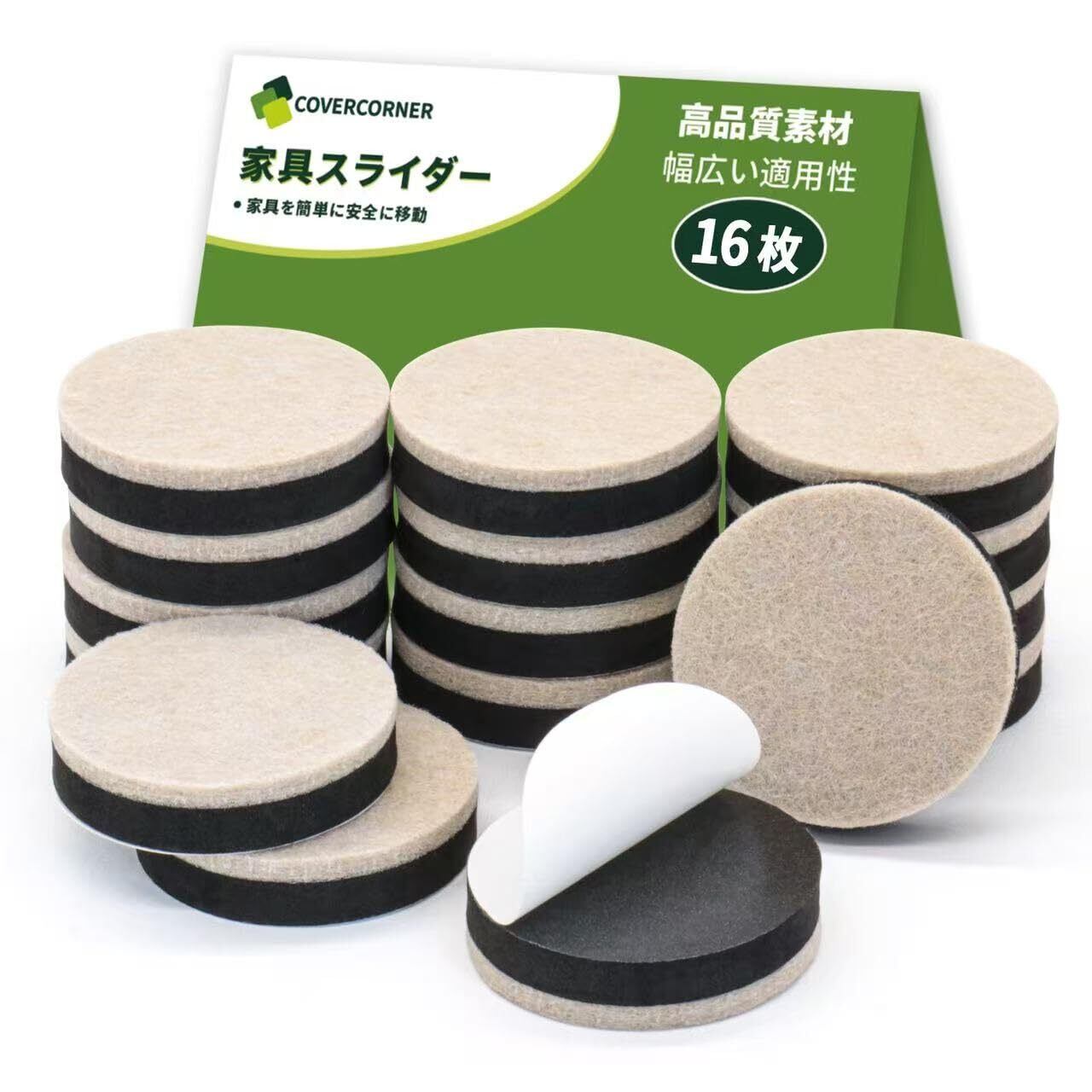 家具スライダー 16枚セット【直径45mm/耐荷重】粘着フェルトパッド 重い家具も楽々移動 キズ防止・防音対策 床保護 コーナー対応 (ベージュ)