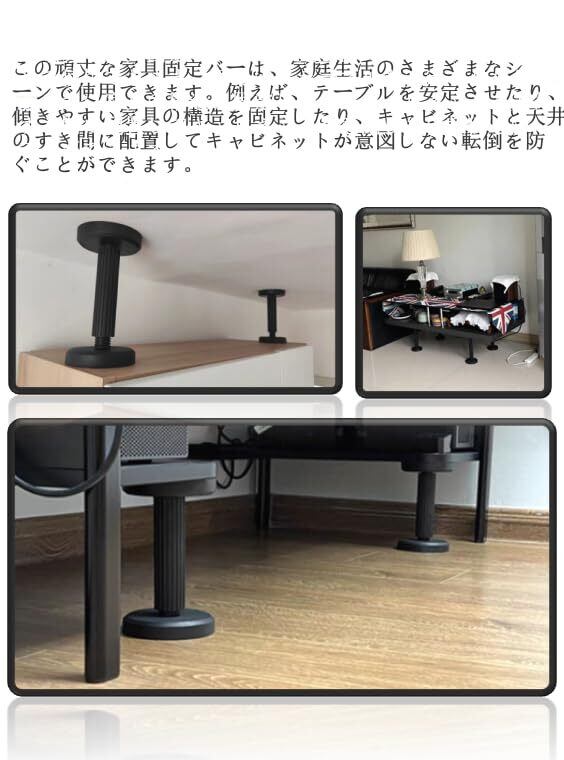 (高さ18-45 cm)家具転倒防止 突っ張り棒 家具の転倒を防ぐ伸縮可能な固定バー 黒い家具の固定フット 大型家具と天井の隙間を埋めるための大型固定バー 滑り止めパッドと強力な両面テープが付属した防震固定バー強化セット 長さ調節可能な家具災害防止用固定ツール 2個セット | kki