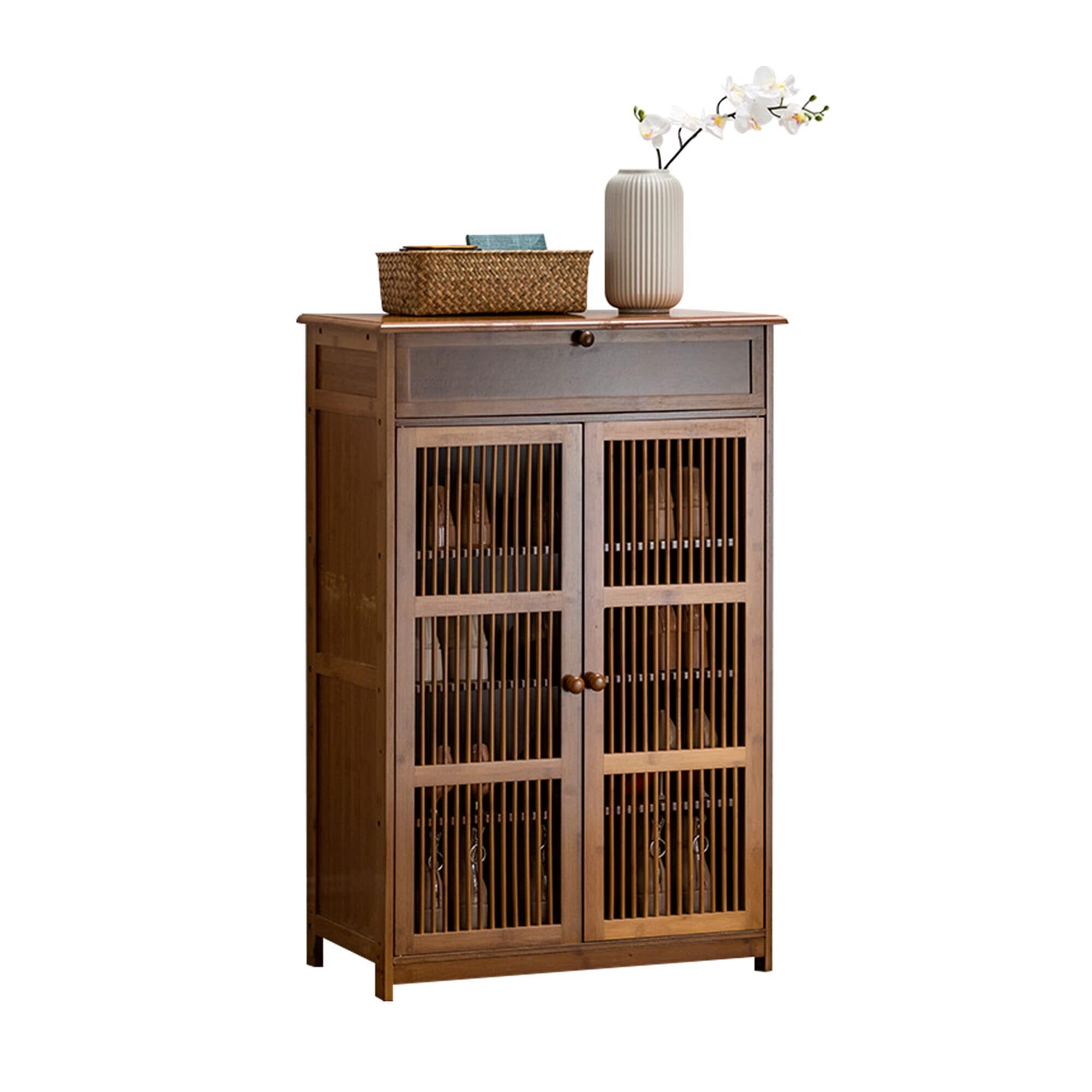 Yumcute シューズボックス下駄箱 幅65cm ルーバーシューズボックス 靴箱 大容量 天然竹製 木製家具 引き出し 扉付き 玄関収納 スリム 薄型 省スペース 4段 靴 収納 消臭 シューズラック 靴棚 靴置き靴収納ラック 通気性 ルーバー式 2扉タイプ | kki