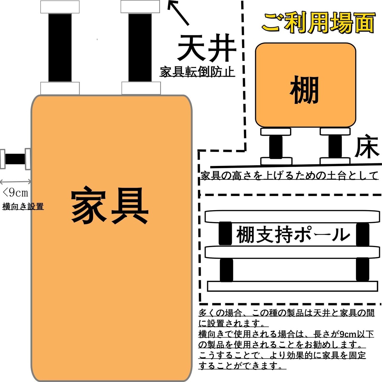 転倒防止 突っ張り棒 (10-18cm) ツッパリ棒 短い 耐震家具固定棒 可調整長さの耐震固定短棒 ベース強化型家具固定棒 耐震家具倒れ防止用品 地震防災用品 大型家具、クローゼット、キャビネット用家具伸縮耐震棒 強力な両面テープと滑り止めパッド付きの家具倒れ防止補助器 家具と天井または壁の隙間を埋める家具固定棒 4個入り (黒) | kki