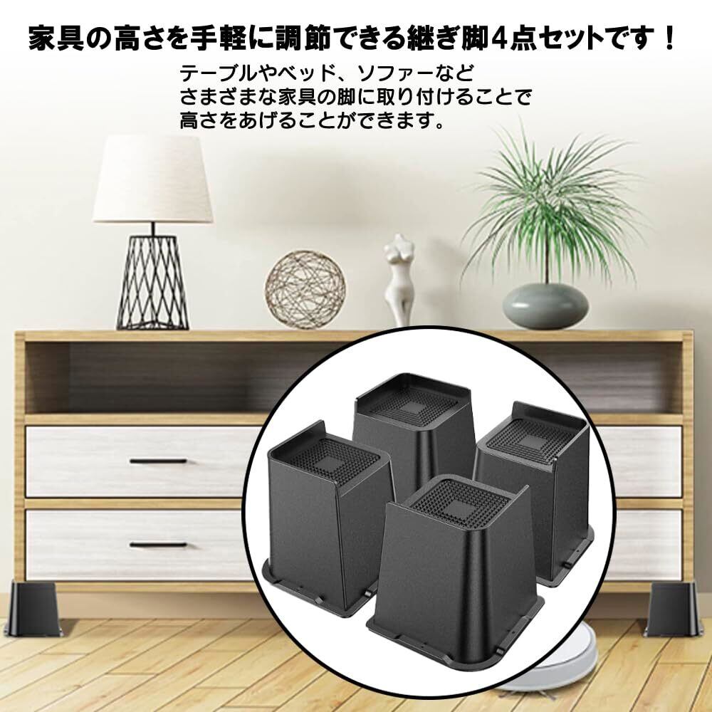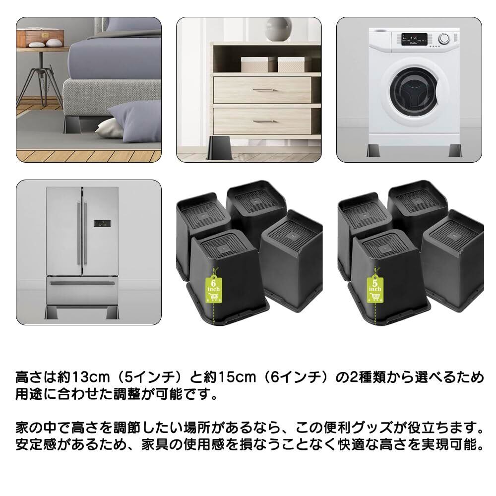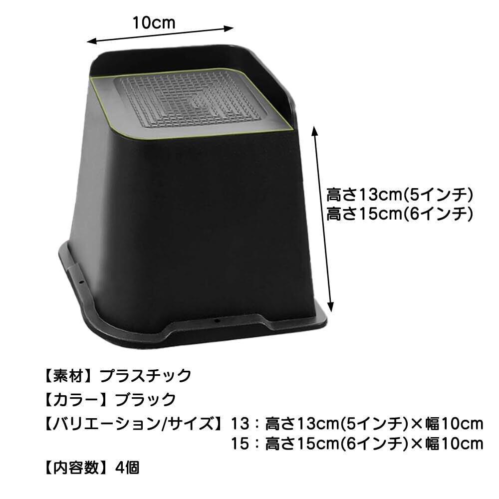 家具 かさ上げ台 継ぎ脚 家具の高さ調節 4個 台高さ 13cm 15cm (5インチ:高さ12.7cm×幅10cm)