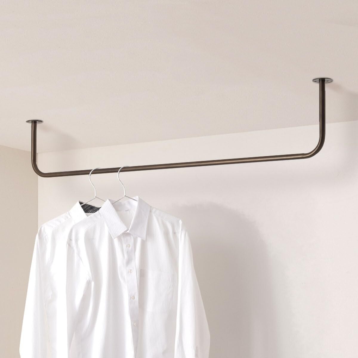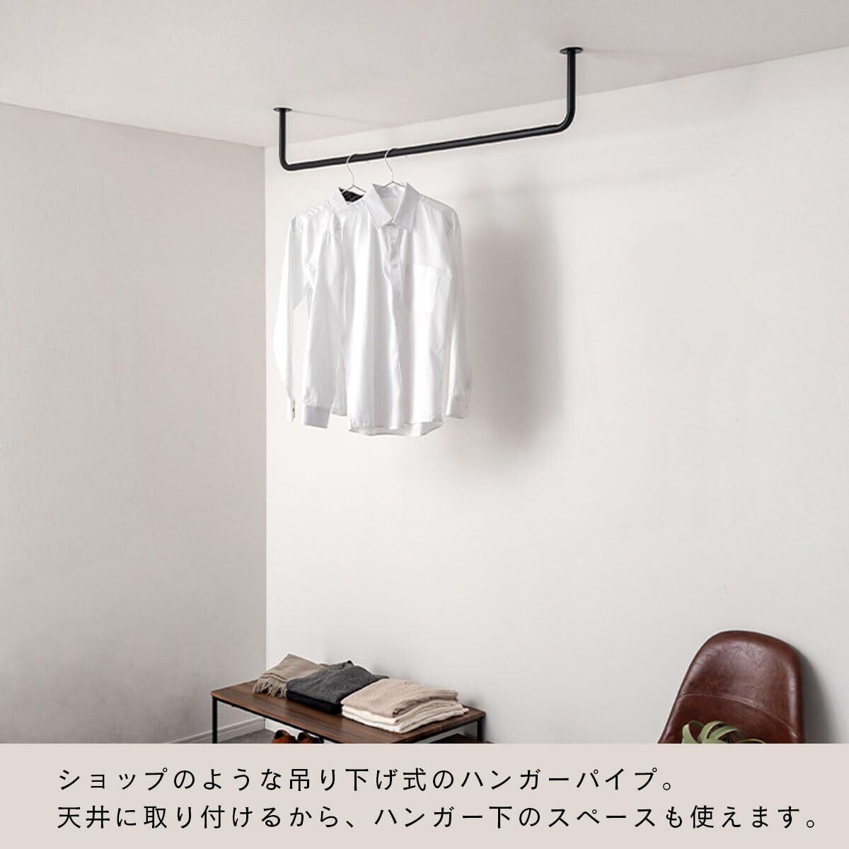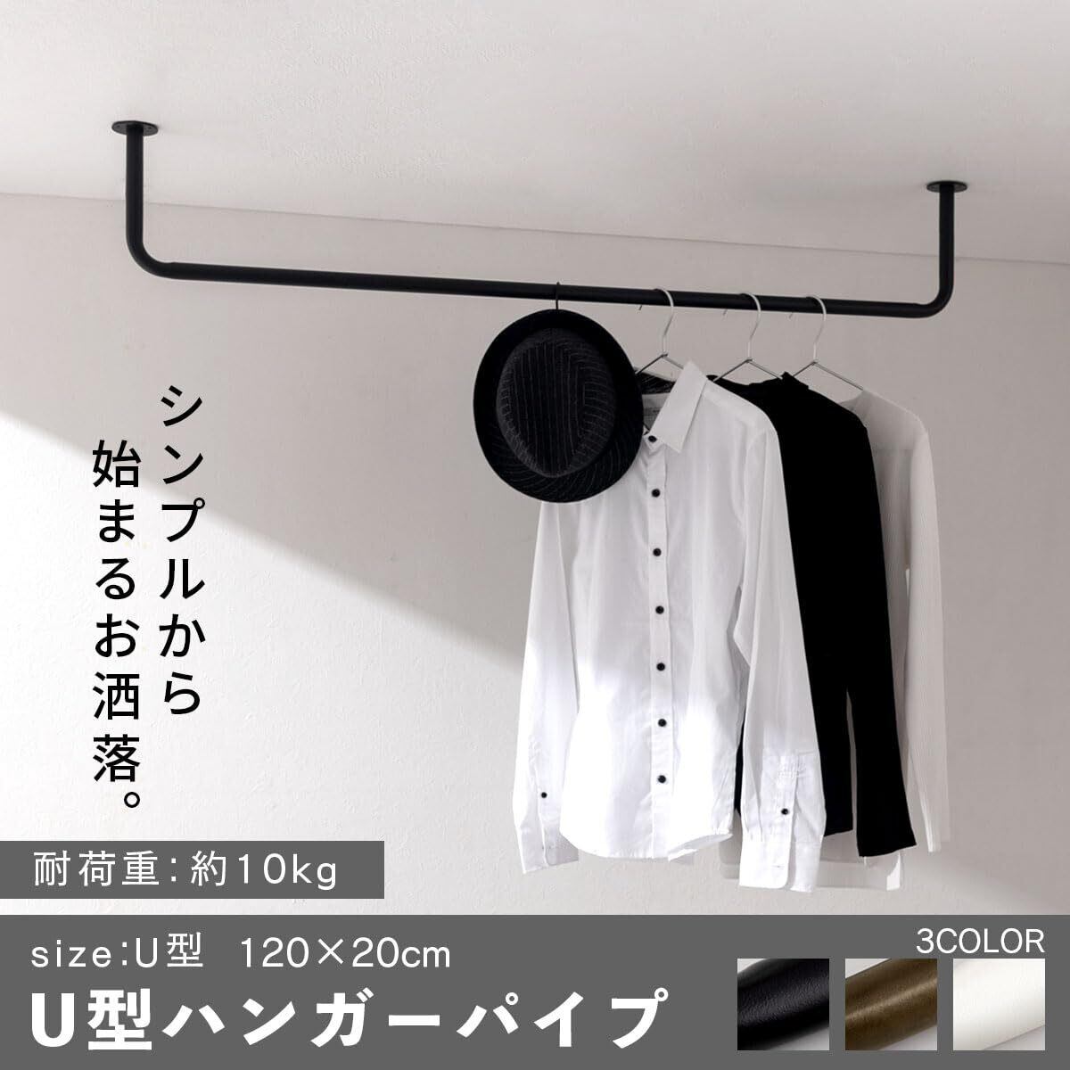 ぼん家具 ハンガーバー ハンガーラック コの字 ハンギングバー 天井 120×20cm アイアン U型 衣類収納 室内干し 耐荷重10kg ゴールド